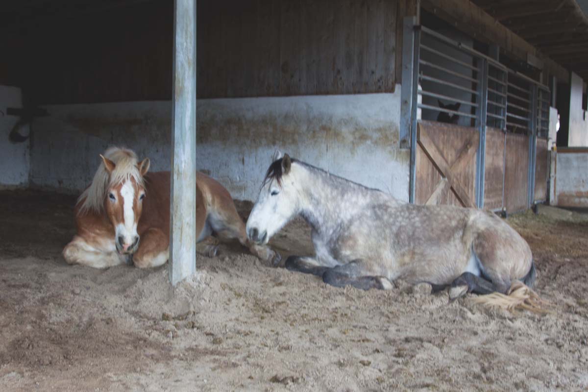 Es gibt eine Reihe von Unterstell-und Ruhebereiche und Kranken-bzw. Eingewöhnungsboxen. Ein Tor führt direkt auf die Koppel.