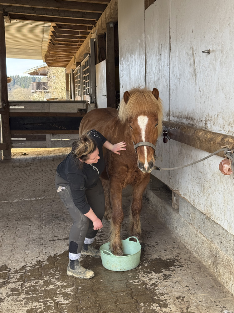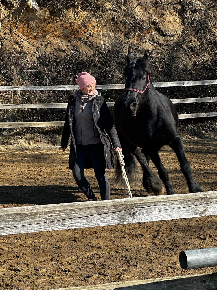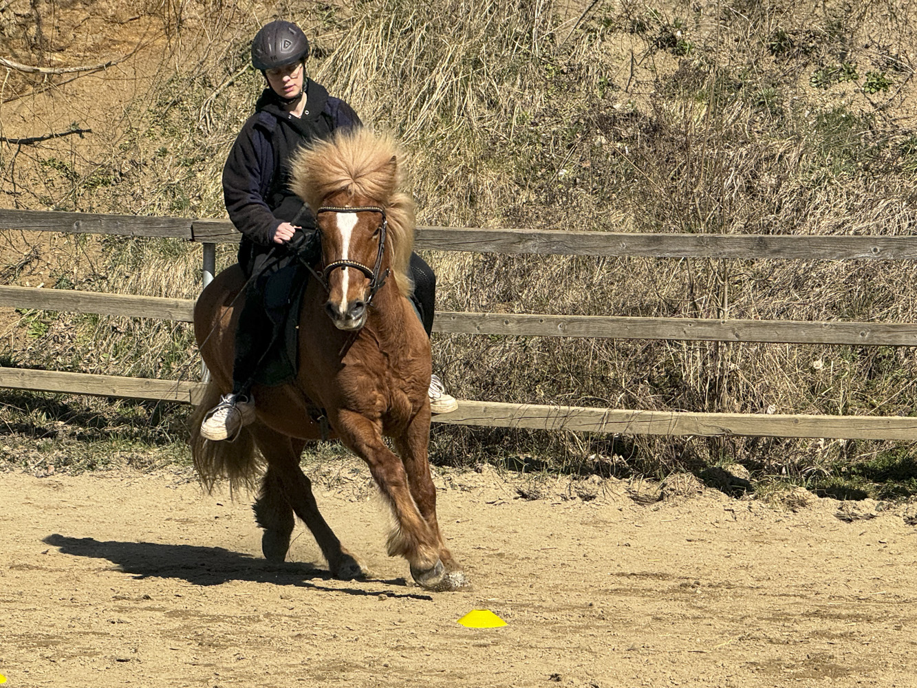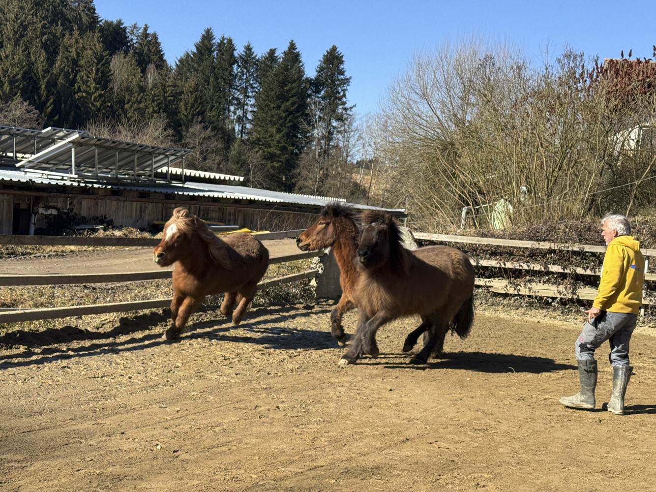 Es gab noch Nächte mit Minustemperaturen, doch auch schon sehr warme Tage. Die locken zu Spaziergängen, Ausritten und auch Arbeiten am Reitplatz.