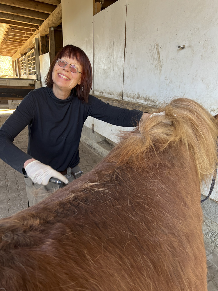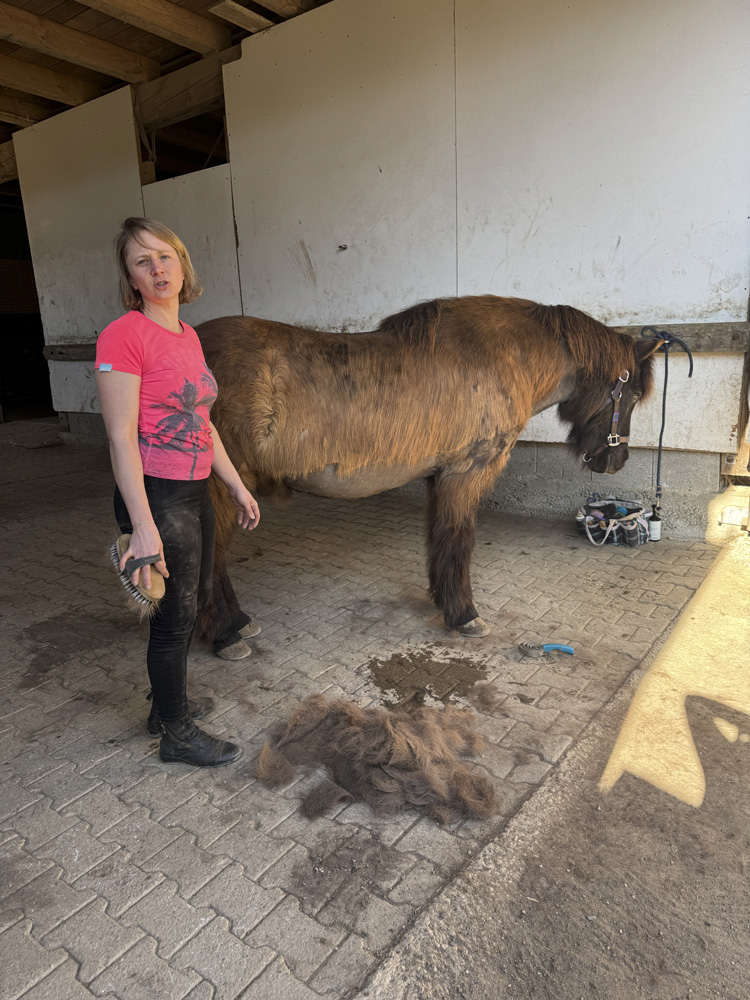 Etliche Pferde verlieren schon, bei den nun immer länger werdenden Tage ihr Winterfell, bei dem einen oder anderen muss mit der Schermaschine nachgeholfen werden.