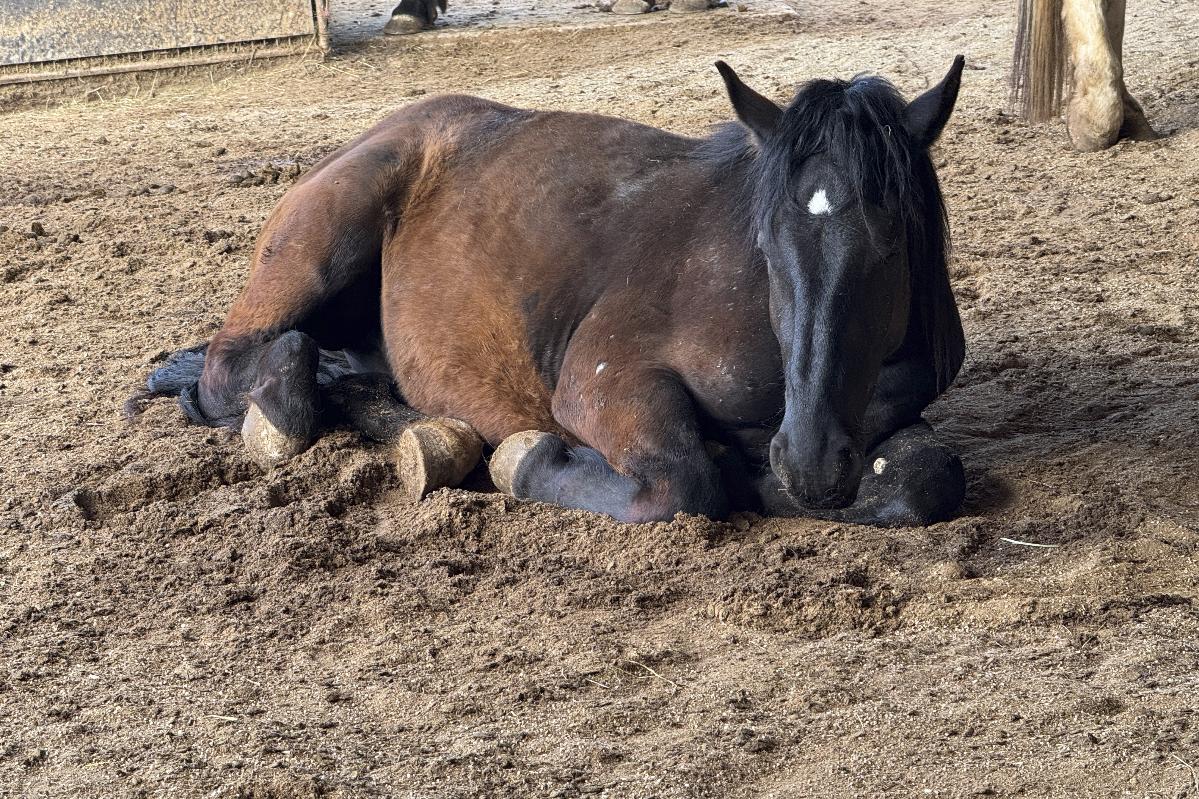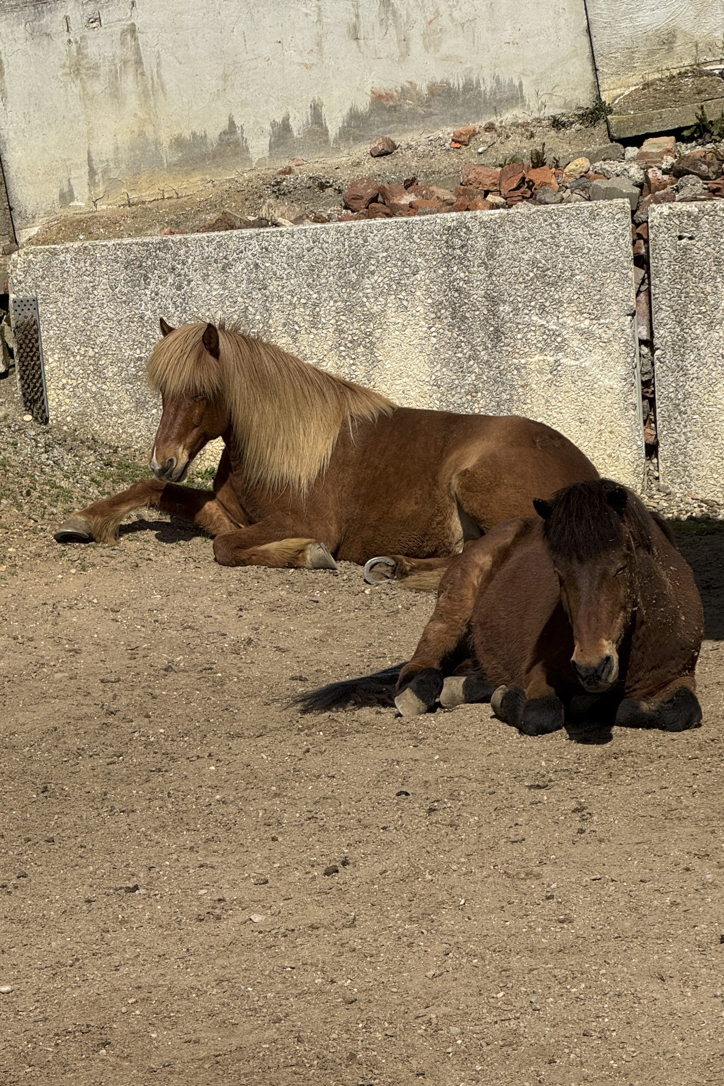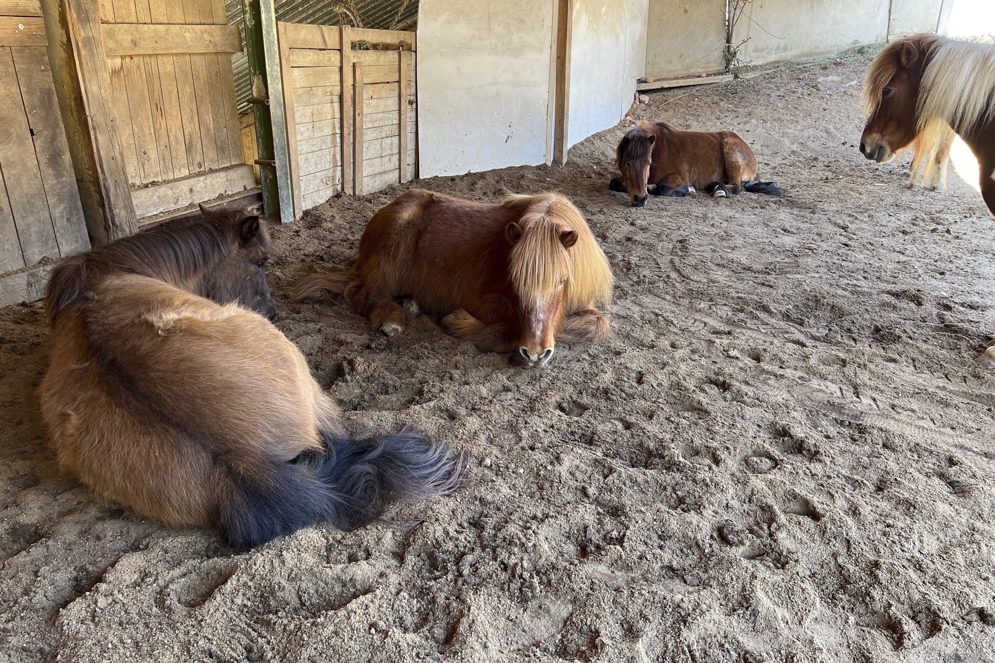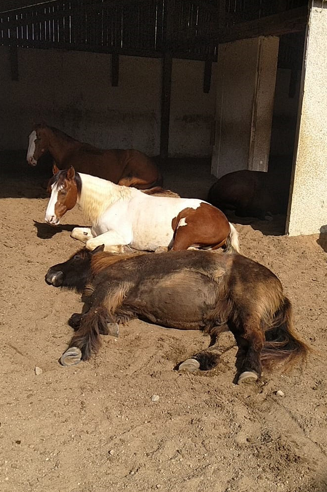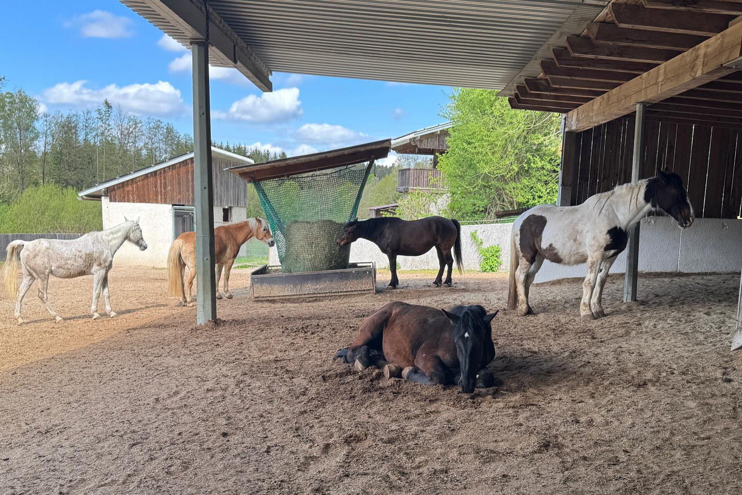 Die Pferde genossen die Sonne und relaxten im Sand.