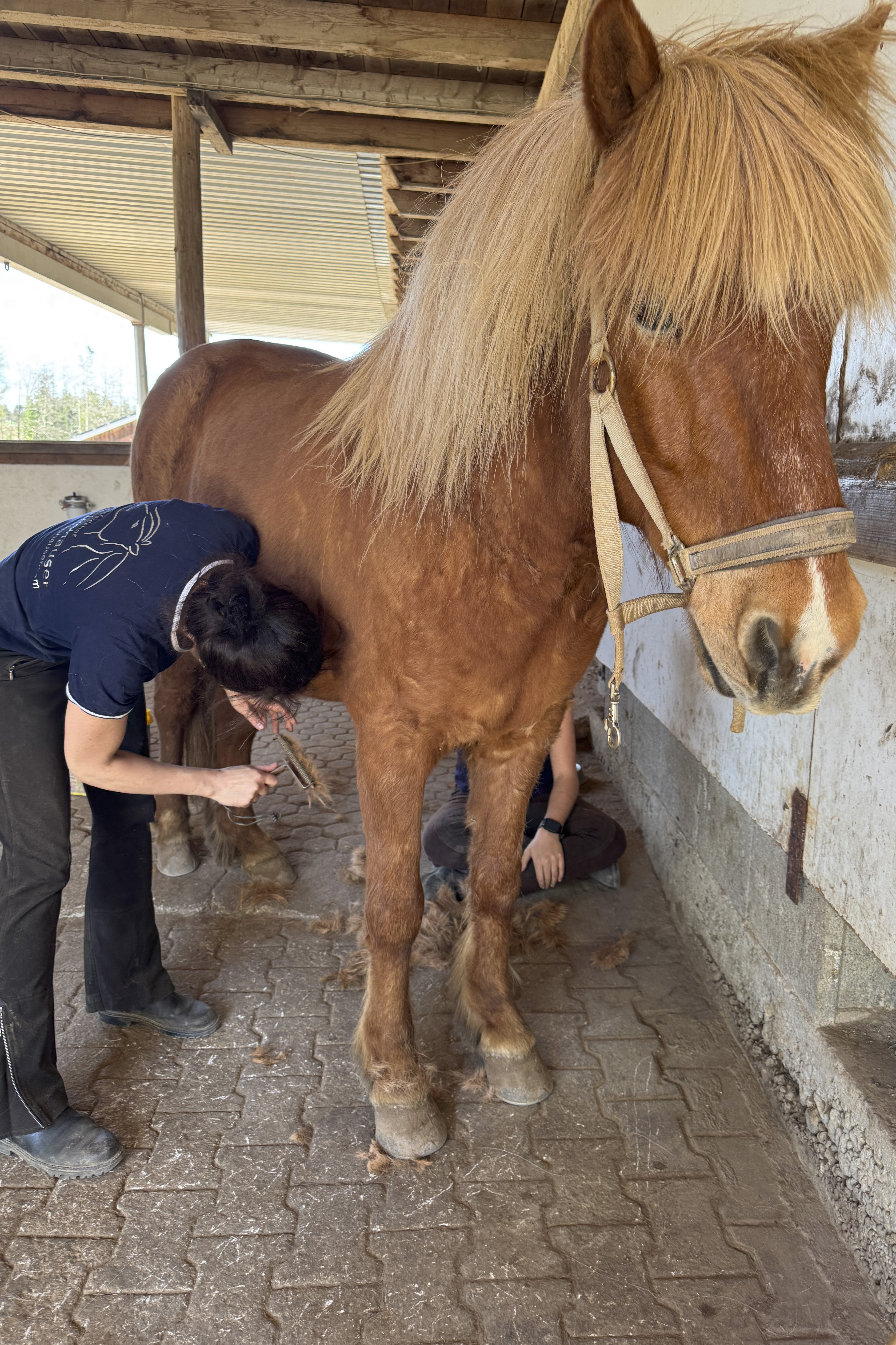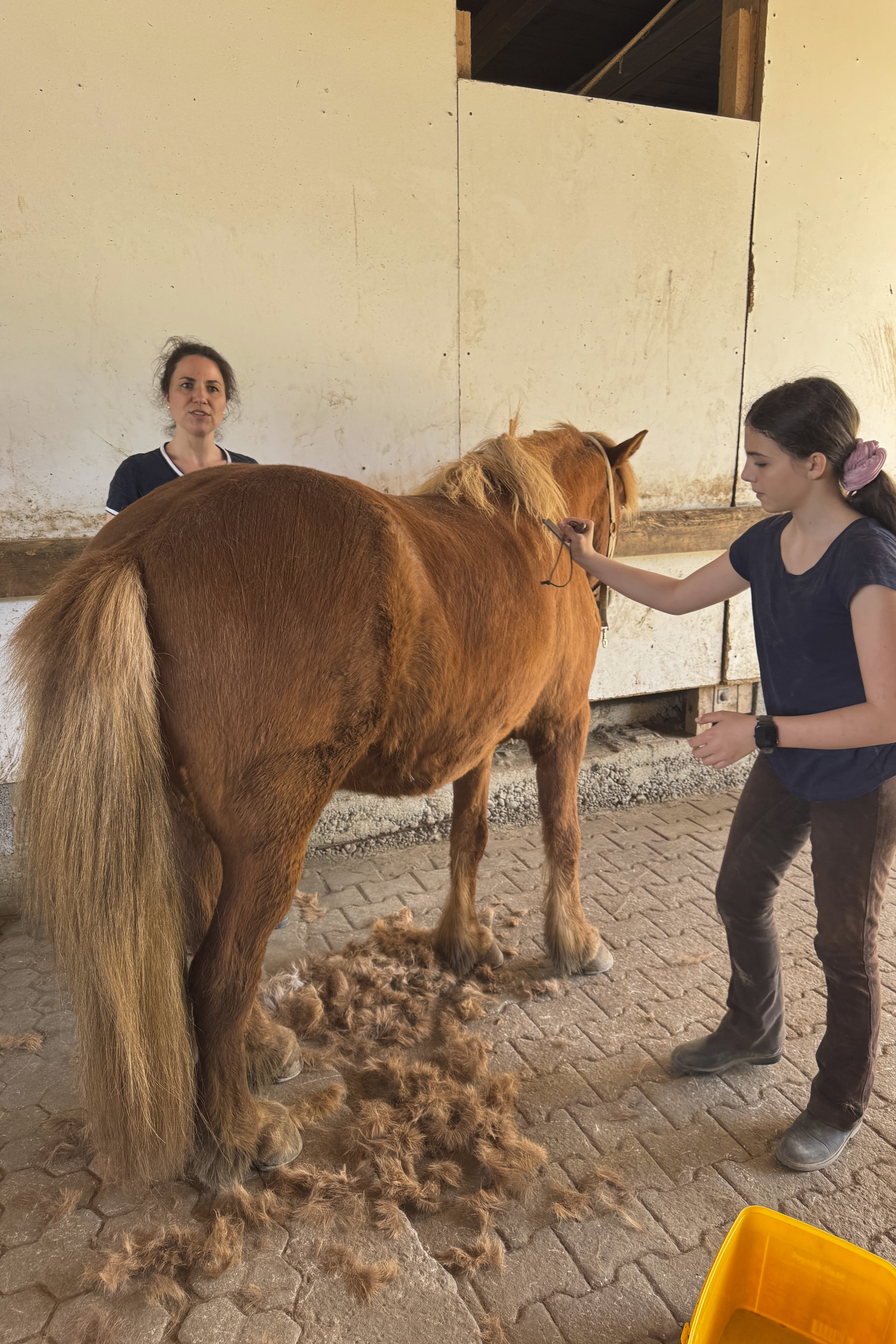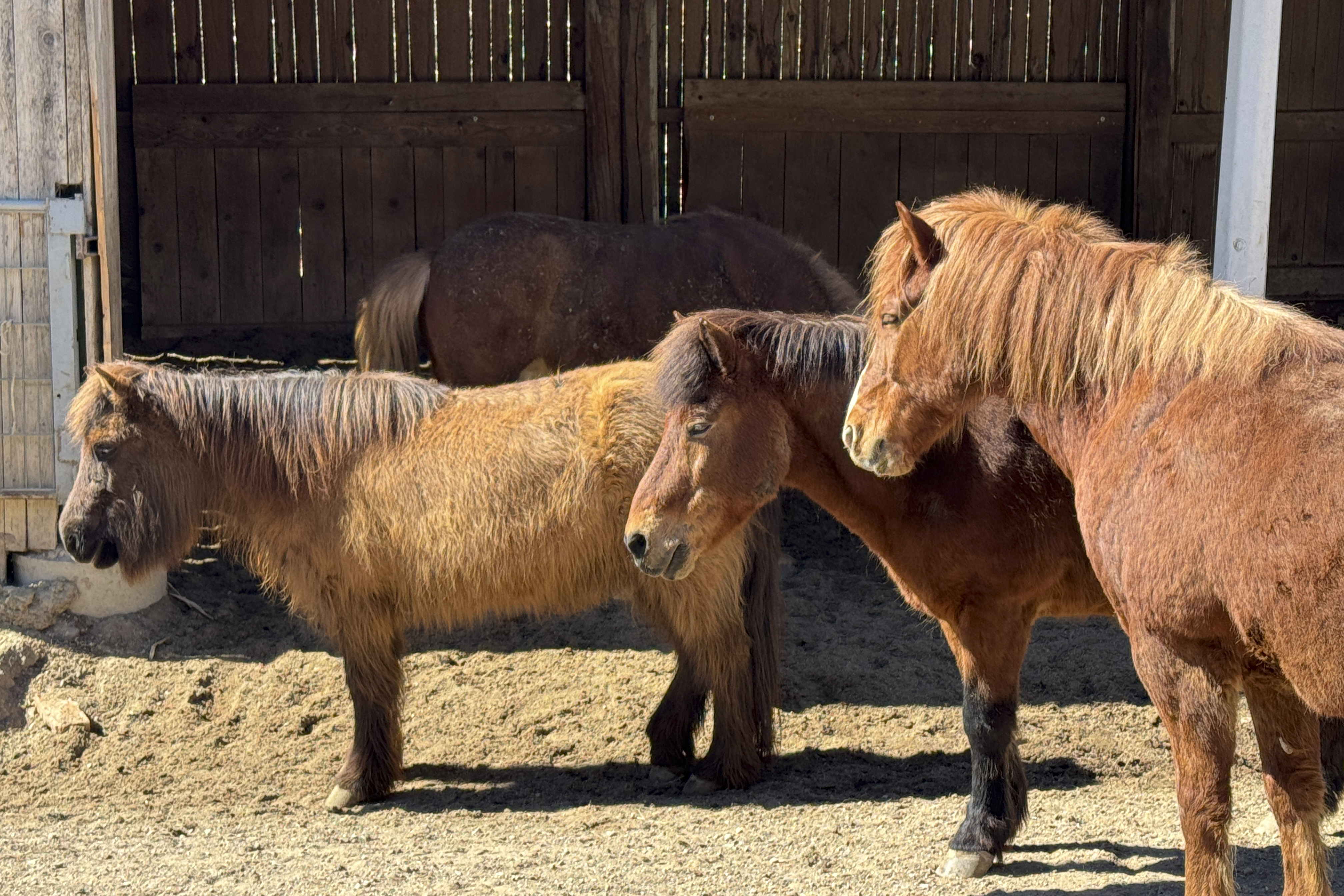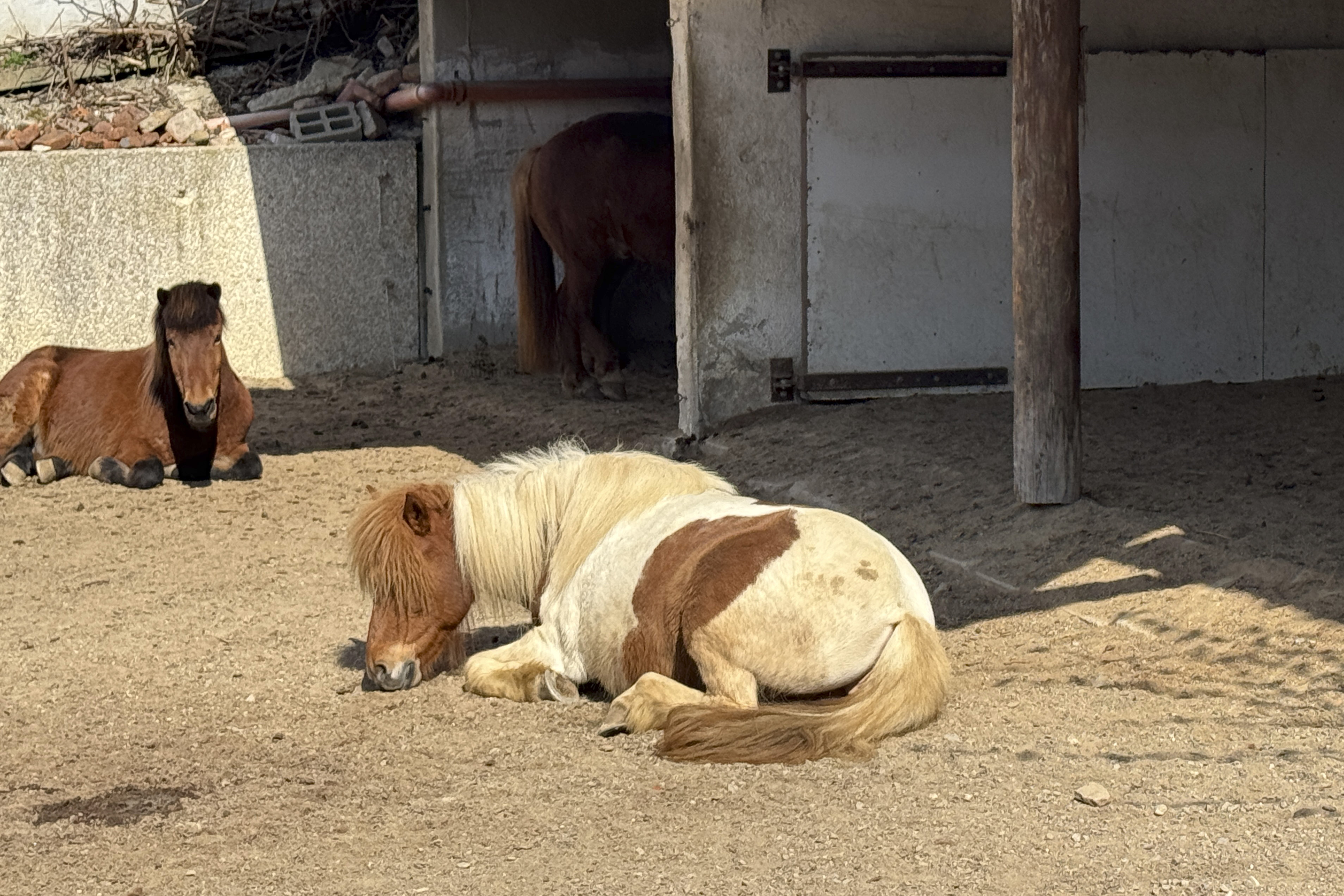 Die Pferde genossen die Sonne und relaxten im Sand.