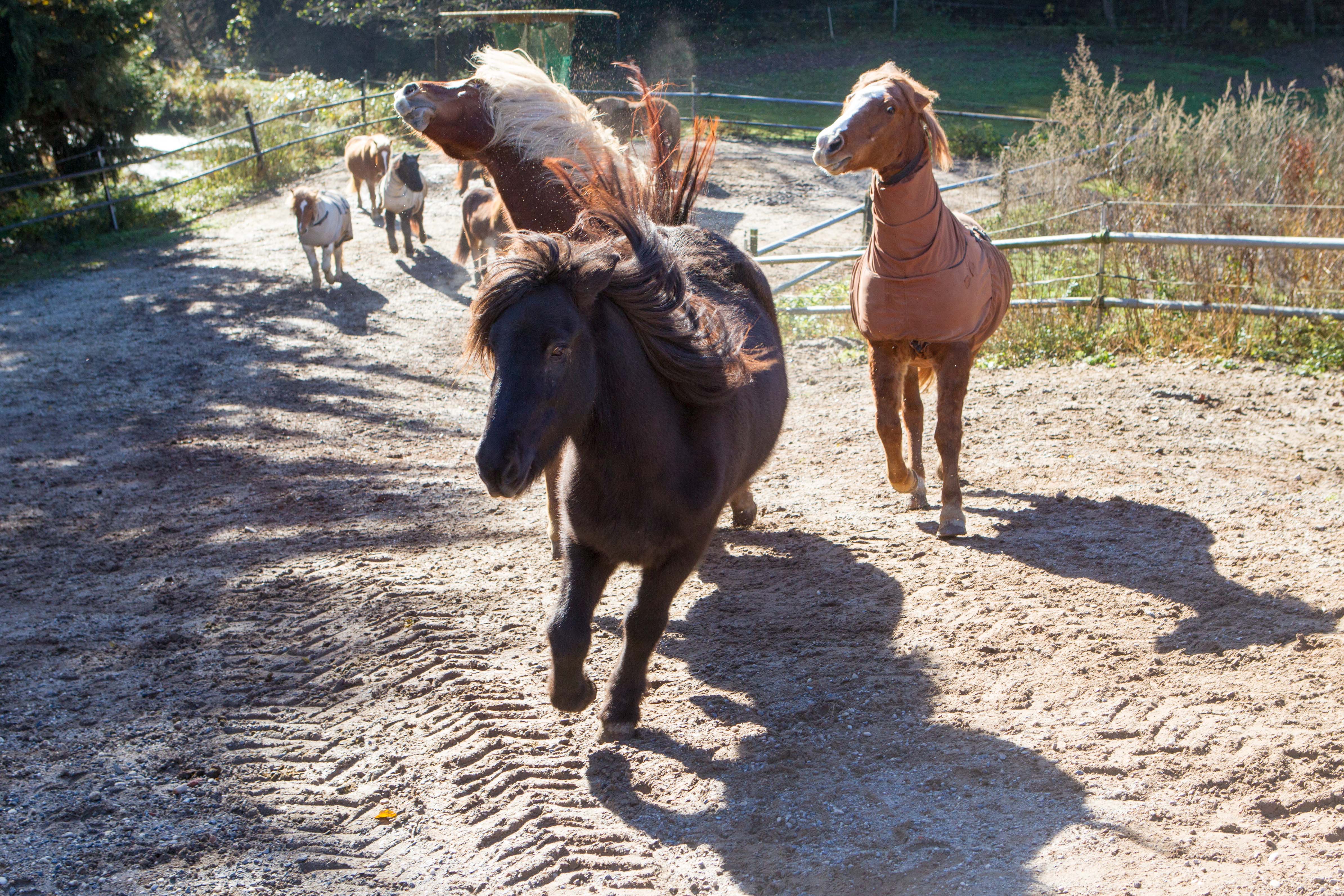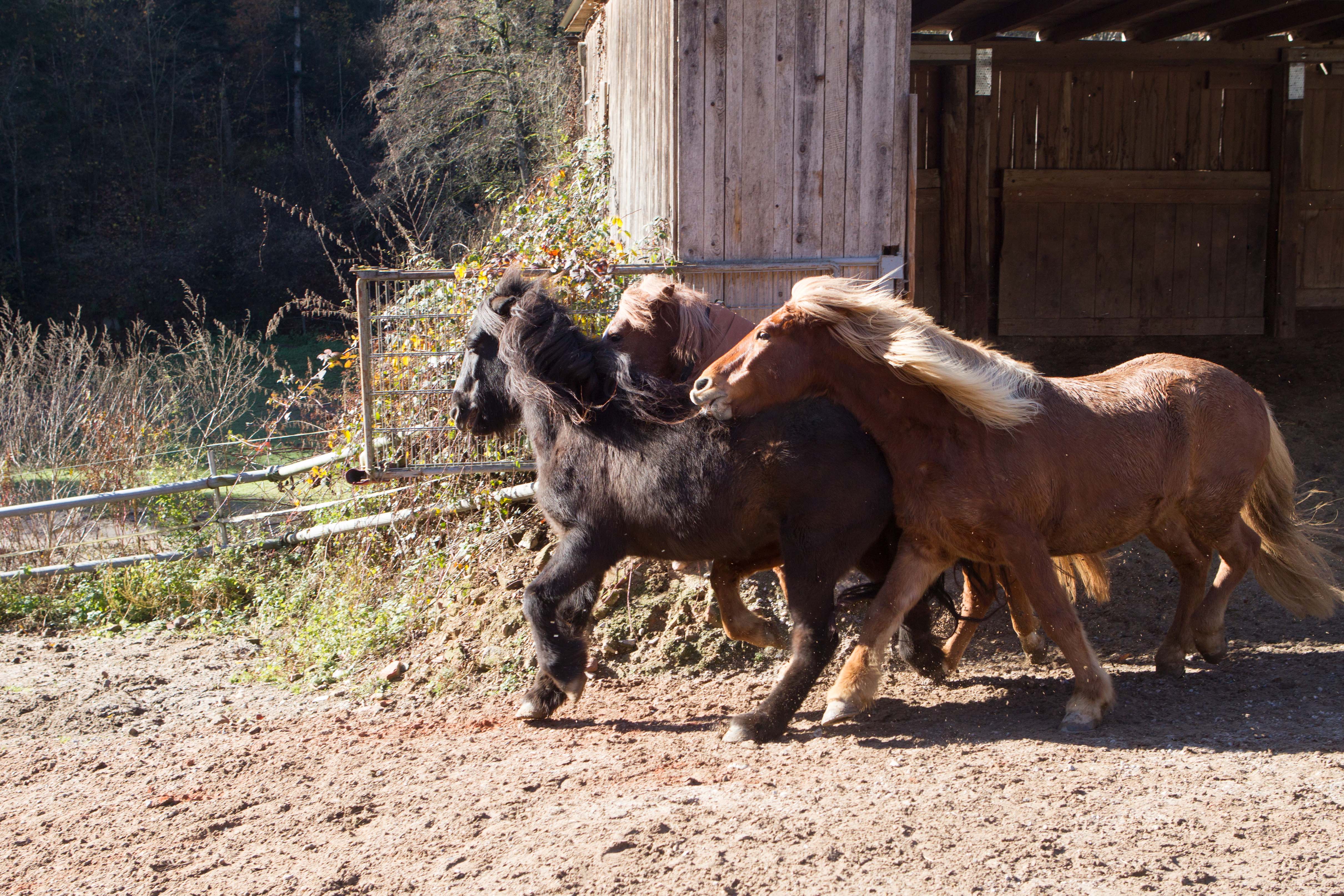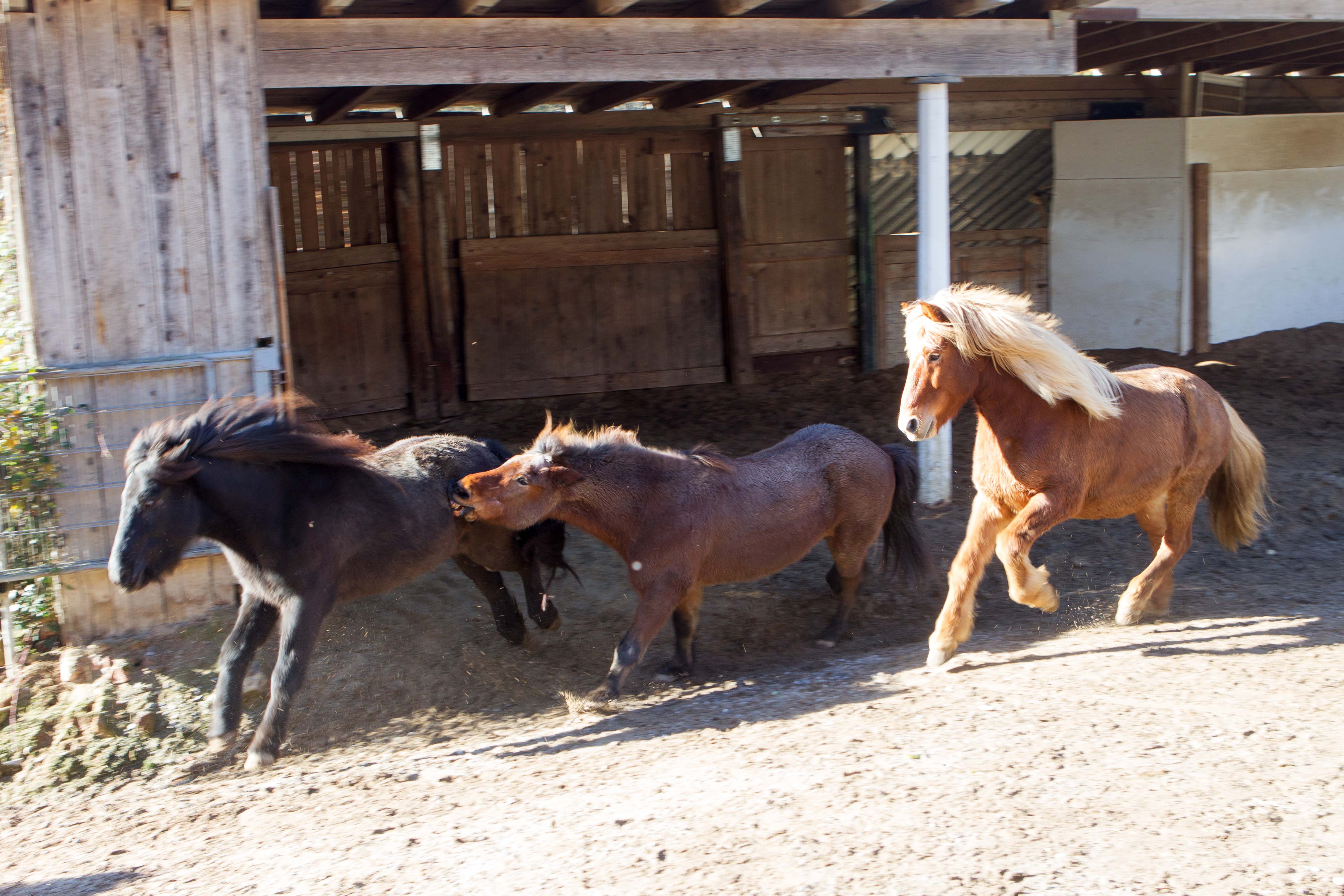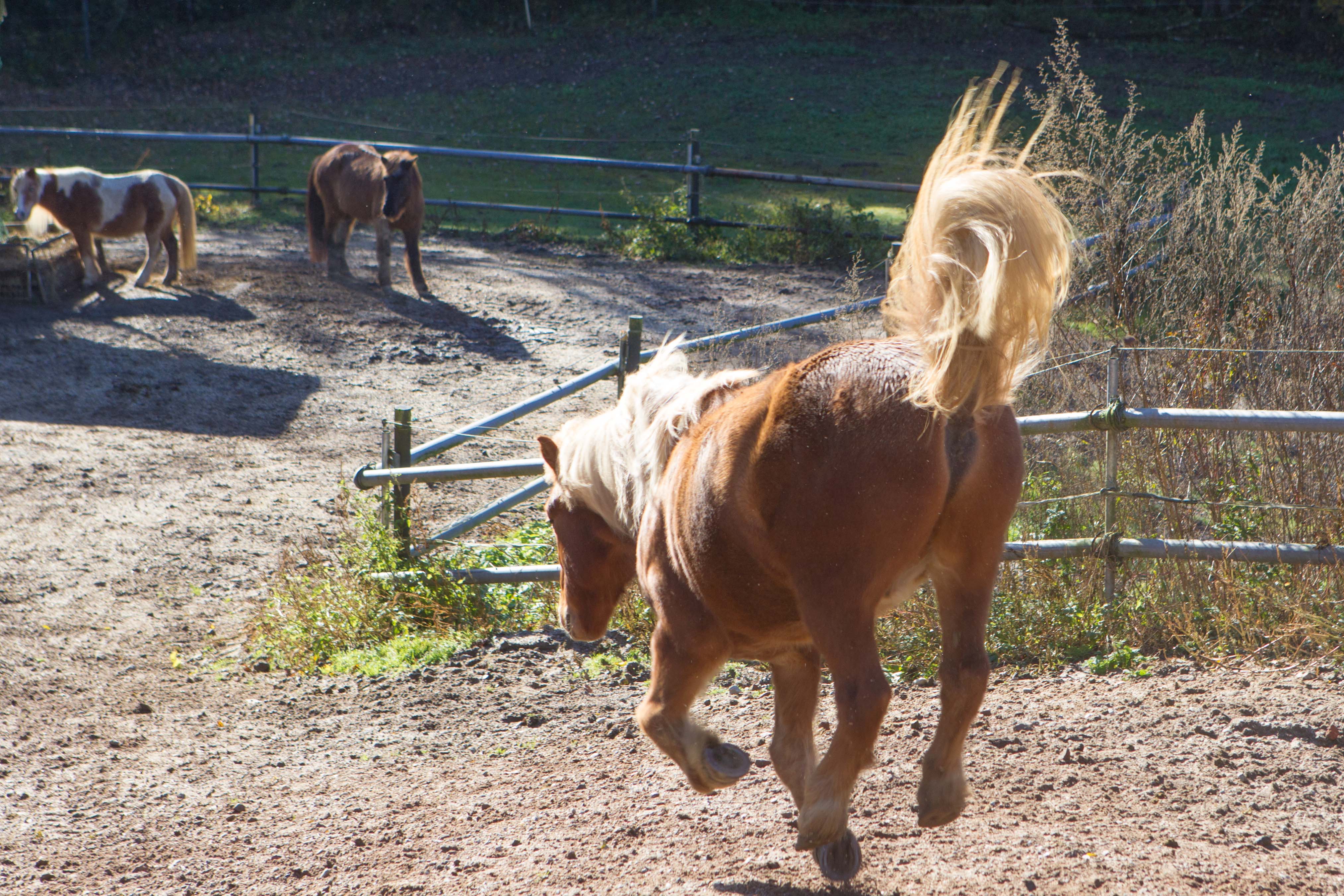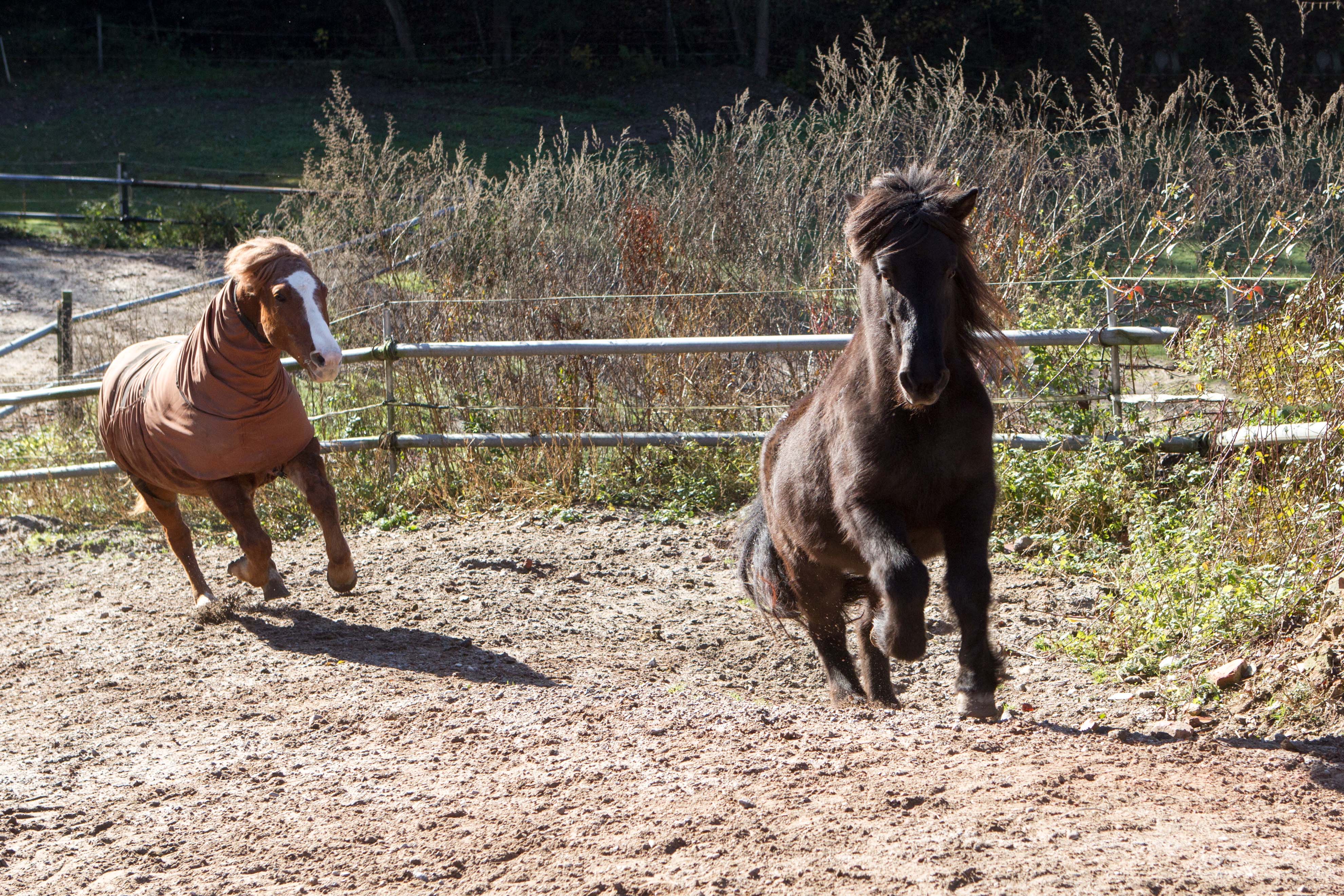 Am ersten Tag gab es ein paar Rennereien und natürlich durfte sie nicht an die Heuraufe unten, aber letztendlich war die Eingewöhnung komplett unspektakulär verlaufen. Es ist immer schön, wenn kein Pferd dabei verletzt wird.