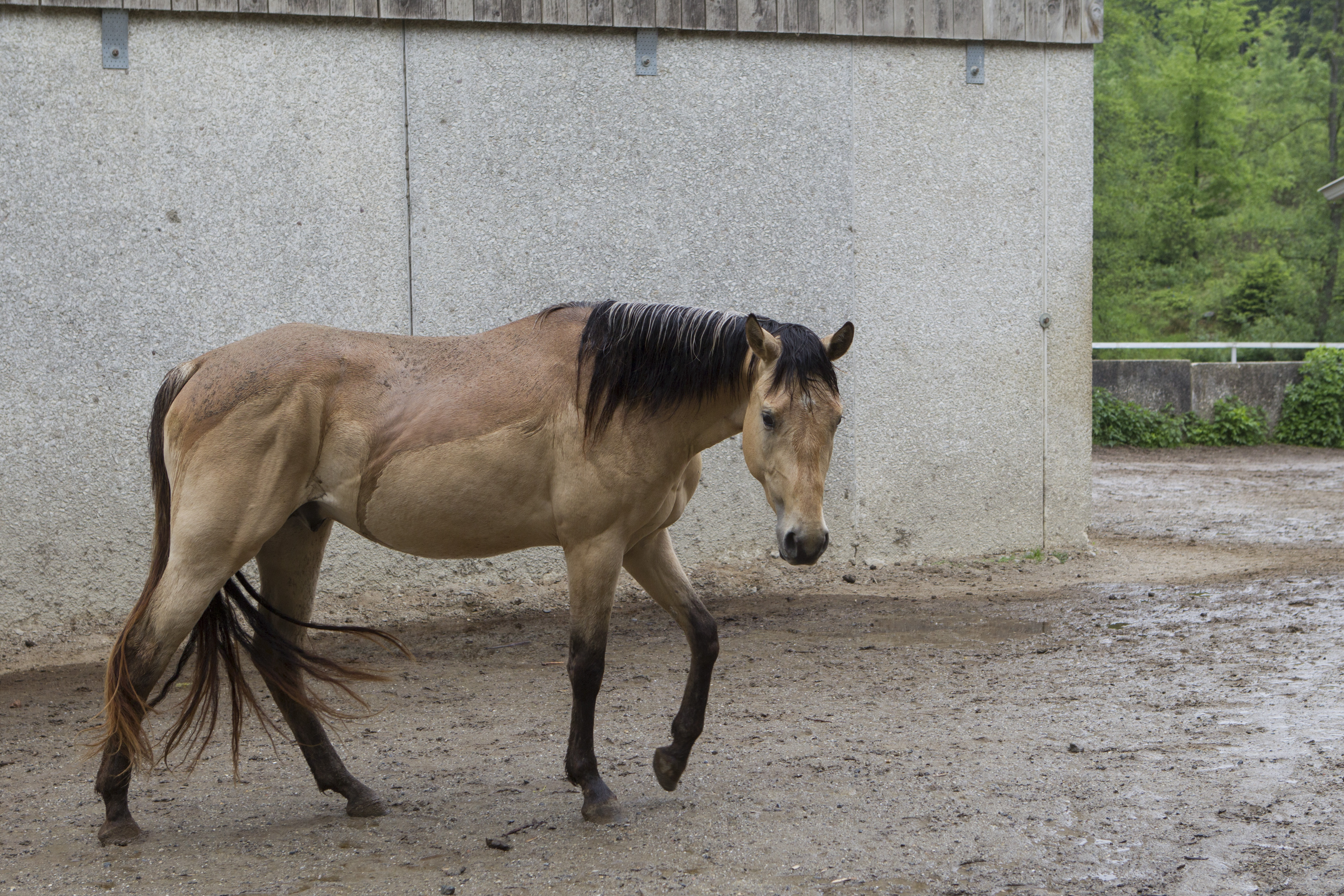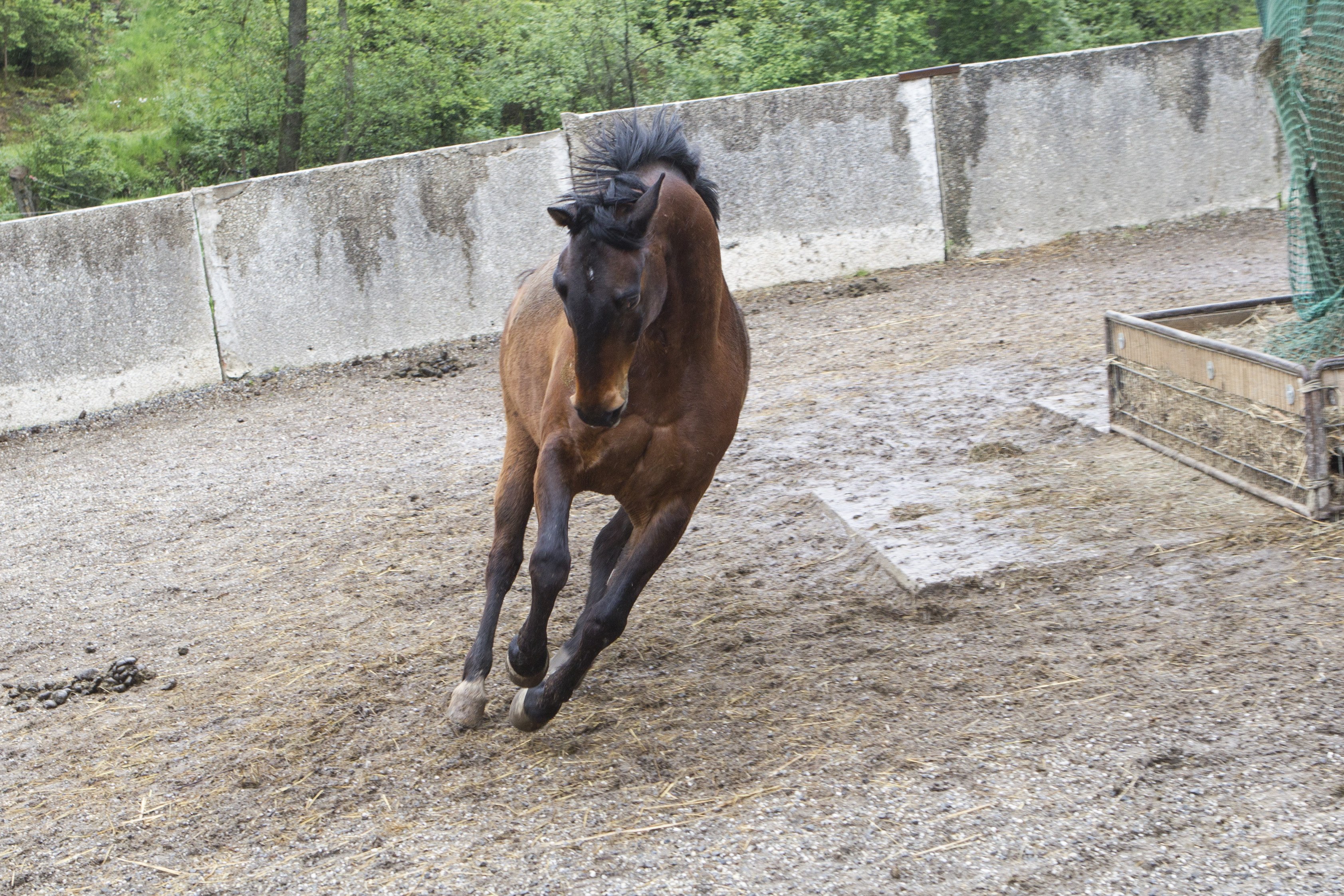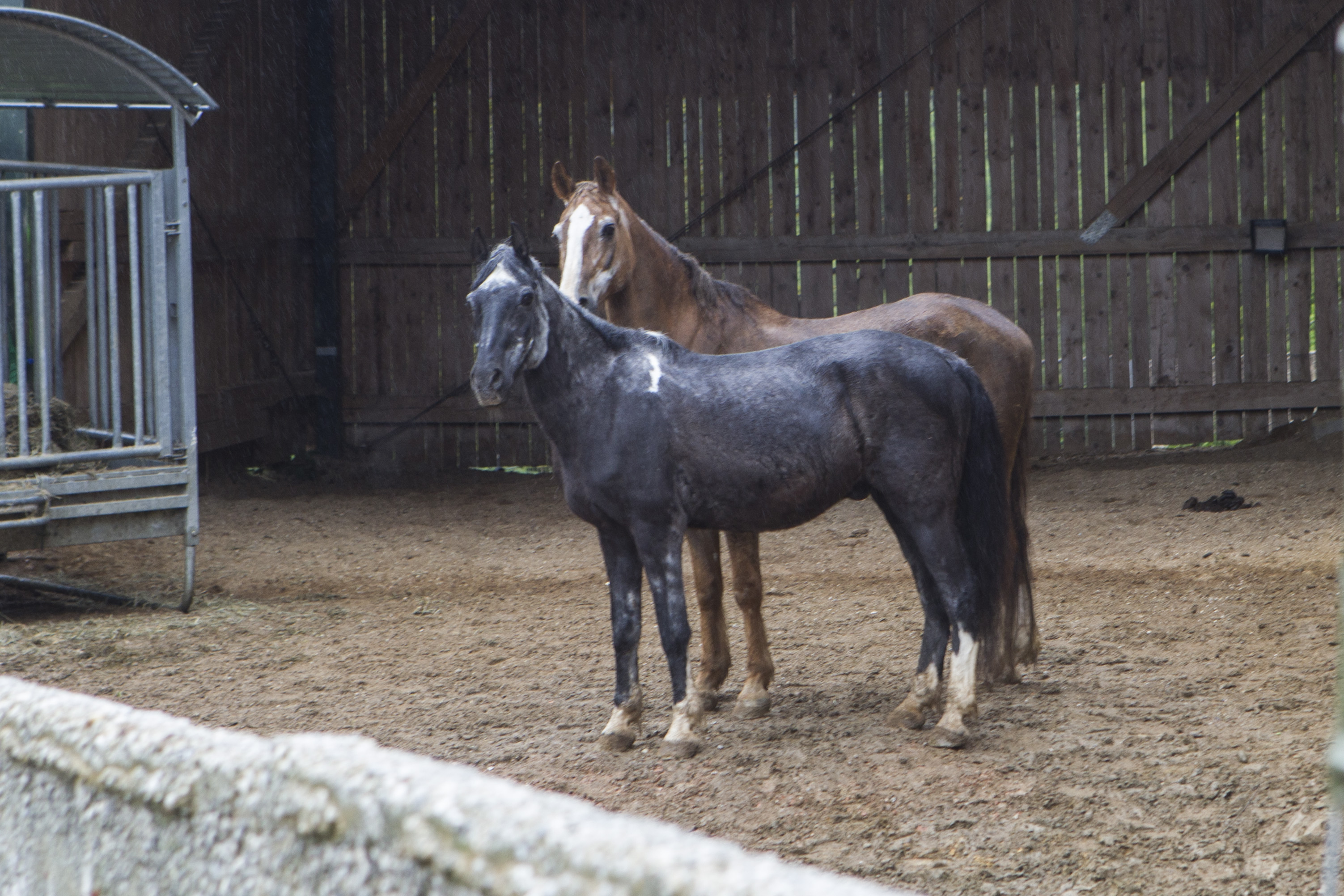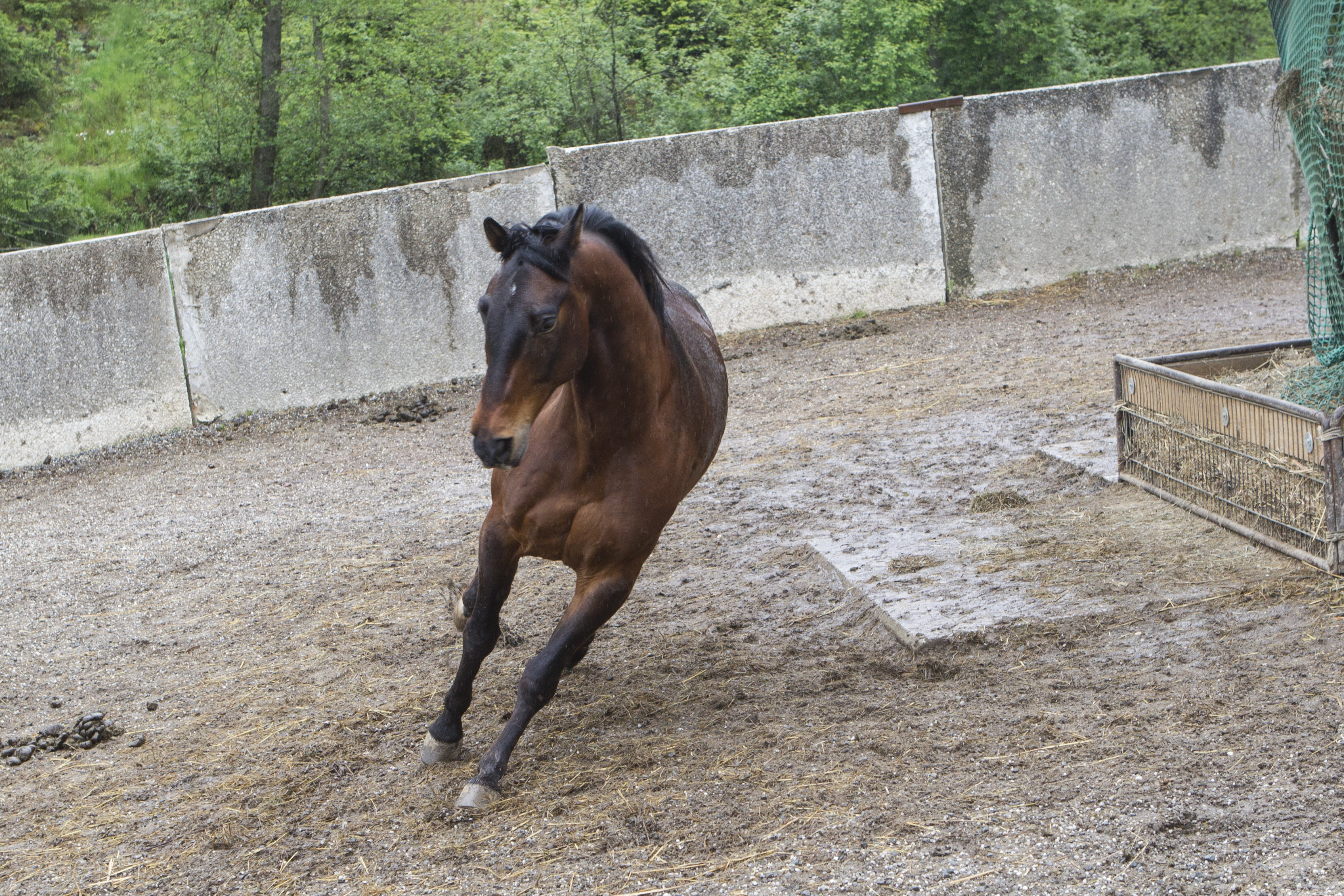 Anfang Mai siedelten nun zu den beiden Seniorinnen zwei Wallache über. Sie bekommen Heulage ohne Netz. In der angrenzenden Allergikerherde sorgte das vor allem bei Teja für Aufregung. Doch seht selbst ...!