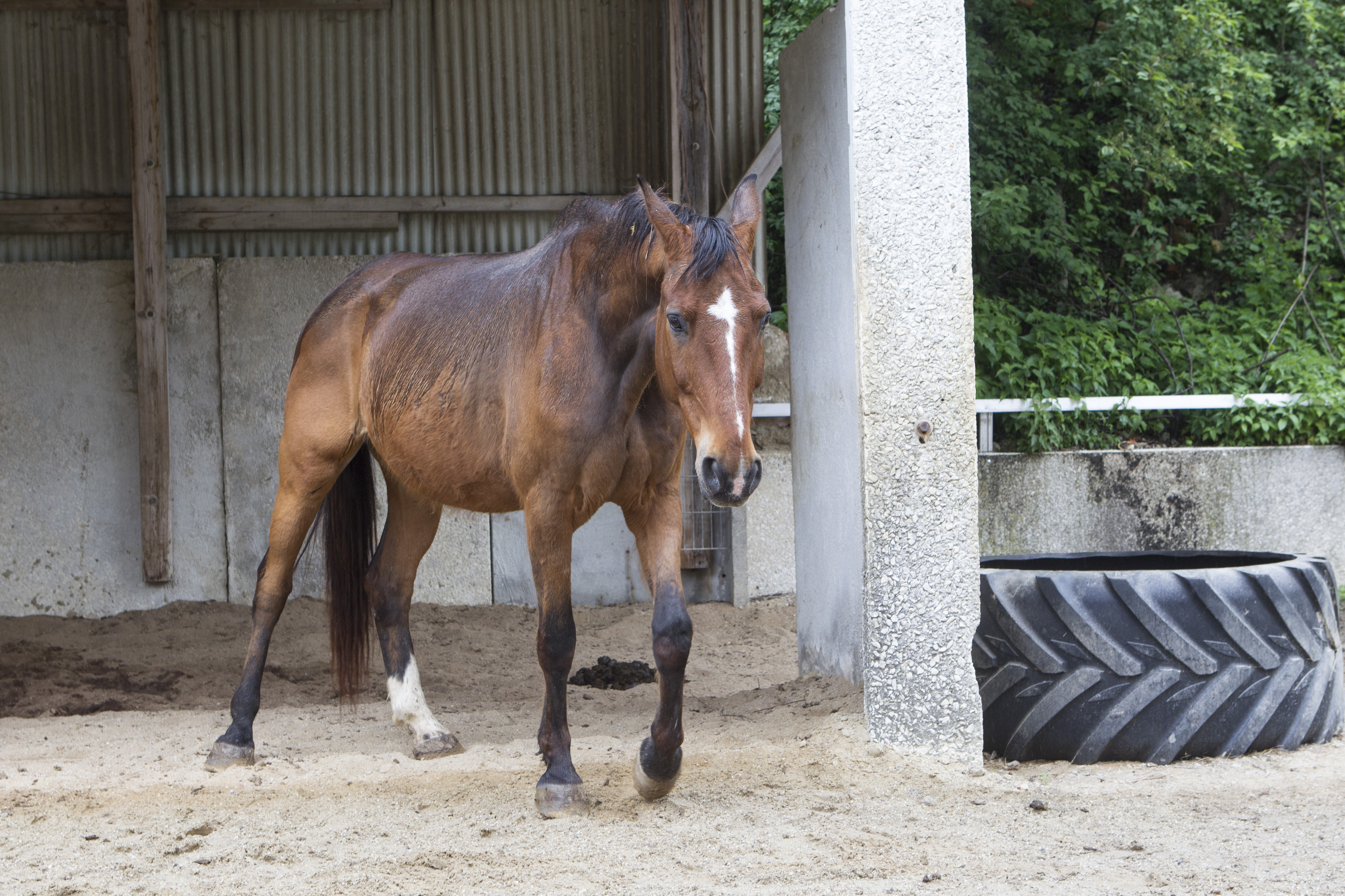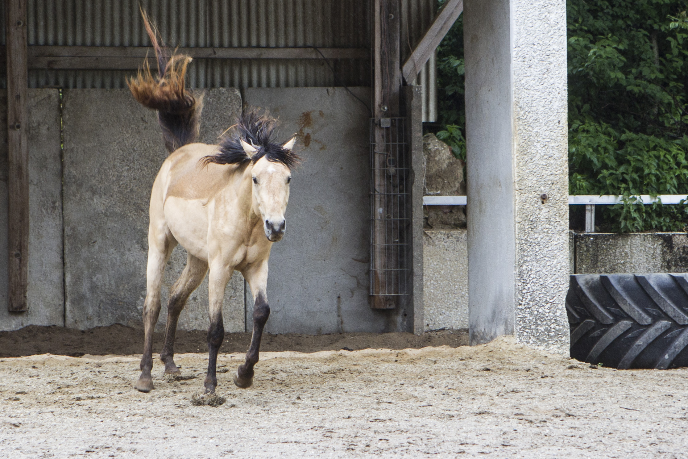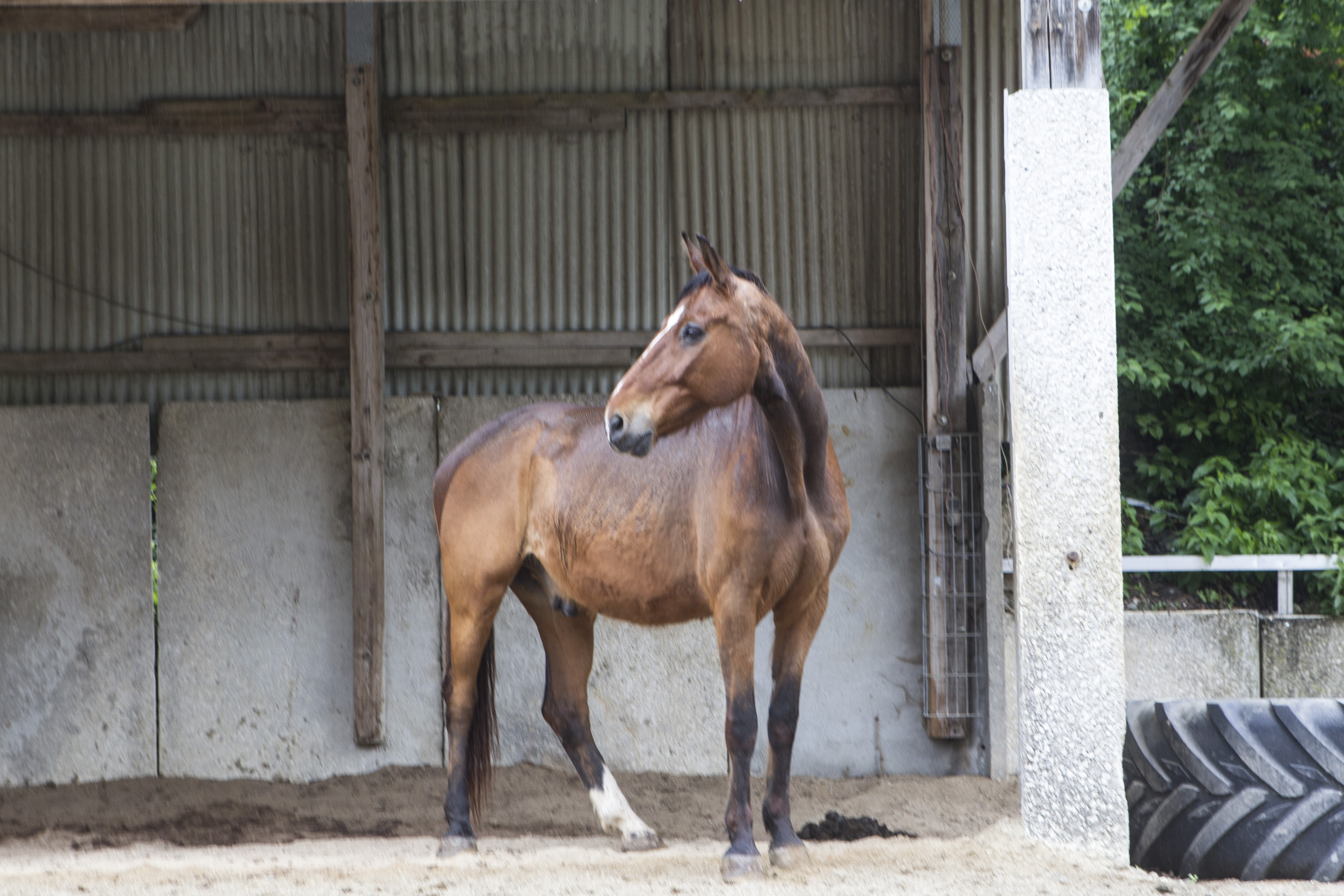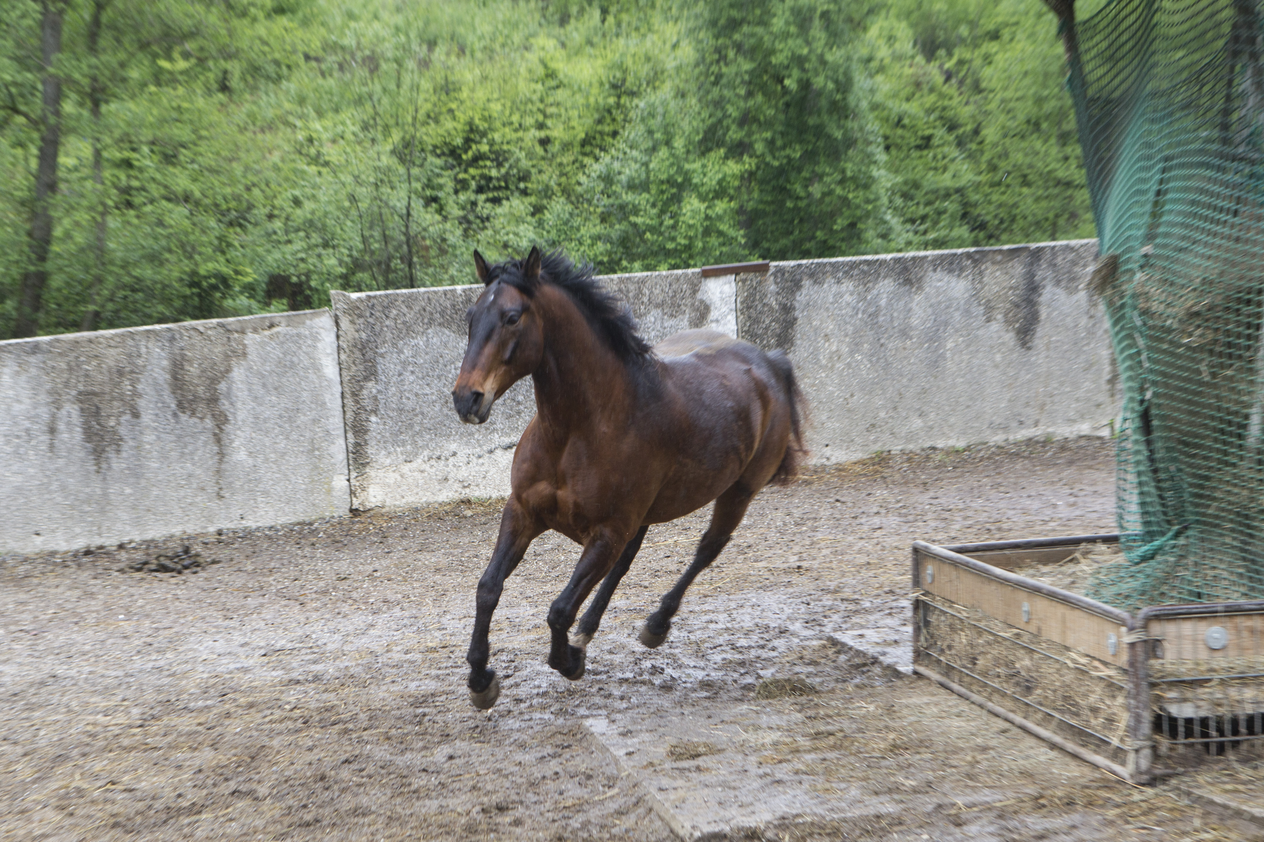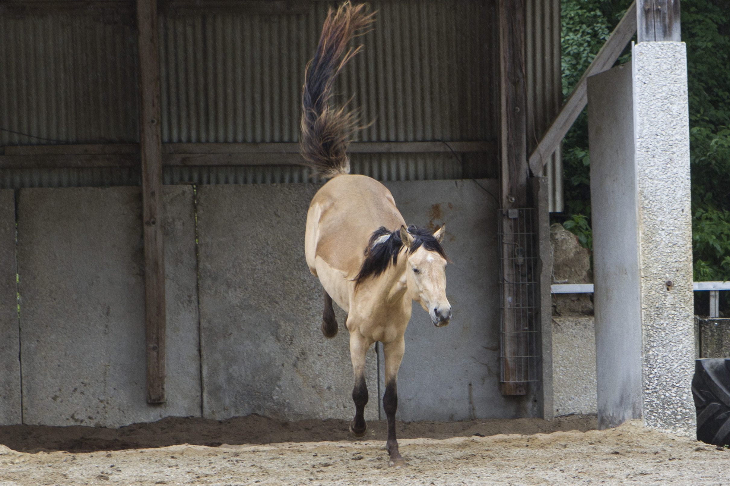 Anfang Mai siedelten nun zu den beiden Seniorinnen zwei Wallache über. Sie bekommen Heulage ohne Netz. In der angrenzenden Allergikerherde sorgte das vor allem bei Teja für Aufregung. Doch seht selbst ...!