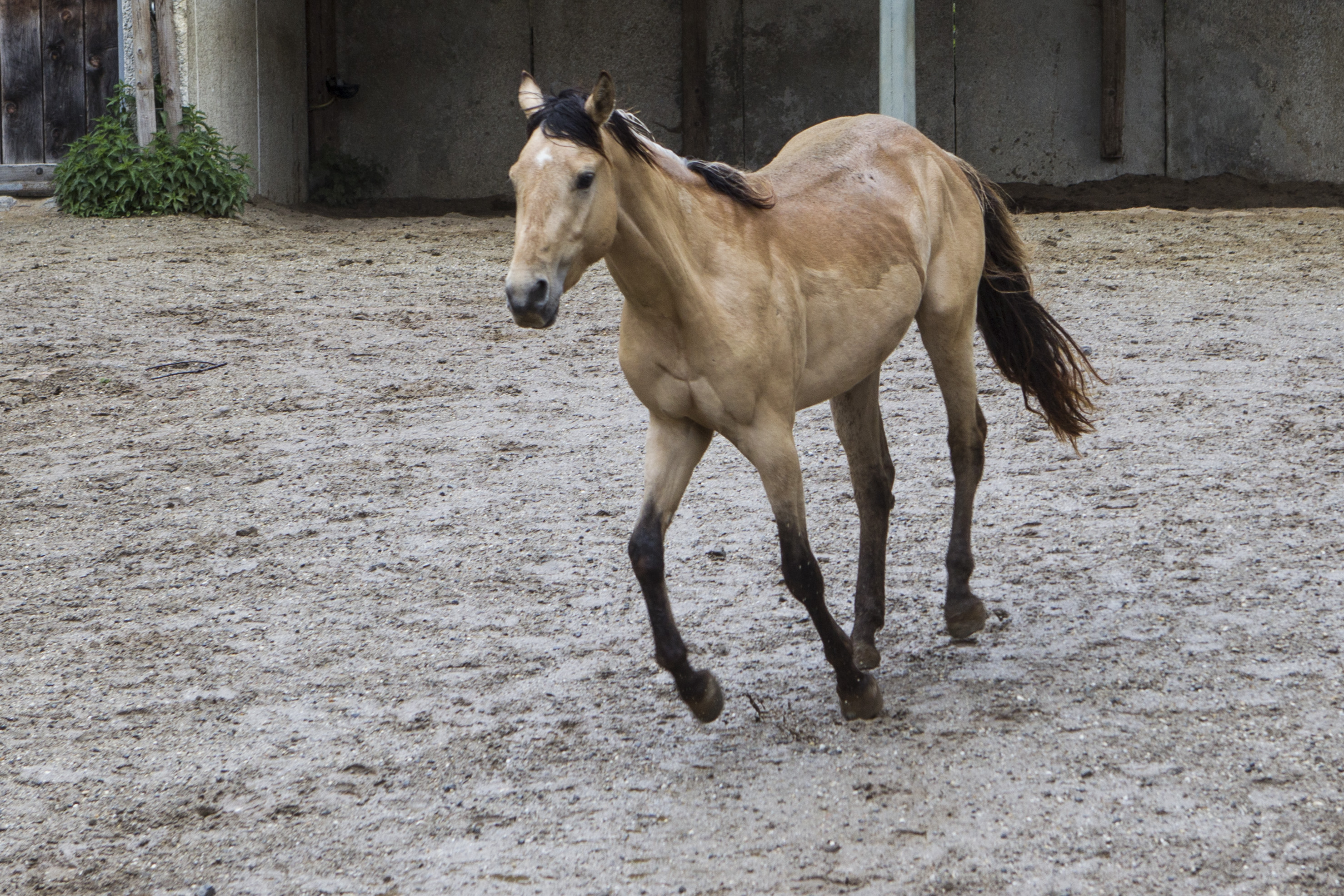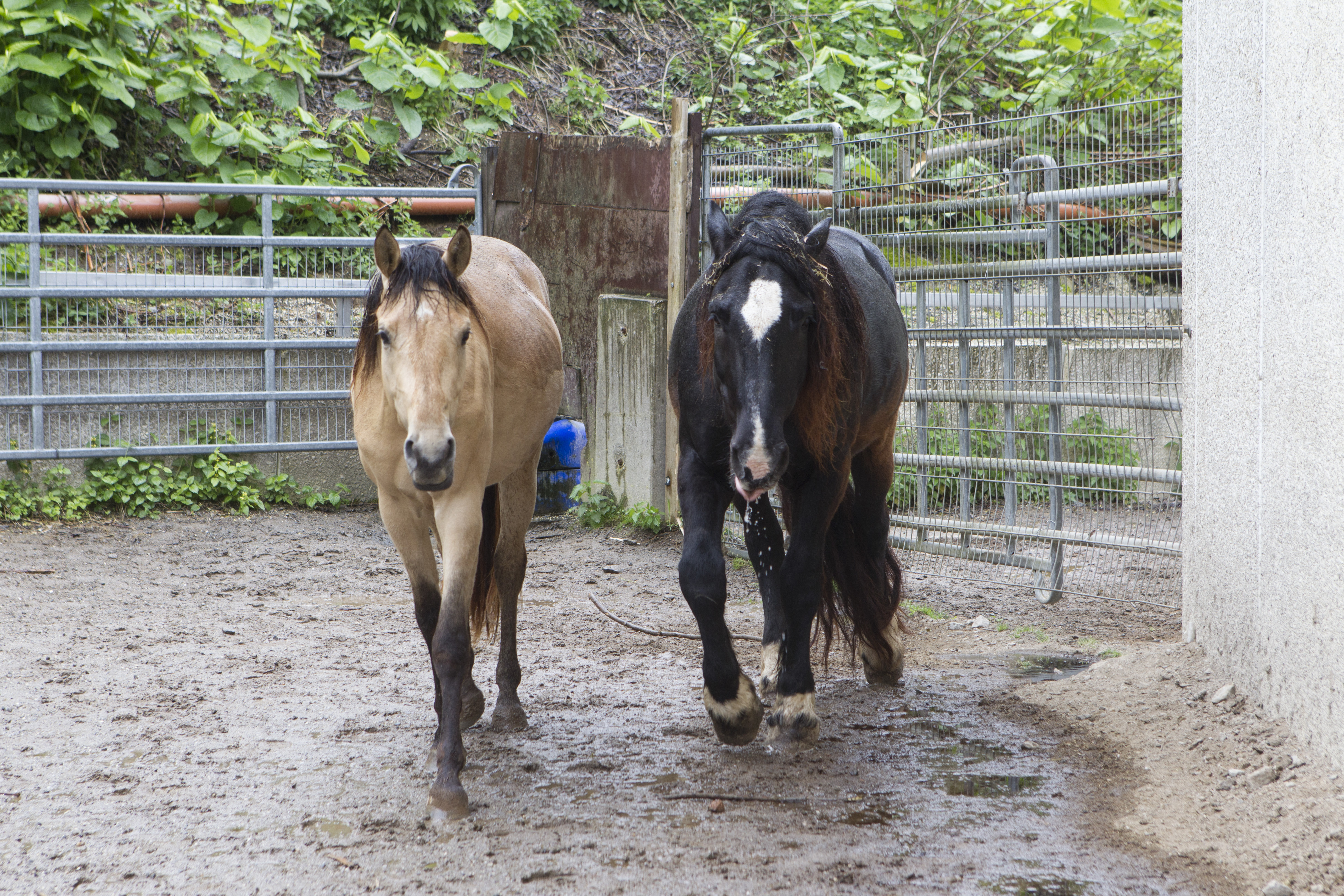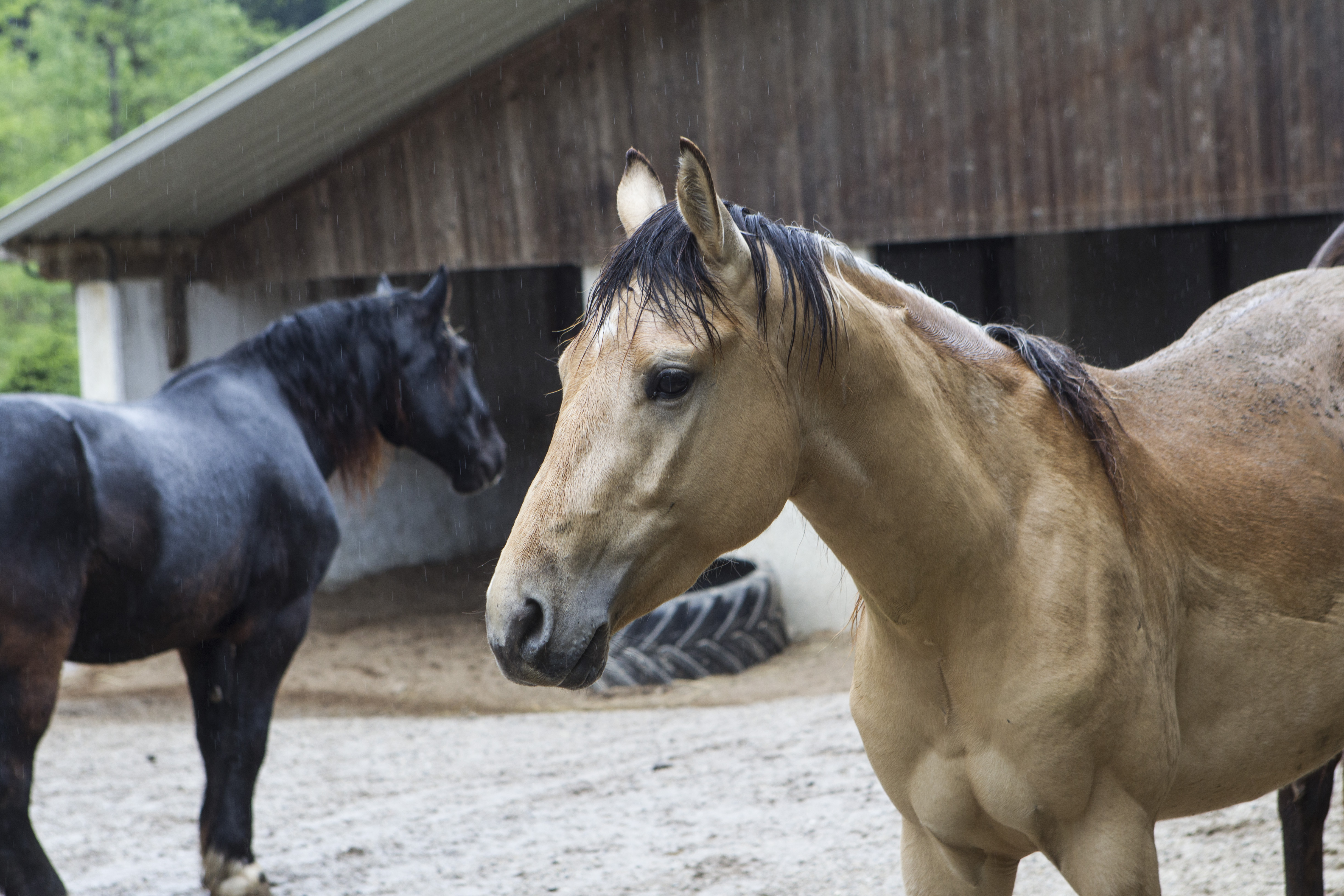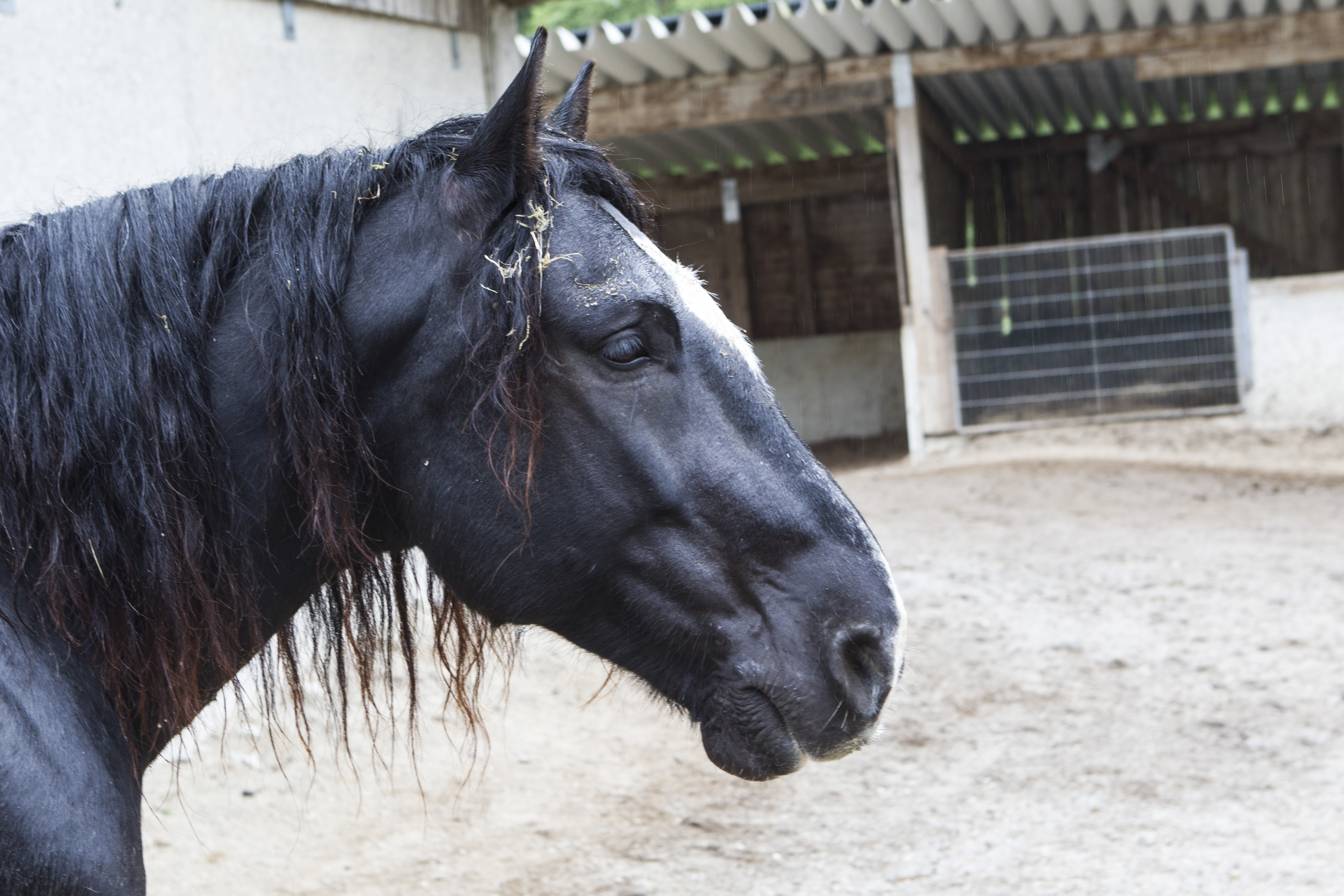 Anfang Mai siedelten nun zu den beiden Seniorinnen zwei Wallache über. Sie bekommen Heulage ohne Netz. In der angrenzenden Allergikerherde sorgte das vor allem bei Teja für Aufregung. Doch seht selbst ...!