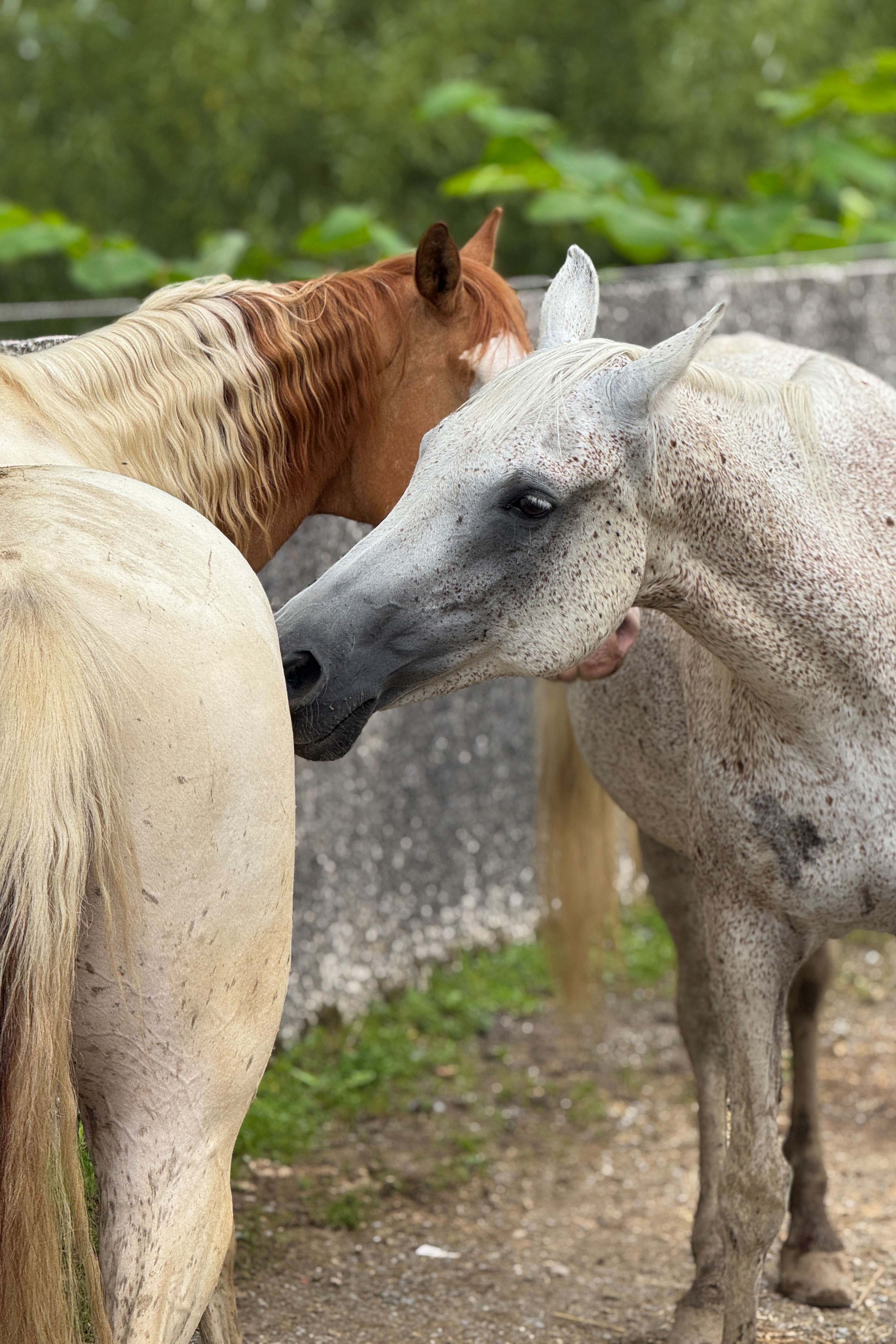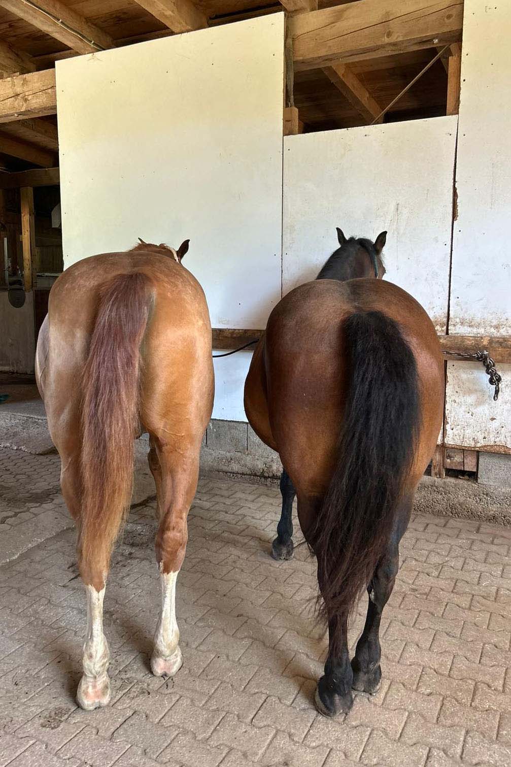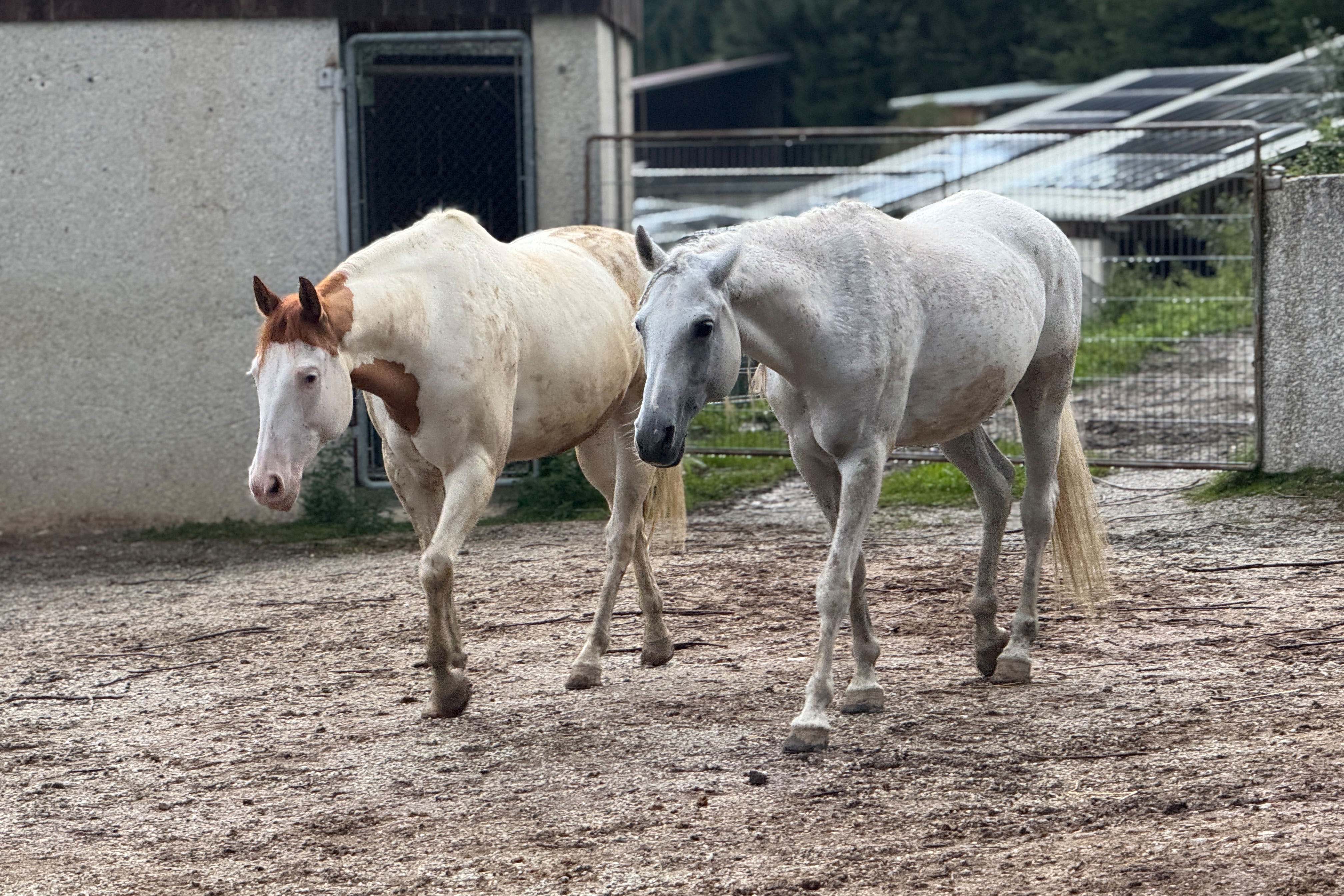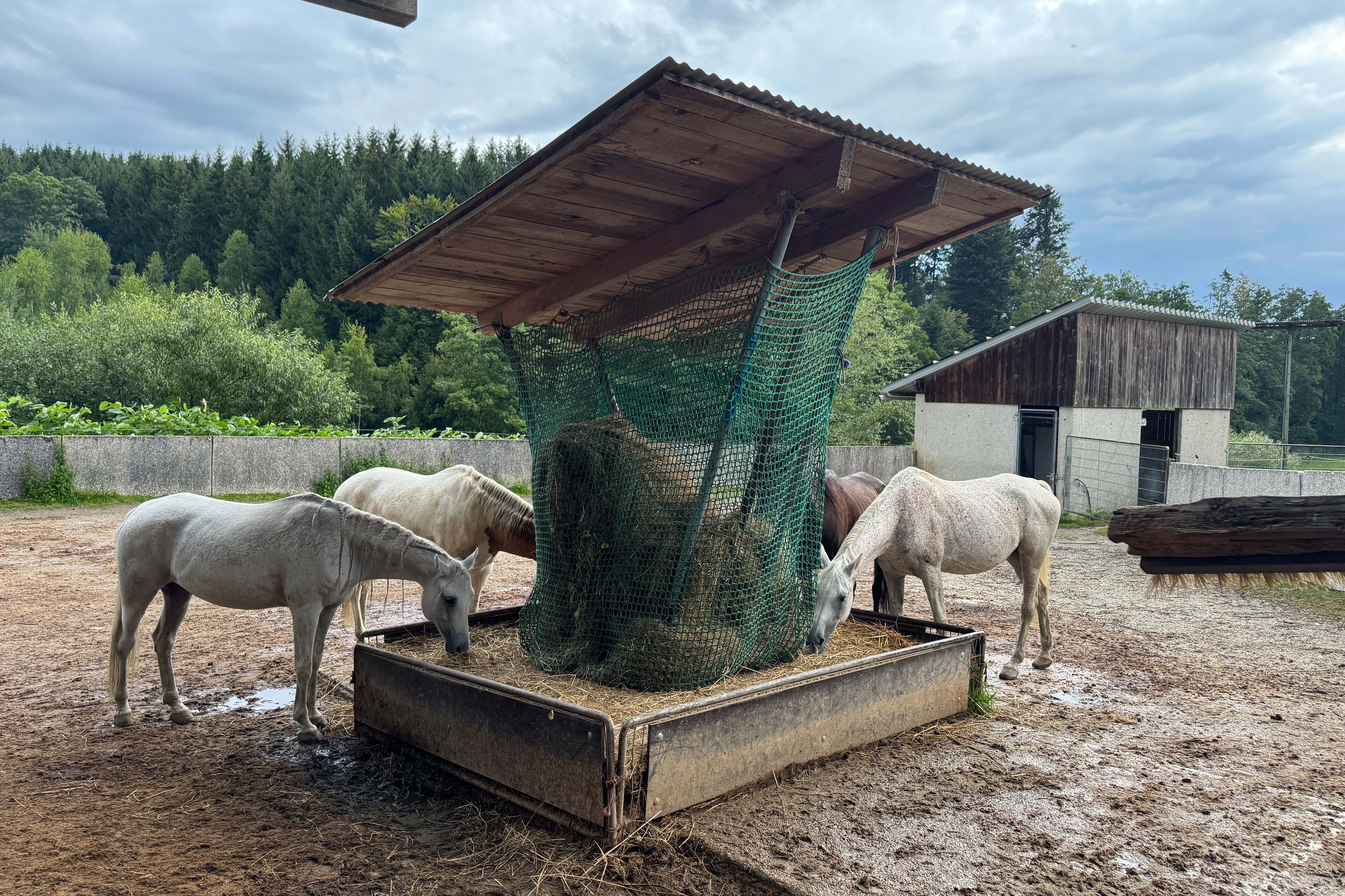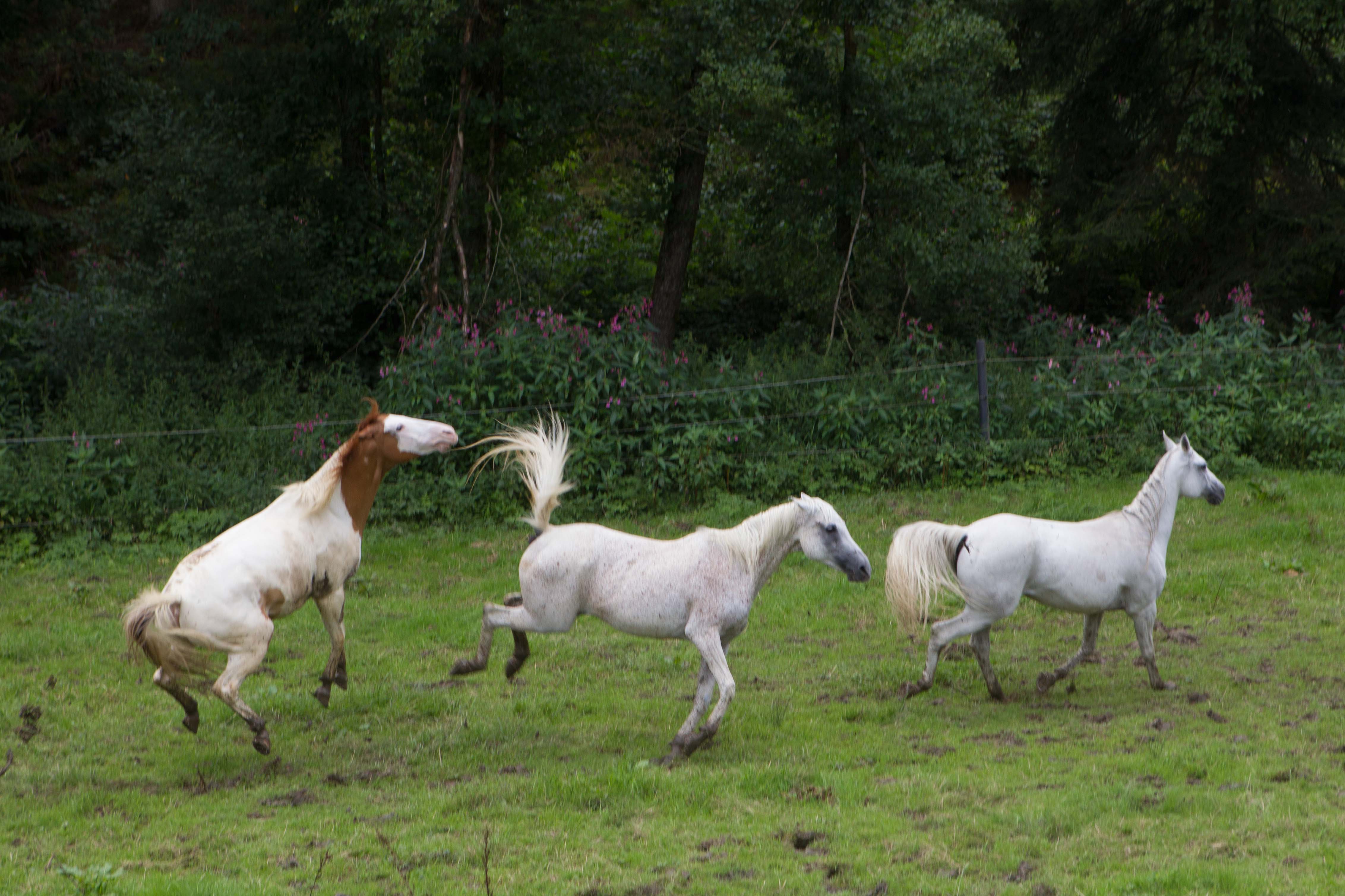 Etliche Pferde fanden es sehr angenehm sich auf der nassen Koppel eine Schlammpackung zu verpassen.