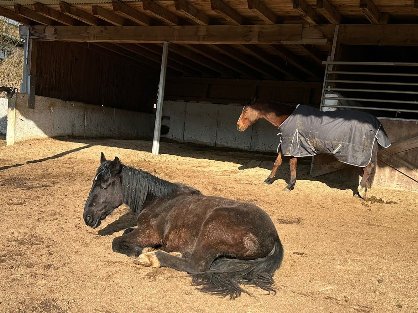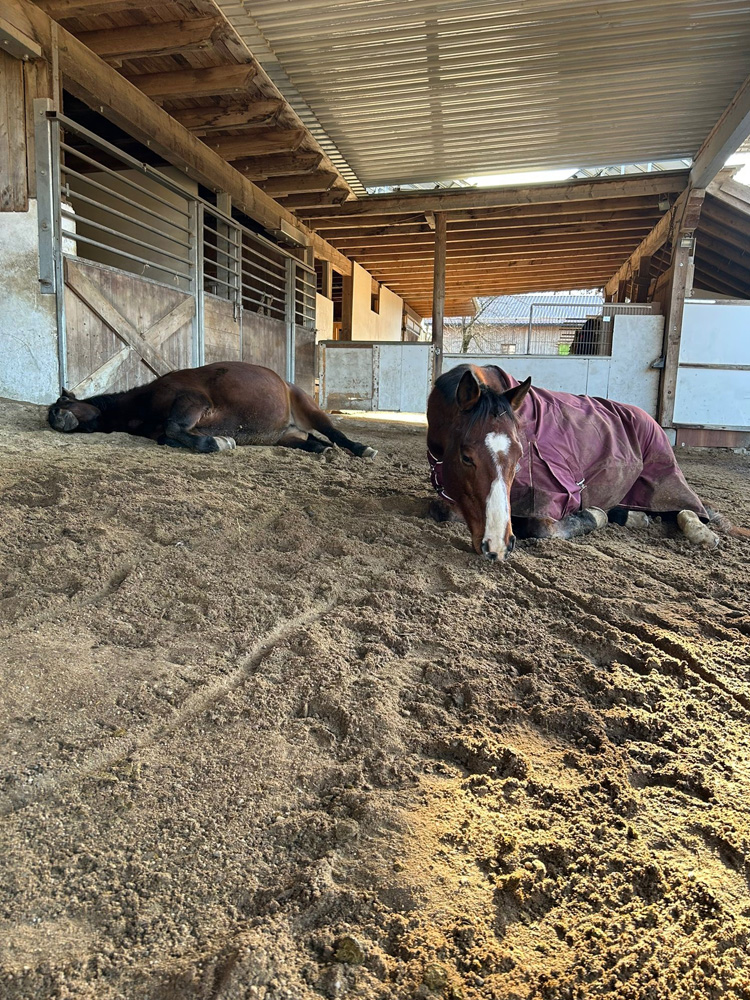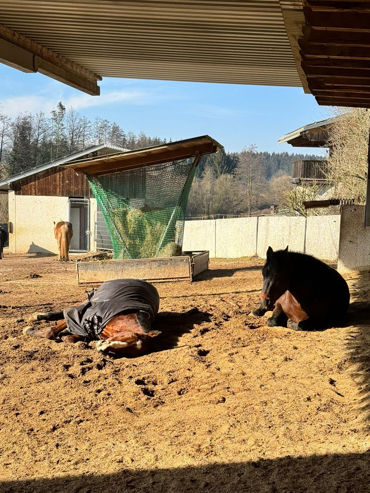 Vergleichsweise nennenswerte Minusgrade gab es vor allem nachts, die Pferde und auch wir genossen die Sonnenstrahlen. ODER macht sich jetzt schon Frühjahrsmüdigkeit bemerkbar. Jedenfalls signalisieren die längeren Tage, dass der Frühling im Anmarsch ist und dementsprechend startet schon bei dem einen oder anderen Vierbeiner der Fellwechsel. Kein Fellwechsel, sondern "Türenwechsel" der Spindschränke stand auf dem Programm von Stallchef Hannes und seinem Mitarbeiter Rafal. Ist schön geworden!
