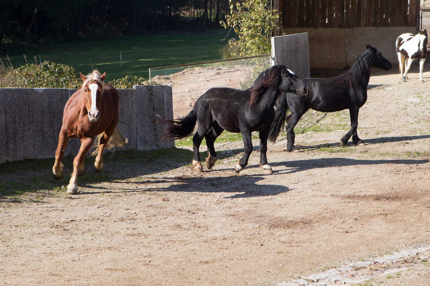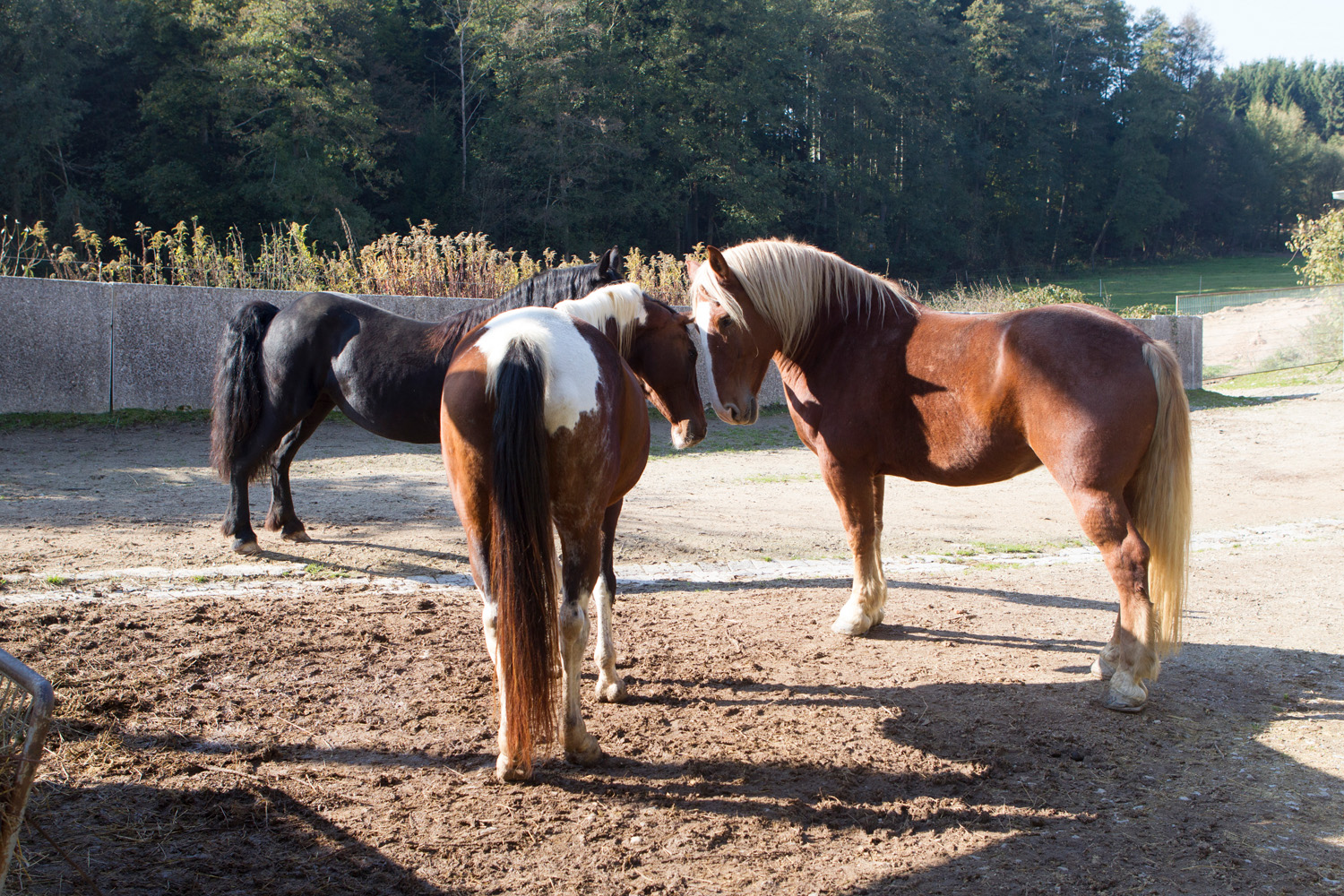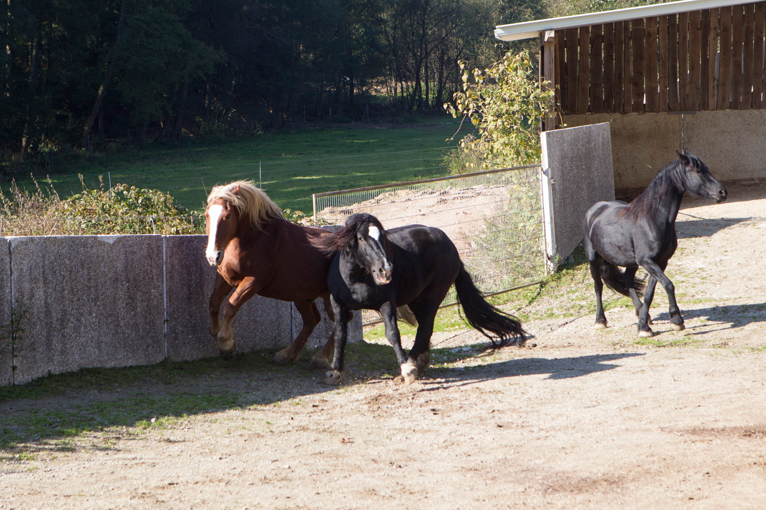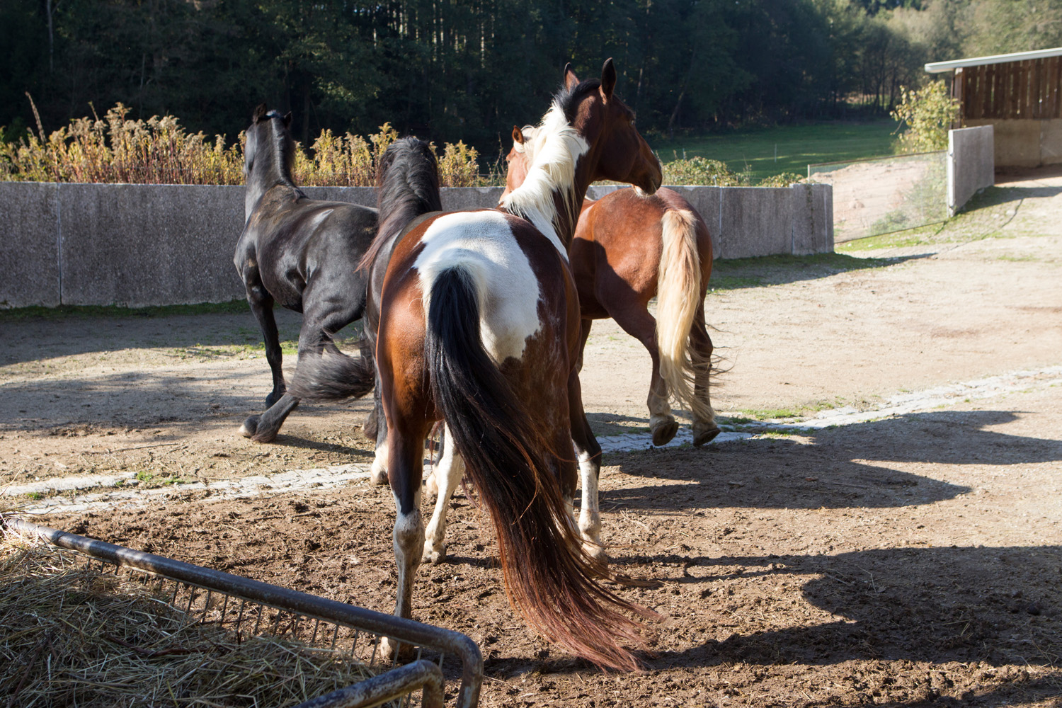 Nach einigen Monaten in der kleinen Wallachherde , die es mittlerweile nicht mehr gibt, kam Michl am 18. Oktober wieder in die "Heuherde" zurück. Einige neue "Gesichter" gab es nun in der Zwischenzeit in dieser Herde. Von den "Neuen"legte sich besonders Thora bei seiner Eingewöhnung ins Zeug. Aber alles ging ohne Verletzungen ab und schon bald kehrten alle wieder zur Tagesordnung zurück.