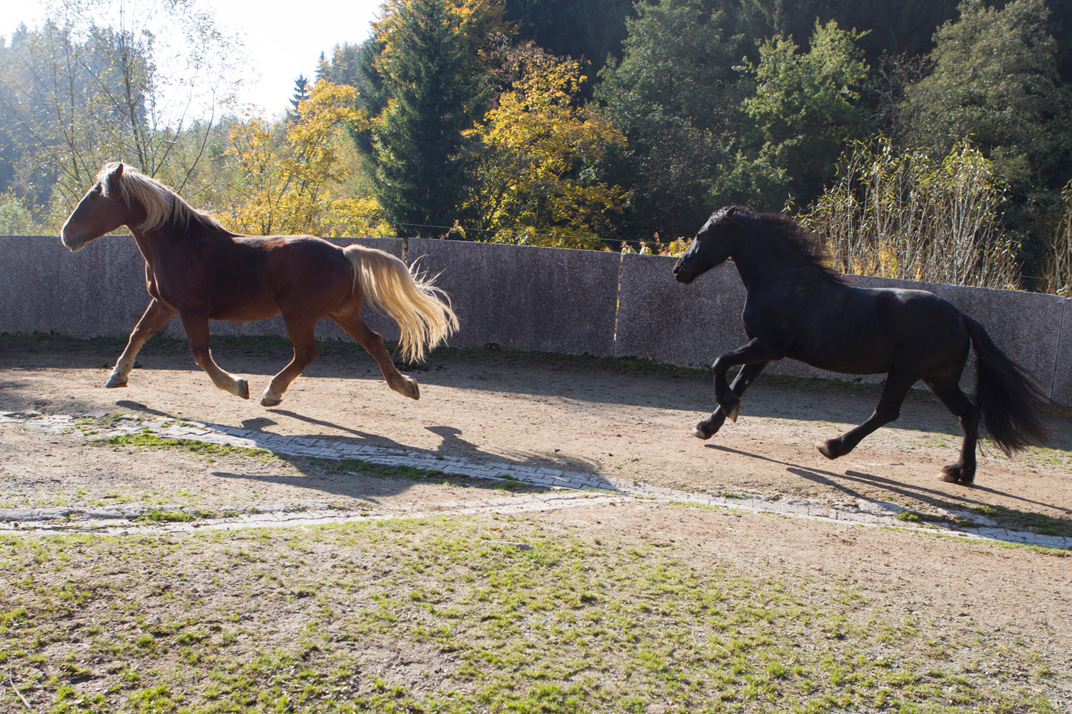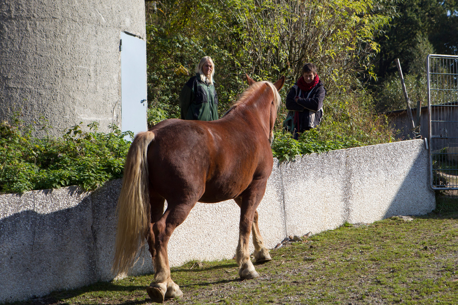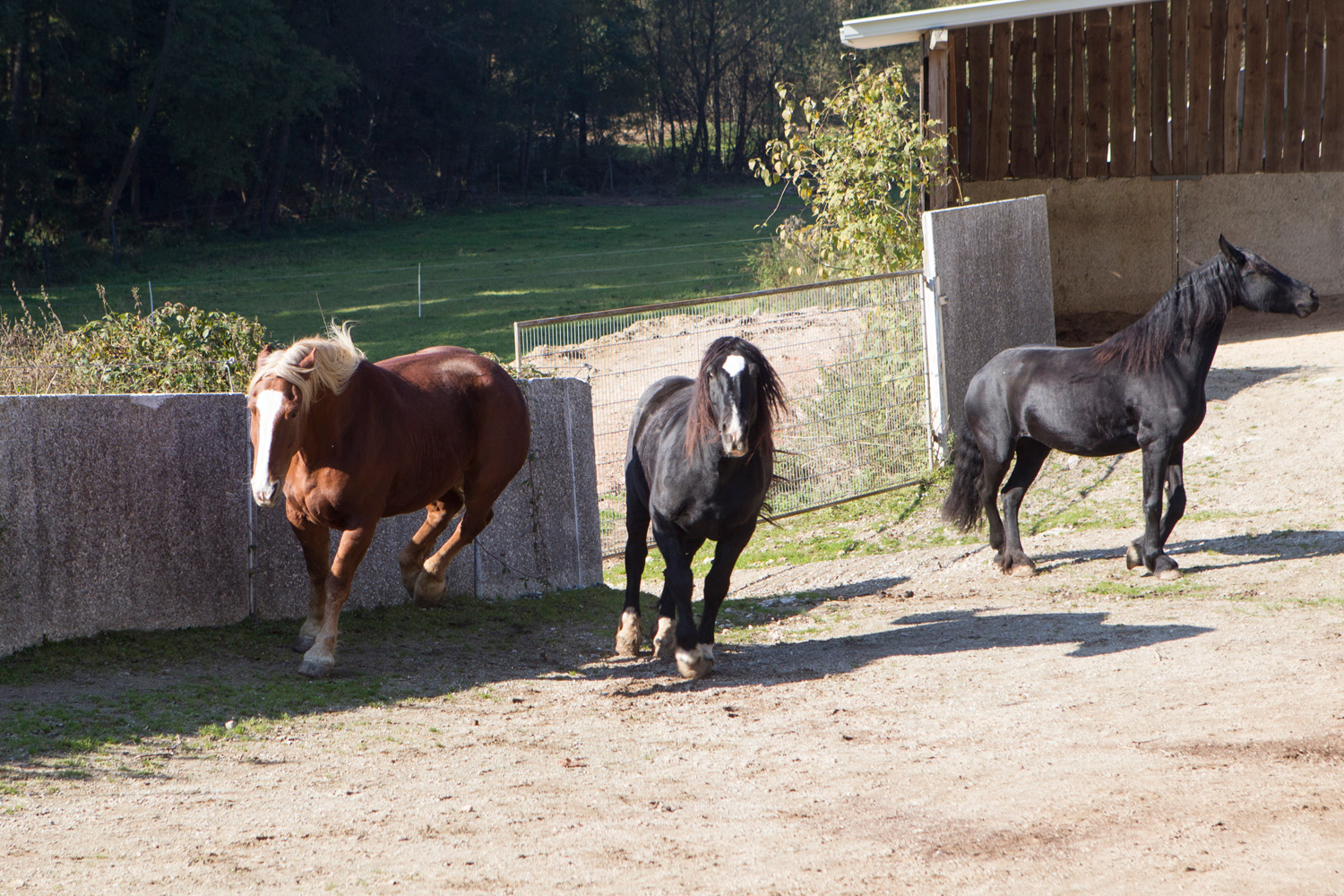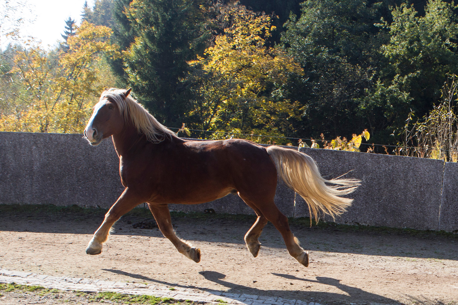 Nach einigen Monaten in der kleinen Wallachherde , die es mittlerweile nicht mehr gibt, kam Michl am 18. Oktober wieder in die "Heuherde" zurück. Einige neue "Gesichter" gab es nun in der Zwischenzeit in dieser Herde. Von den "Neuen"legte sich besonders Thora bei seiner Eingewöhnung ins Zeug. Aber alles ging ohne Verletzungen ab und schon bald kehrten alle wieder zur Tagesordnung zurück.