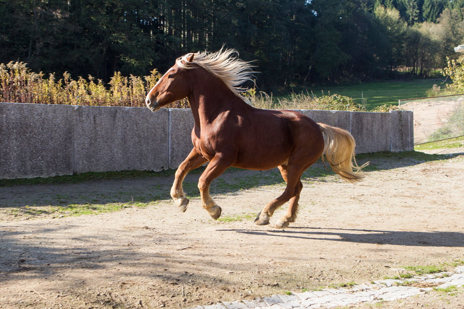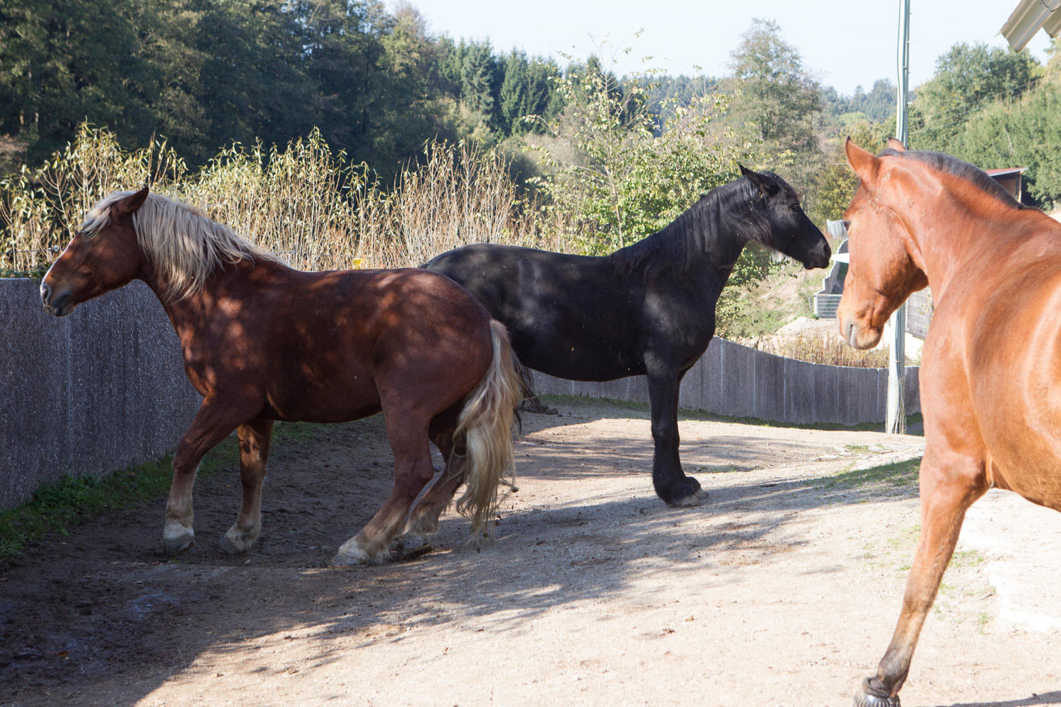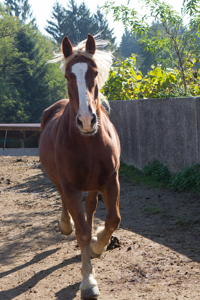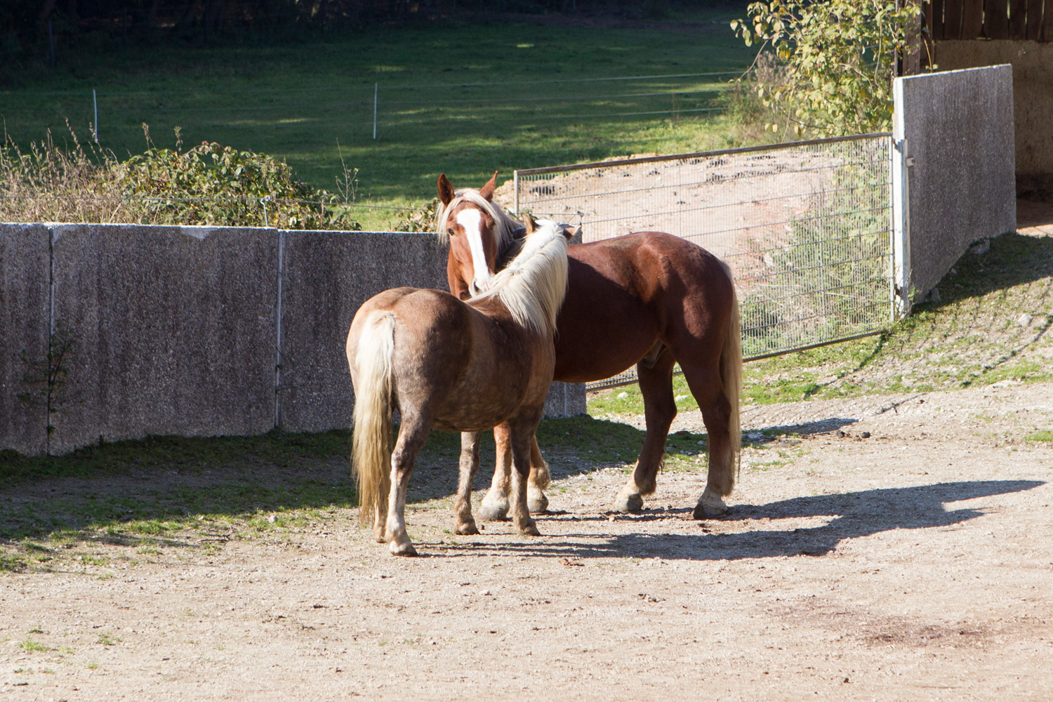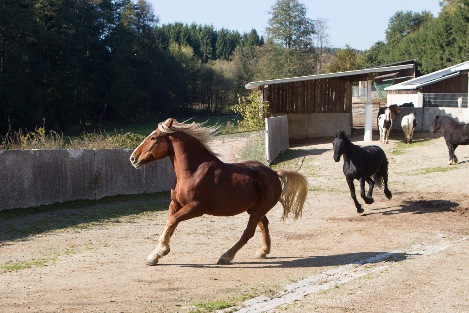 Nach einigen Monaten in der kleinen Wallachherde , die es mittlerweile nicht mehr gibt, kam Michl am 18. Oktober wieder in die "Heuherde" zurück. Einige neue "Gesichter" gab es nun in der Zwischenzeit in dieser Herde. Von den "Neuen"legte sich besonders Thora bei seiner Eingewöhnung ins Zeug. Aber alles ging ohne Verletzungen ab und schon bald kehrten alle wieder zur Tagesordnung zurück.