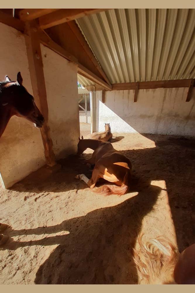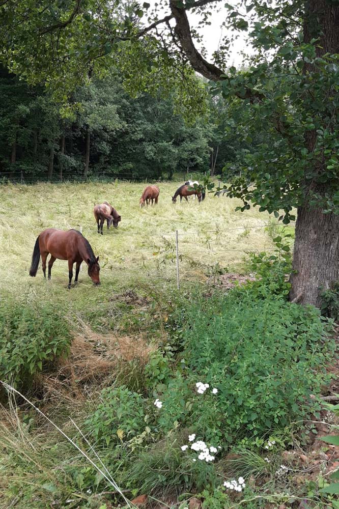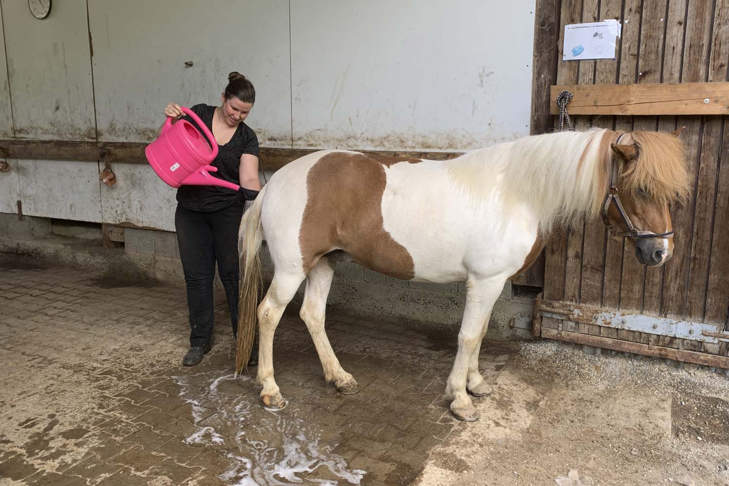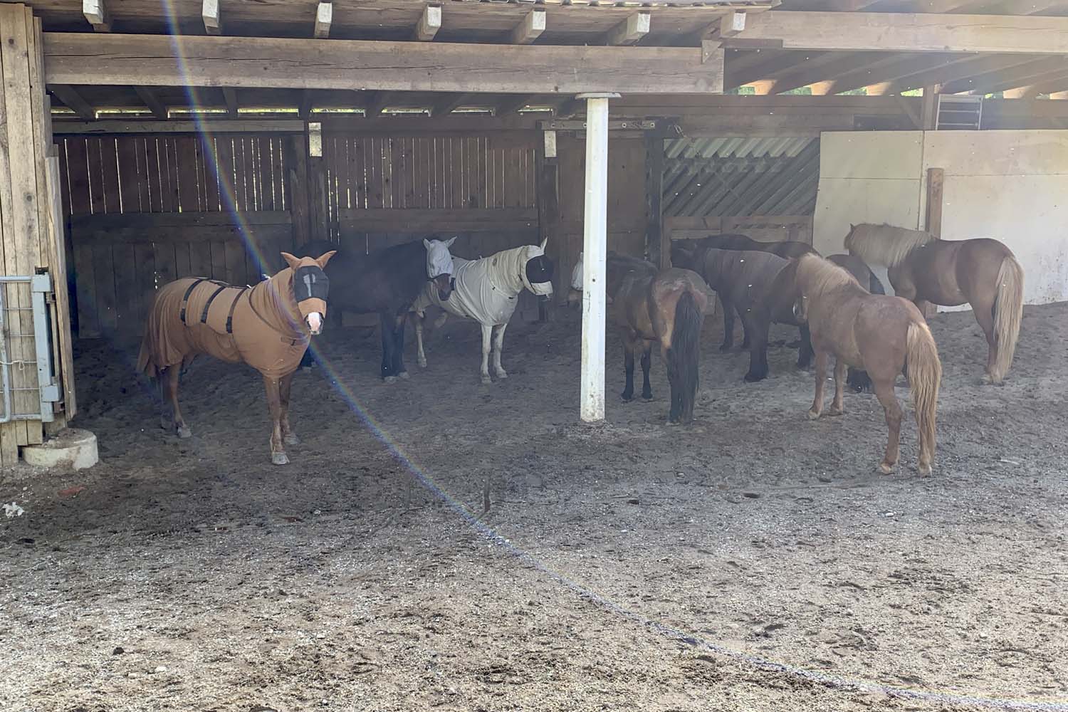 .... mit heißen Tagen, aber auch diversen Regengüssen. Die Mücken und Fliegen vermehrten sich rasant und plagten die Pferde. So war bei besonders empfindlichen "Maskenball" angesagt.