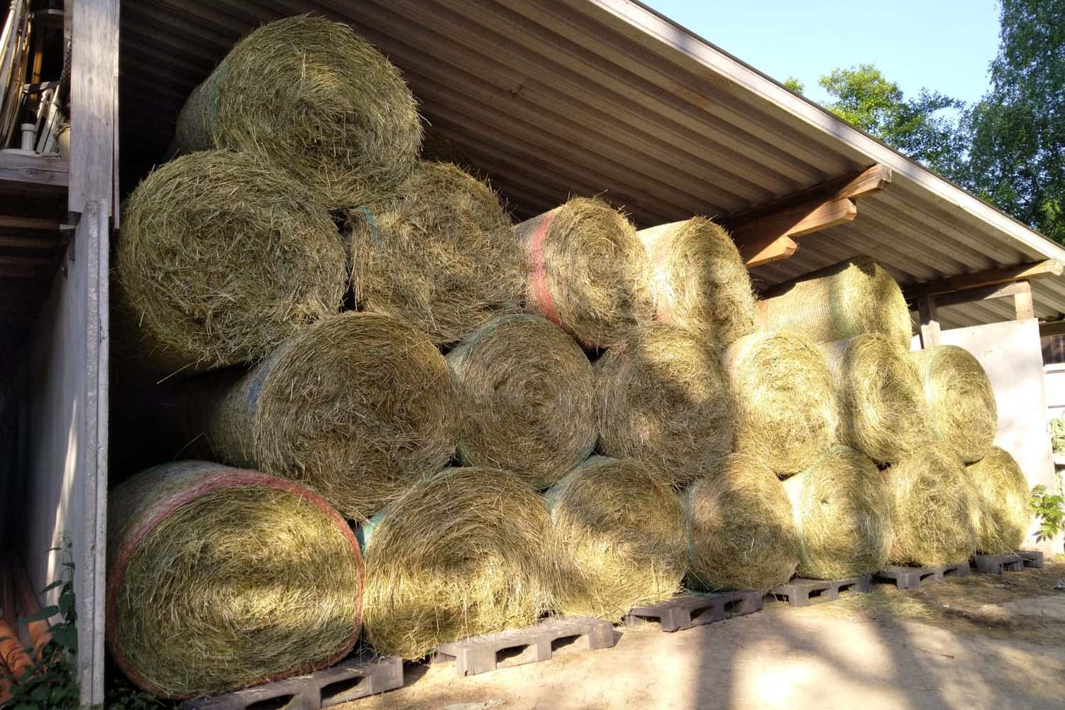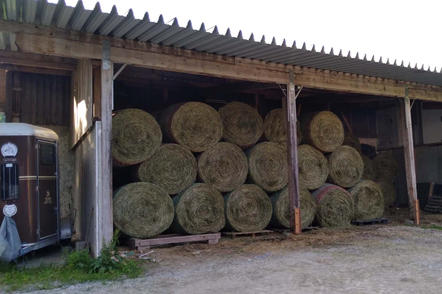 Die Heuernte fiel mit 200 Ballen in sehr guter Qualität sehr zufriedenstellend aus, somit ist der größte Teil eingefahren. Bei 8ha fiel die Ernte bislang "ins Wasser" und wird sobald das Wetter "mitspielt" erledigt.