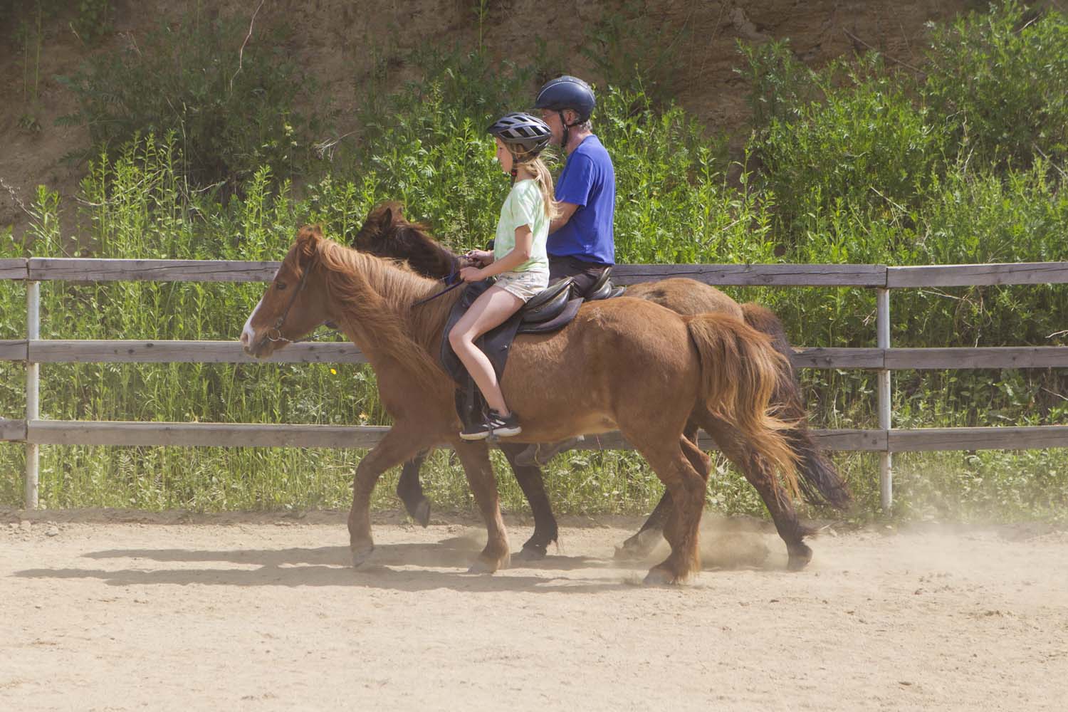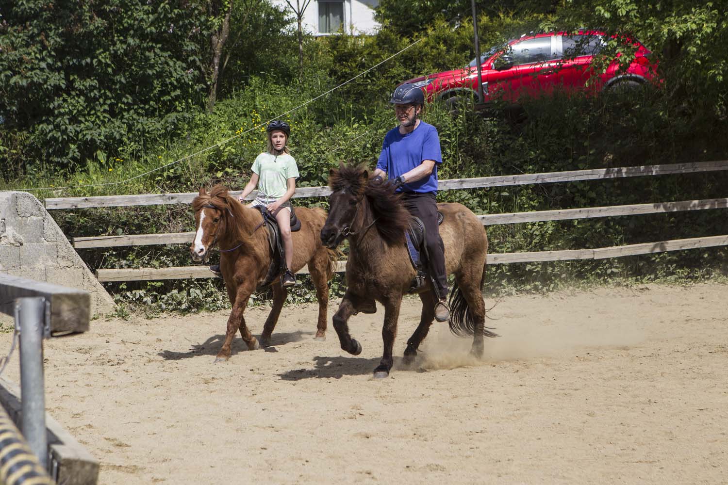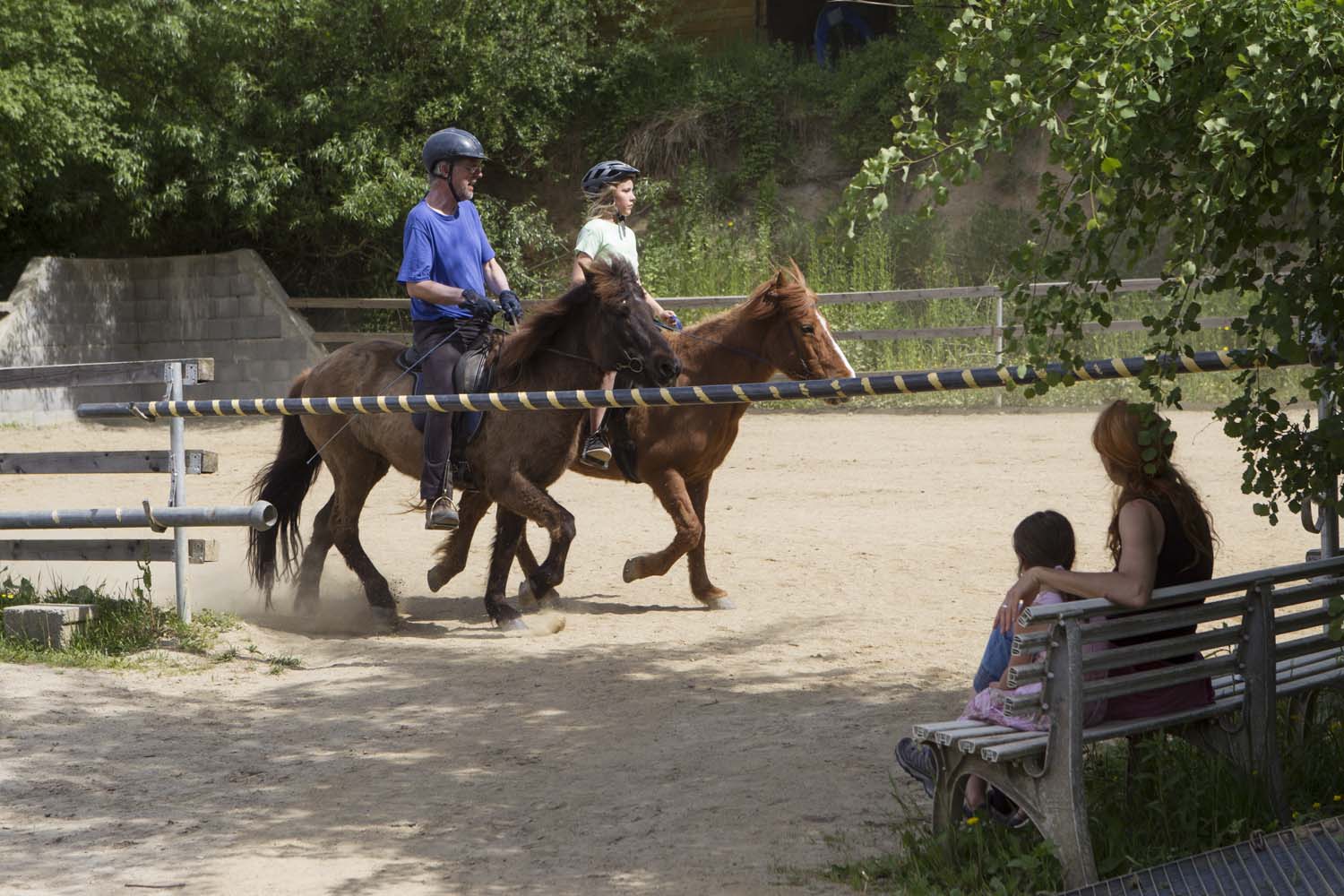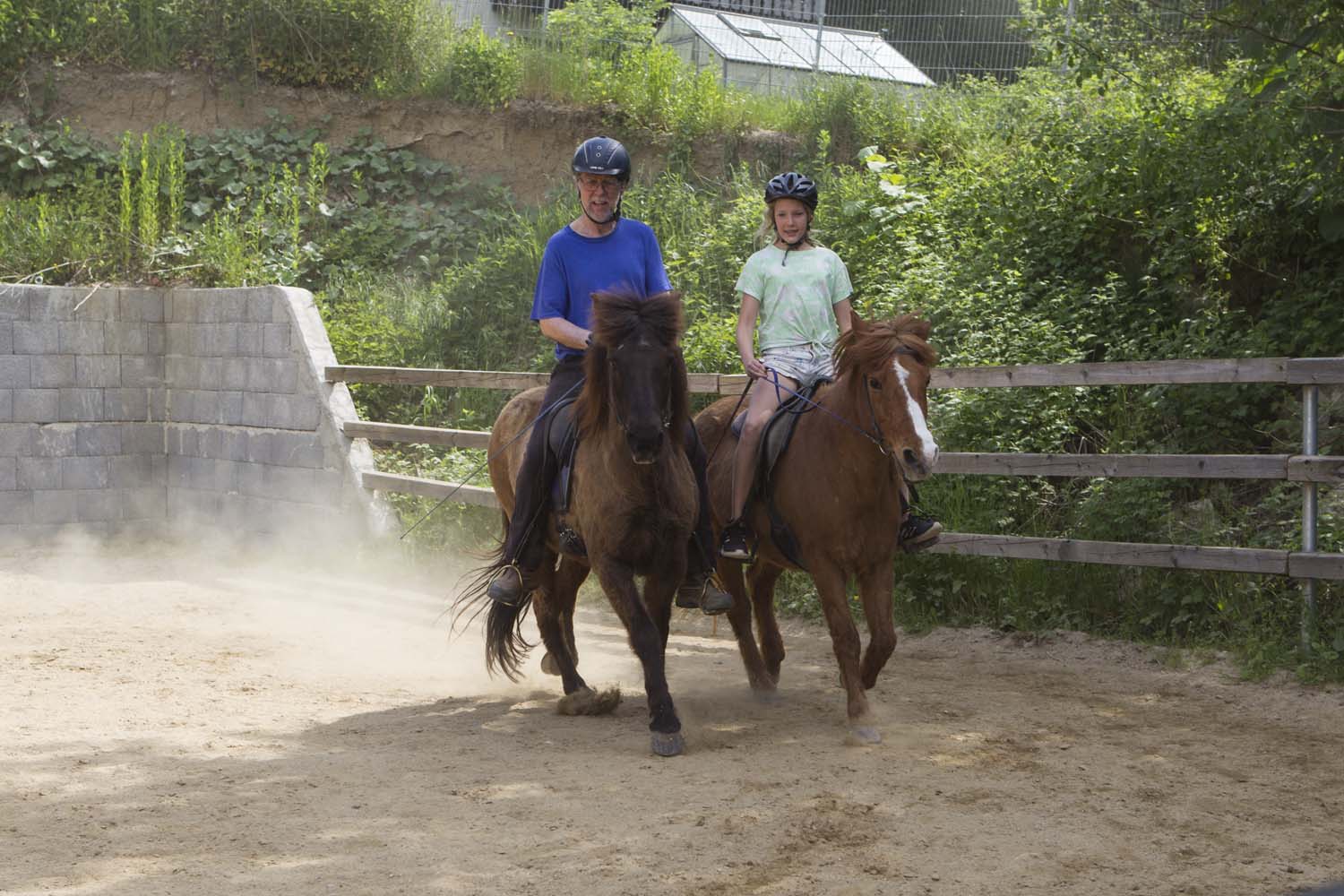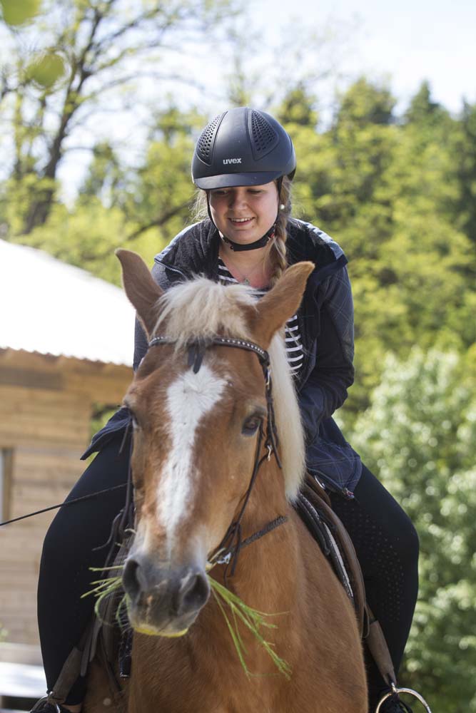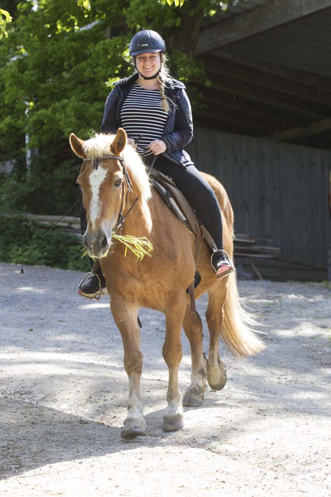 Nicko kommt mit seiner Natalie von einem Ausritt zurück. Evita präsentiert sich, wie so oft, als "Barbiepferd".