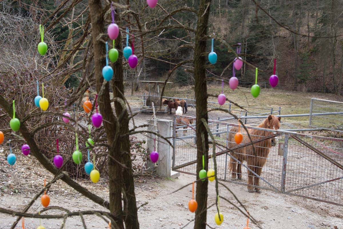 Innerhalb einer Woche, bis zum Palmsonntag, änderte sich das Wetter schlagartig und es wurde schon teilweise eher sommerlich warm. Die Natur freute sich und es grünt und blüht am Glockenhof immer mehr. Bei den Isländern war wieder Knabberspaß angesagt. Die Pferde fanden es teilweise zu warm und dösten vor sich hin. Laurent verpasste sich ausgiebig eine Bürstenmassage. Am Reitplatz und auf den Wegen am Stall waren etliche Reiter/innen unterwegs und auch Jo´s Hühner. Ostern naht!
