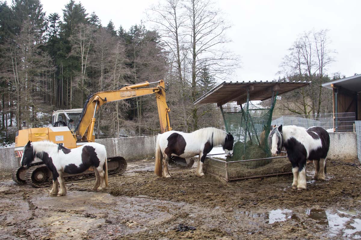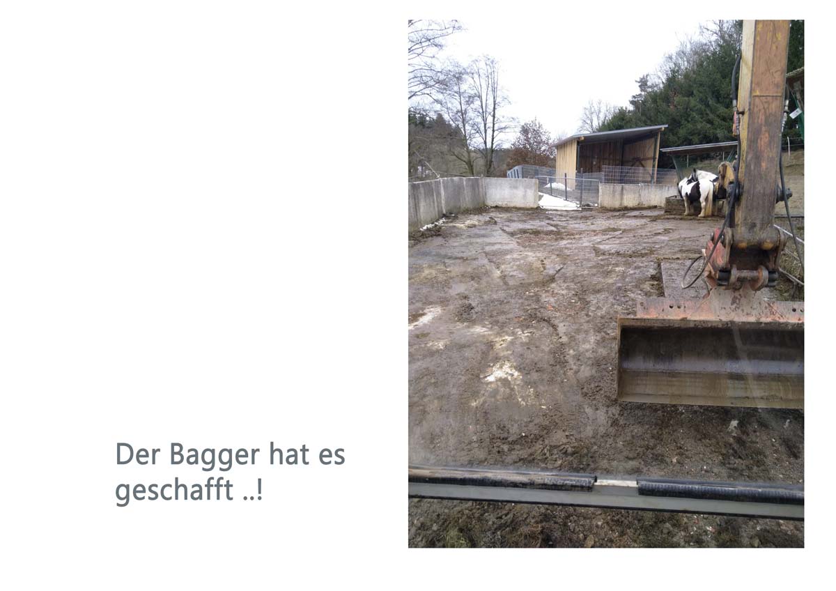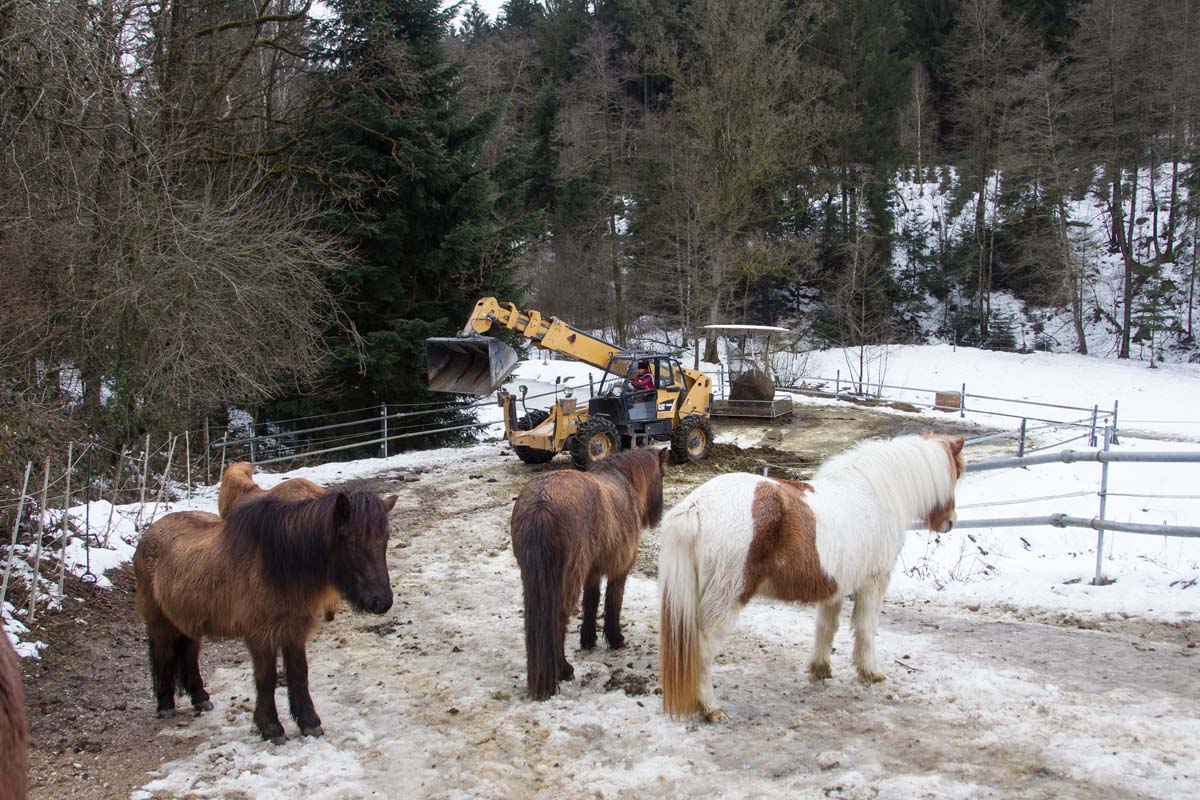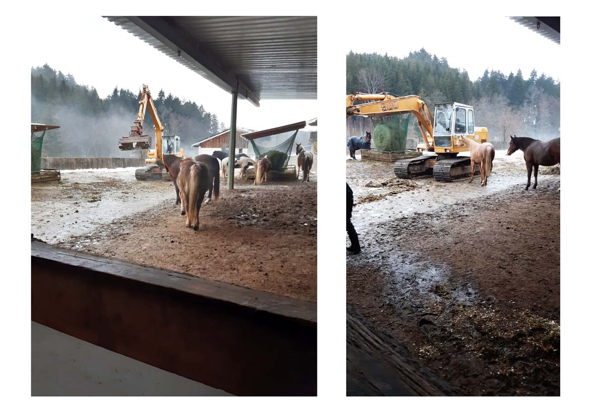 Aber das ist am Glockenhof überhaupt kein Problem, denn Stallbetreiber Hannes hat dafür die nötigen Fahrzeuge! Es kamen der Teleskoper und ein Bagger zum Einsatz.