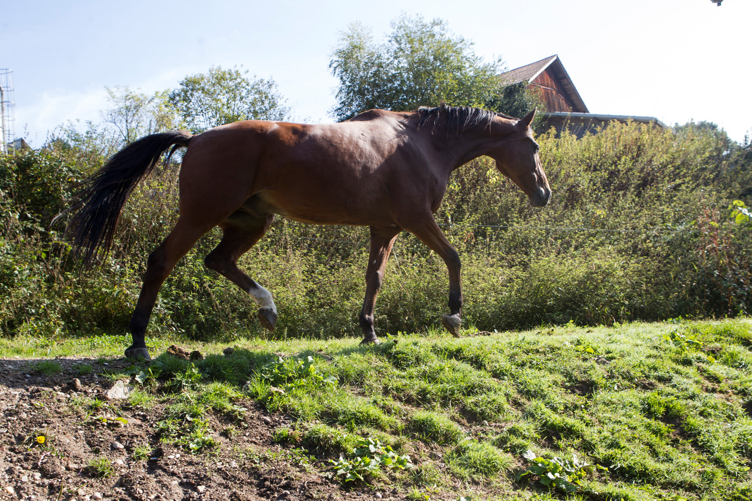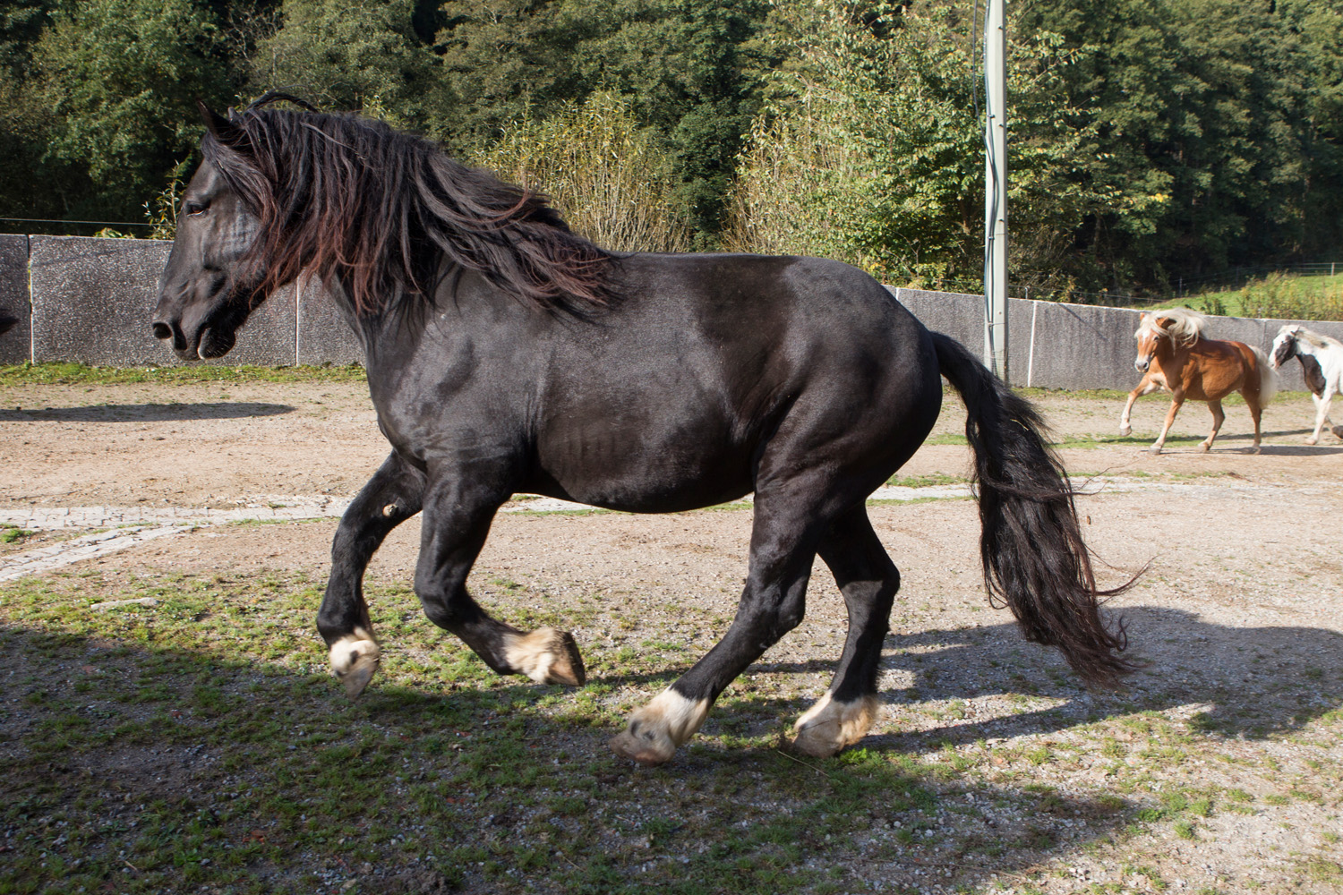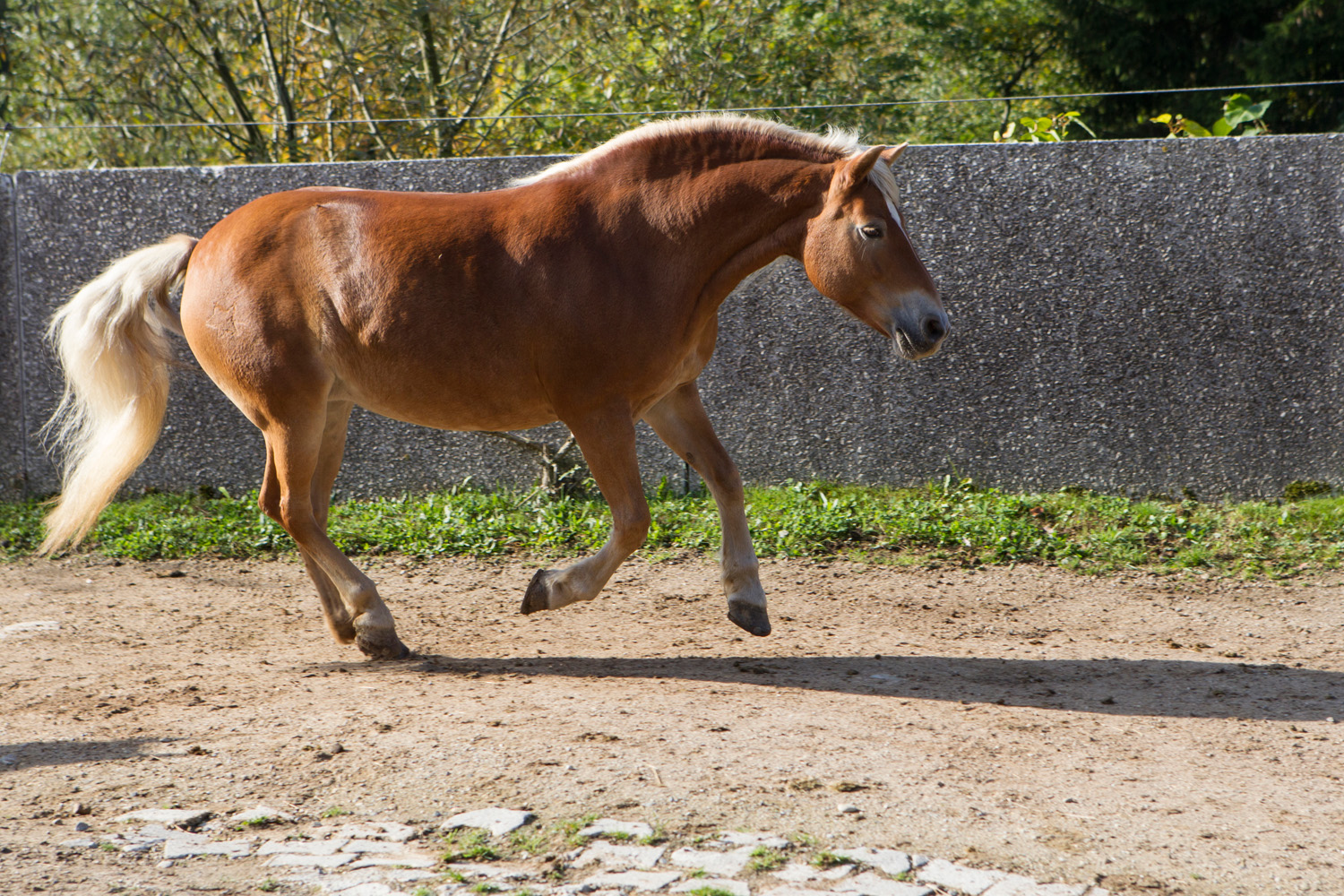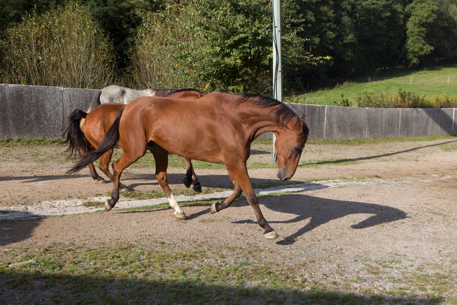 Bei herrlichem Herbstwetter durfte Navy, ein Zweibrücker Warmblut, am 2. Oktober seinen neuen Stall und seine neue Herde kennenlernen. Er lebt nun in der "großen Herde", der "Heugruppe".