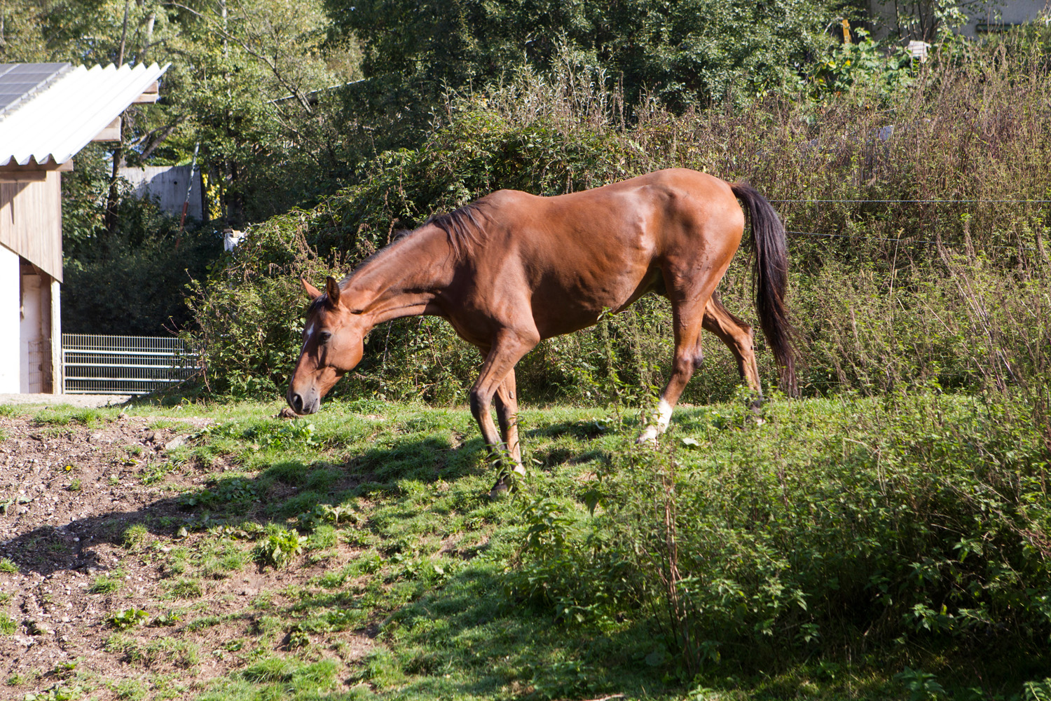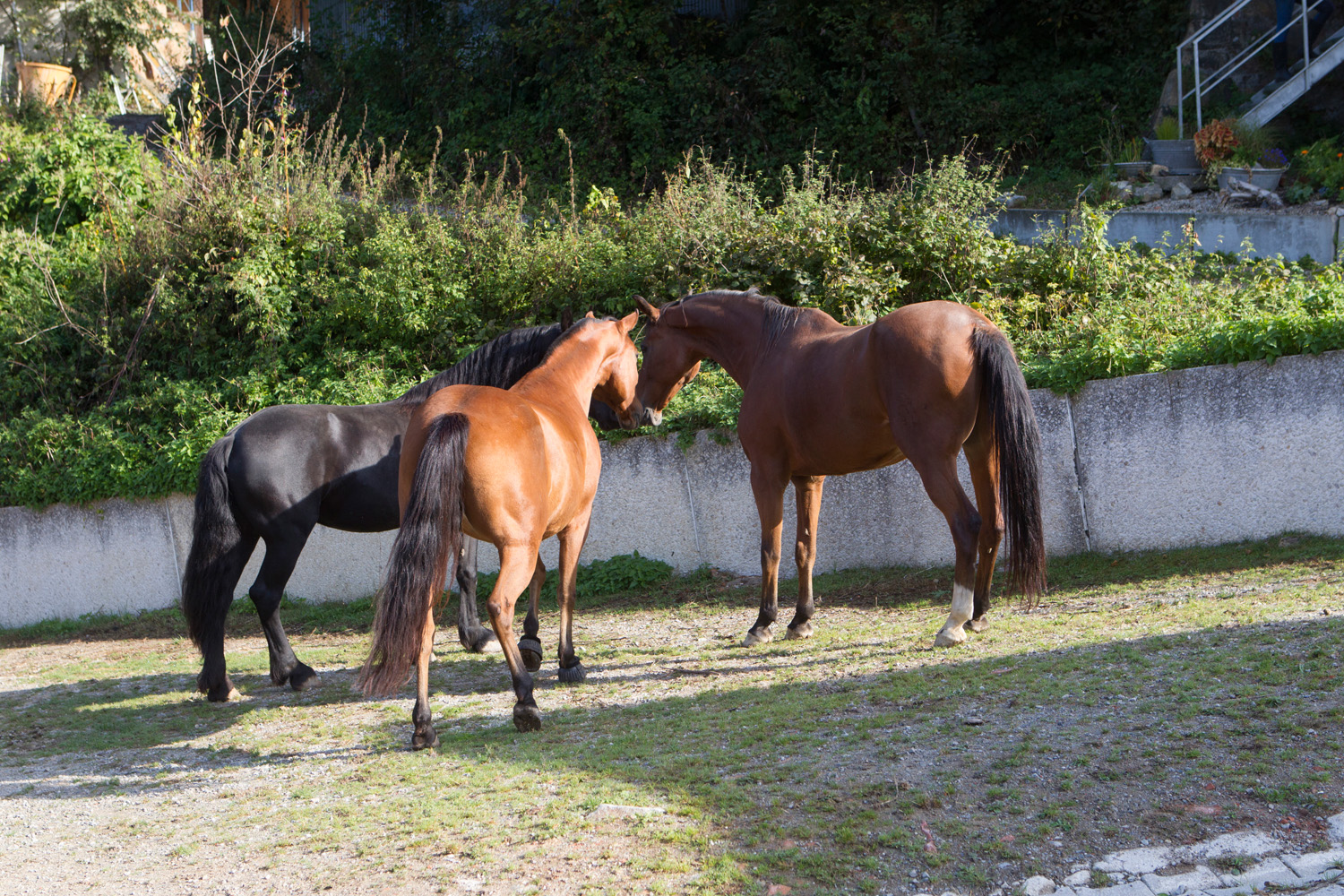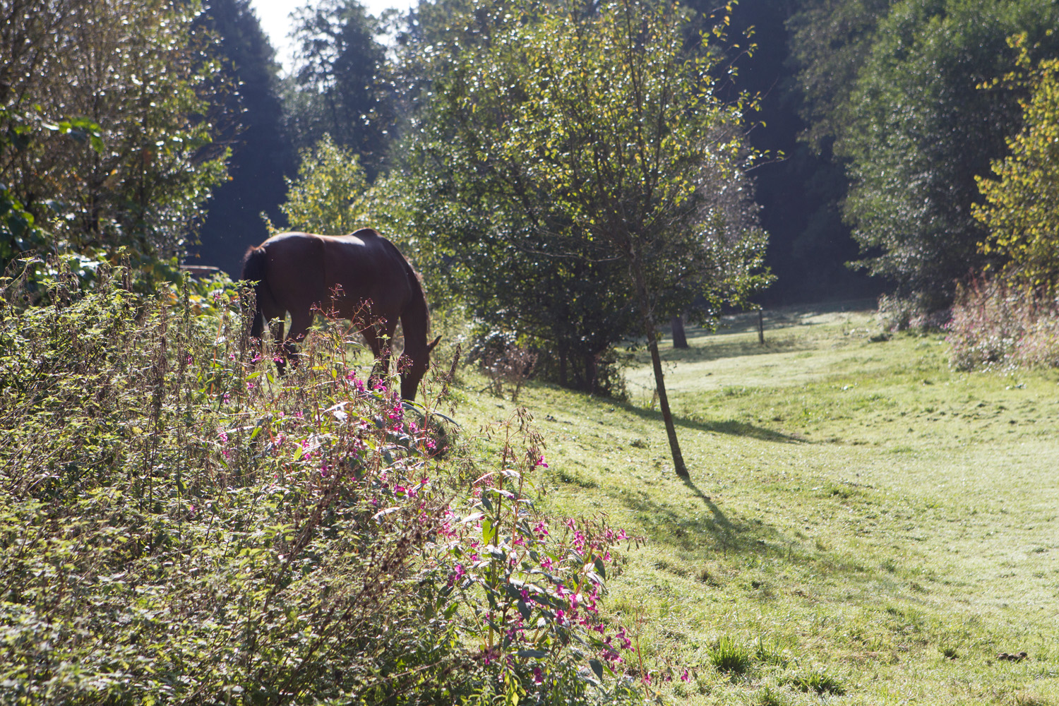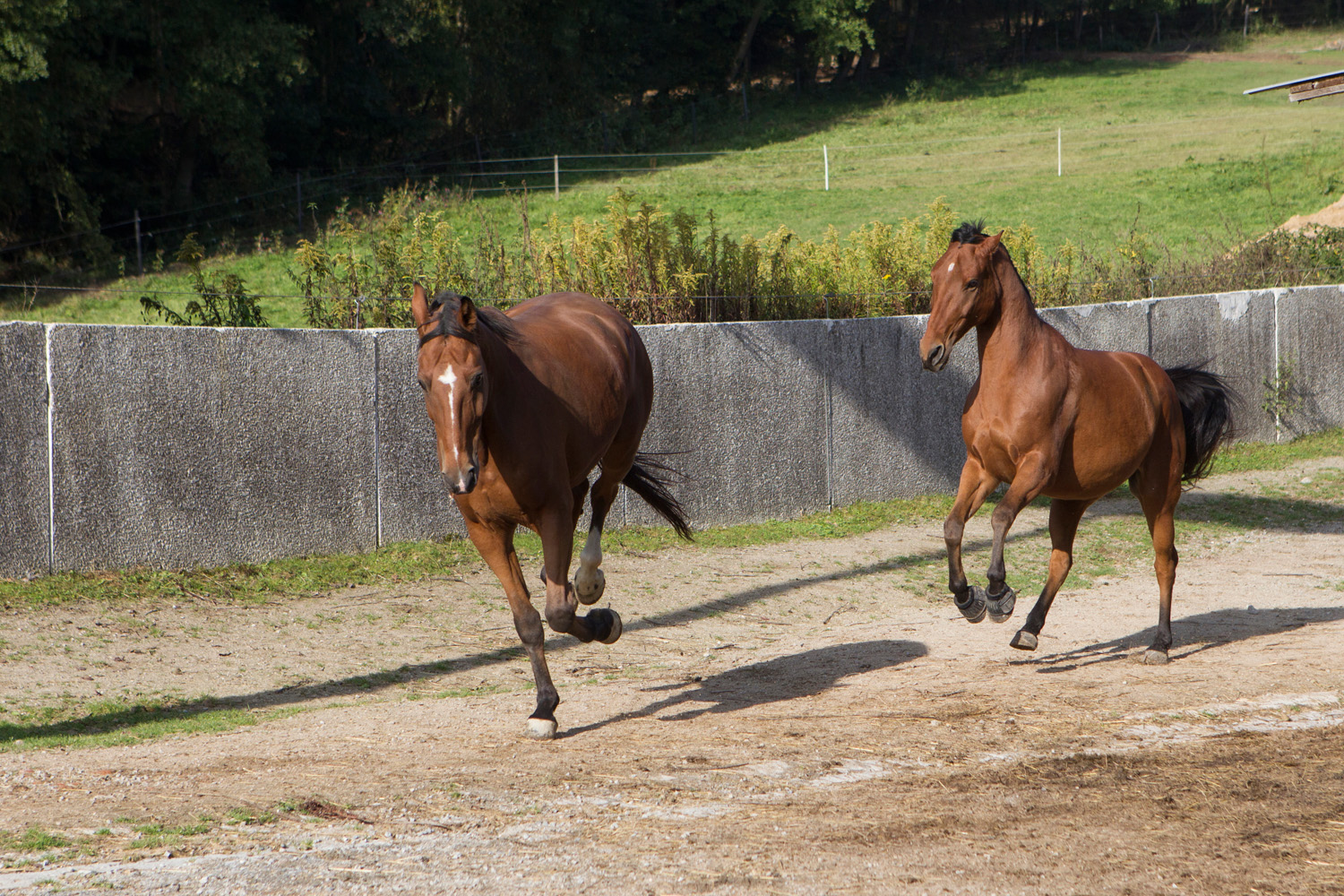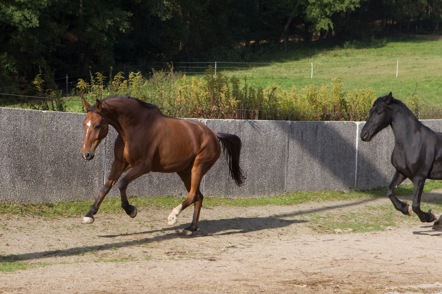 Bei herrlichem Herbstwetter durfte Navy, ein Zweibrücker Warmblut, am 2. Oktober seinen neuen Stall und seine neue Herde kennenlernen. Er lebt nun in der "großen Herde", der "Heugruppe".