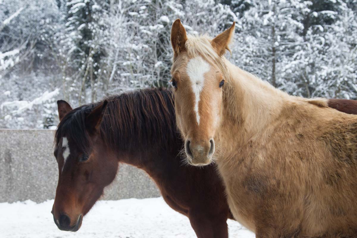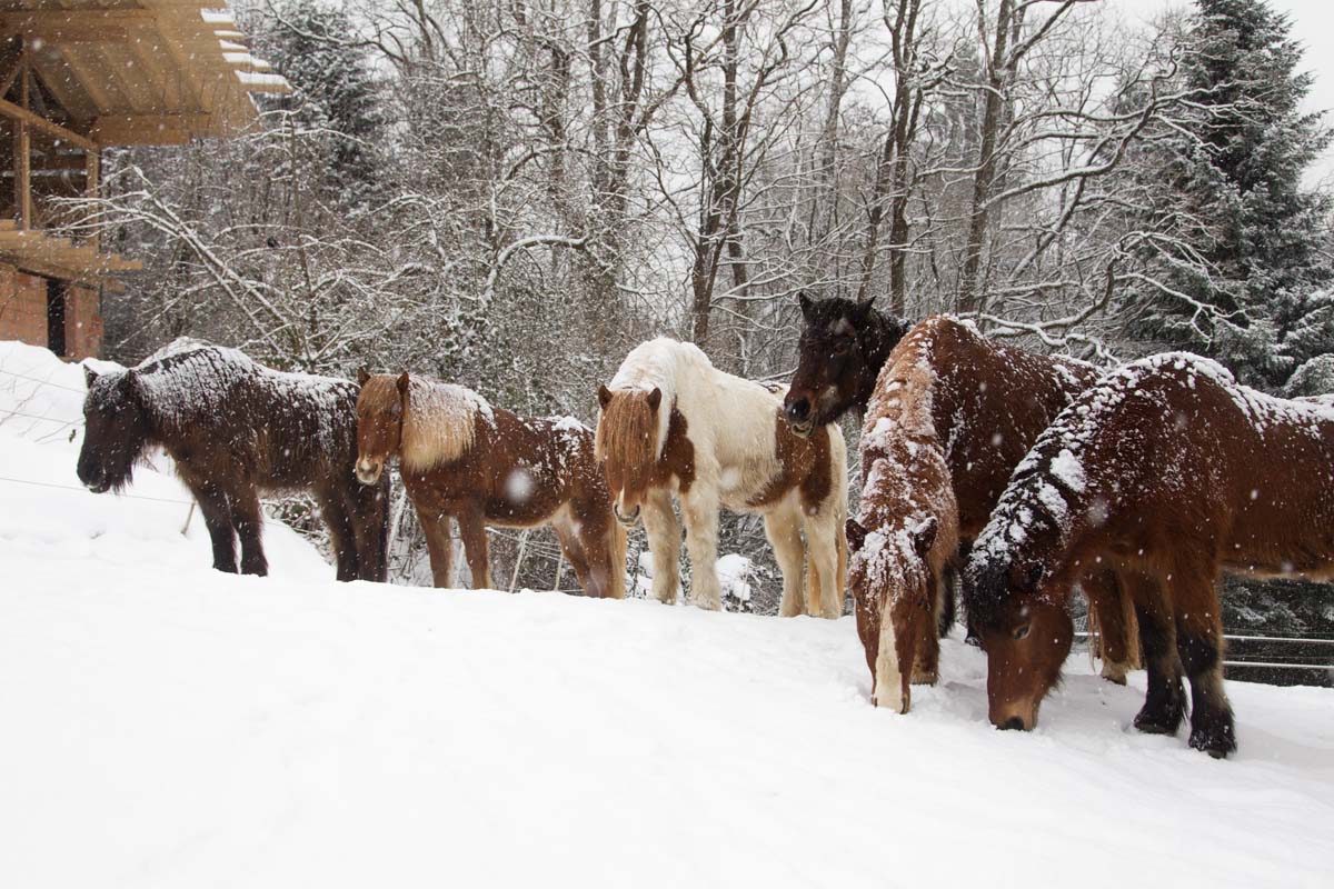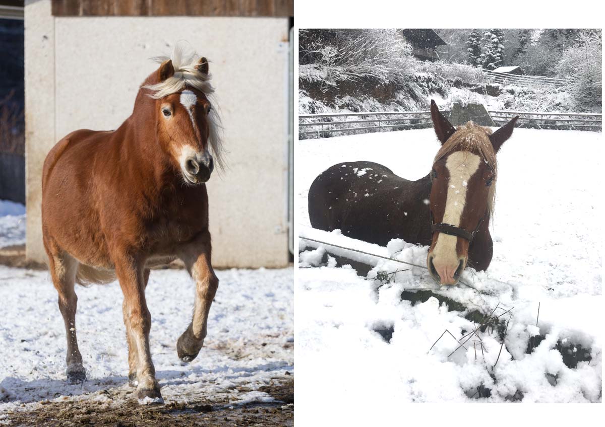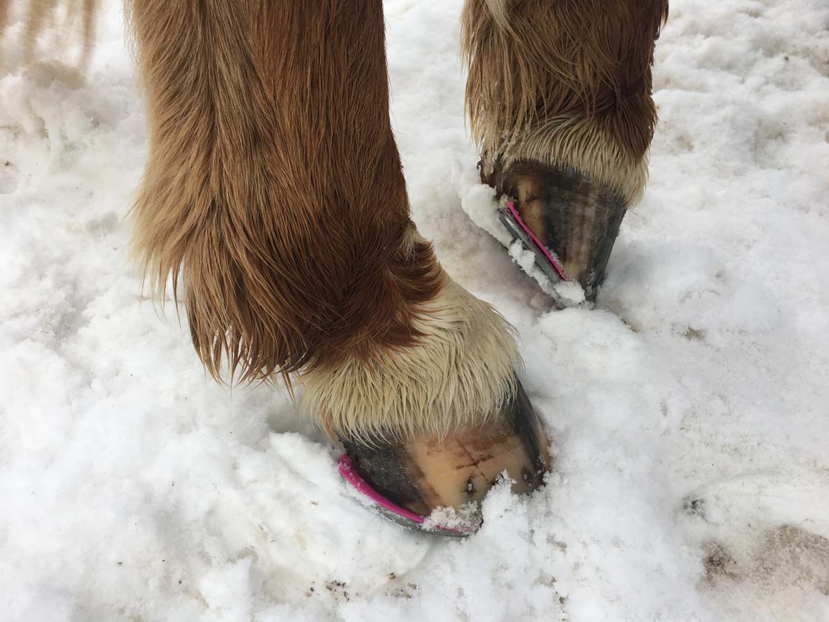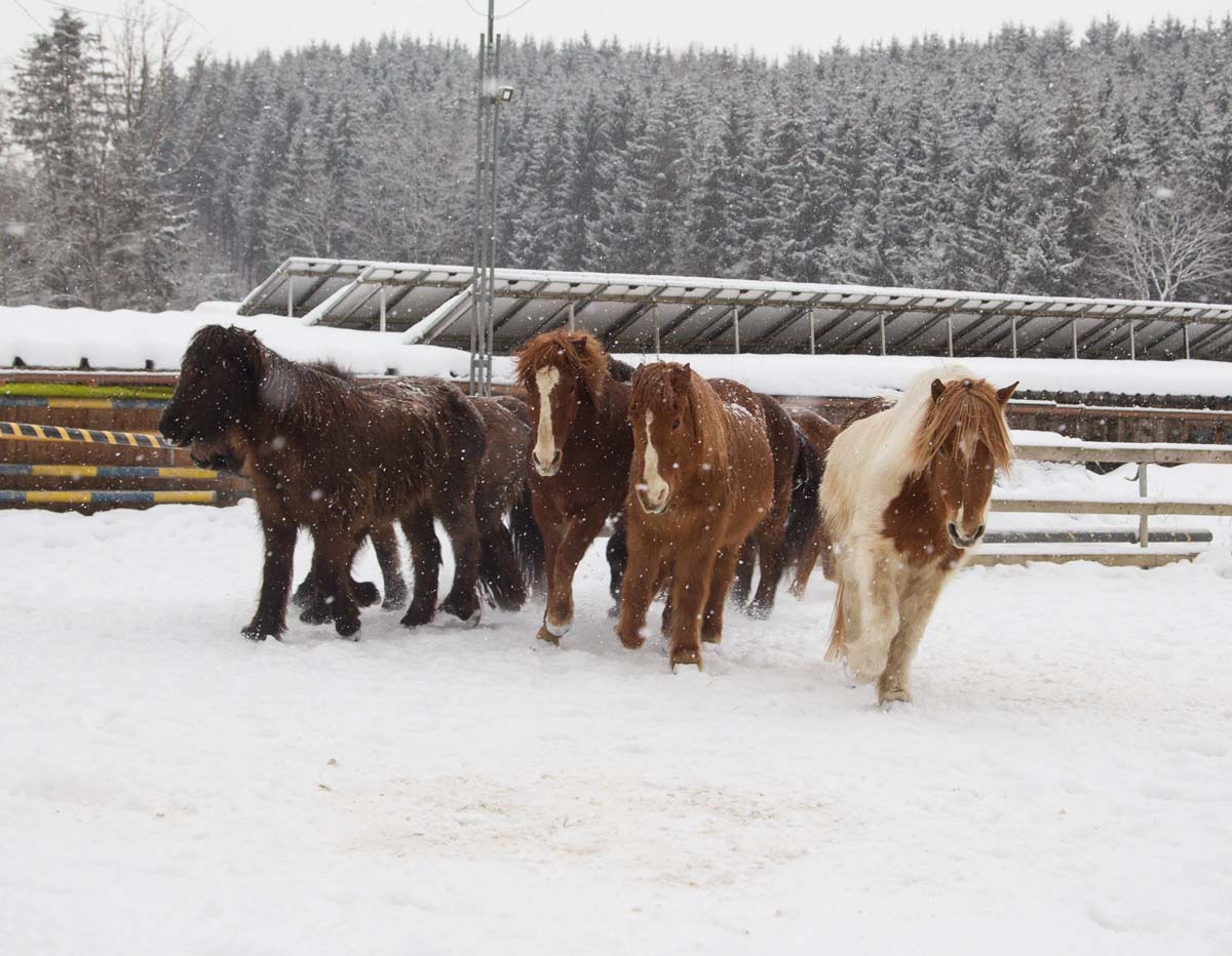 Der Reitplatz konnte gut genutzt werden. Als noch weniger Schnee lag mit einem Geschicklichkeitsparcours, ansonsten zum Freilaufen oder auch zum Reiten. Bei den Isländern waren pinkfarbene Grips angesagt, sehr chic!