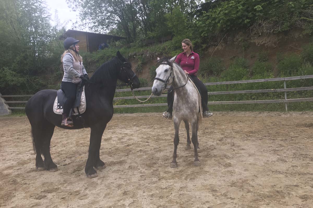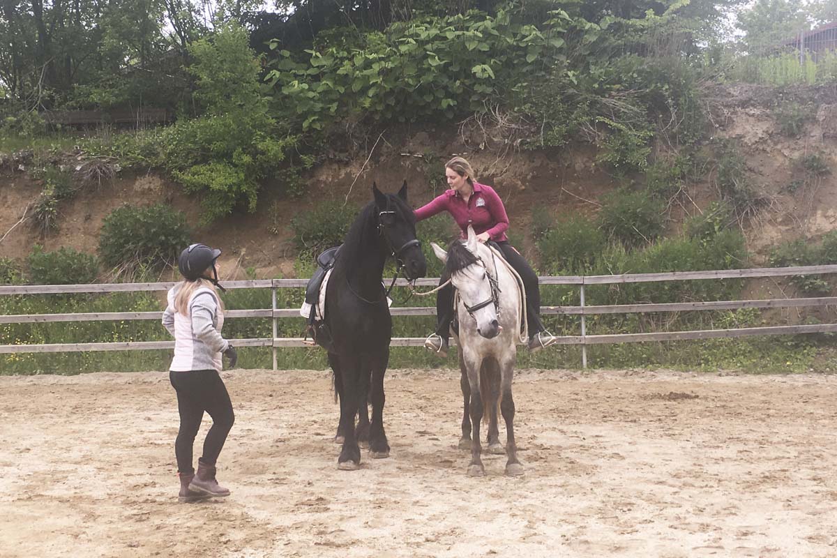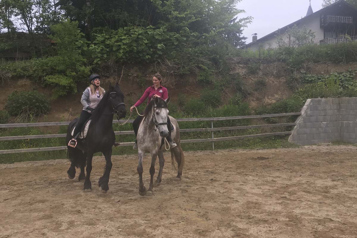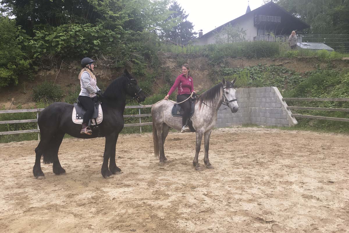 Gemeinsam sind wir stark fanden auch Birgit und Jule und so übten sie mit ihren Pferden zusammen am Reitplatz. Armani gab der noch unerfahreneren Thora Sicherheit und "zeigte, wo es lang geht." Tolle Aktion, bei der es nur Gewinner gab!