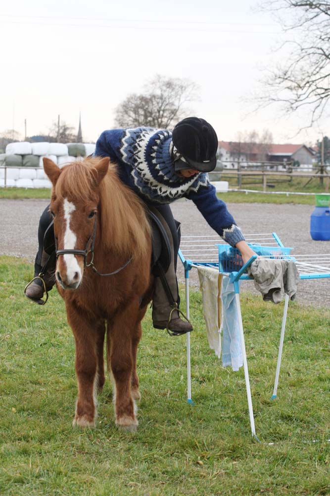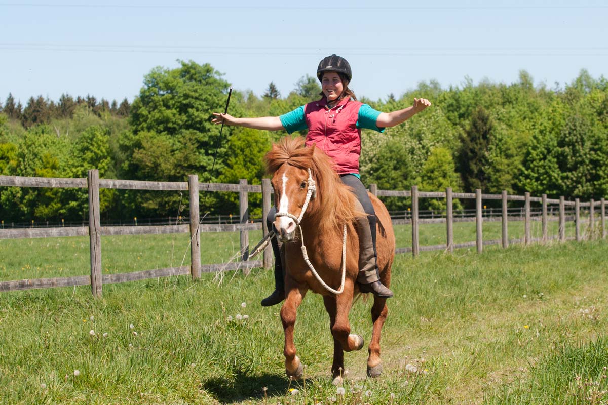 Am liebsten macht sie irgendwas ungewöhnliches, wie Schlittenfahren, Geschicklichkeit und ohne Trense reiten.