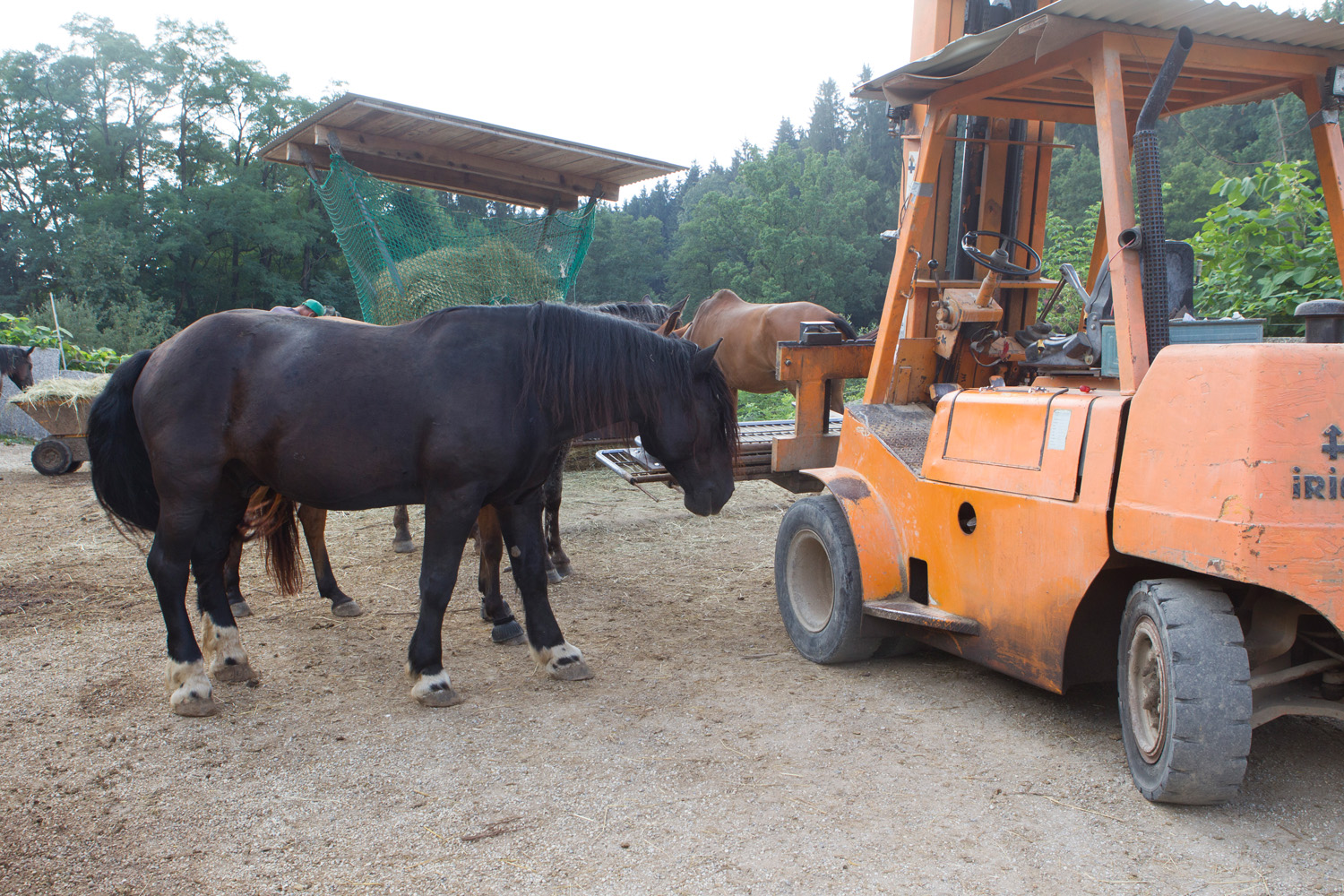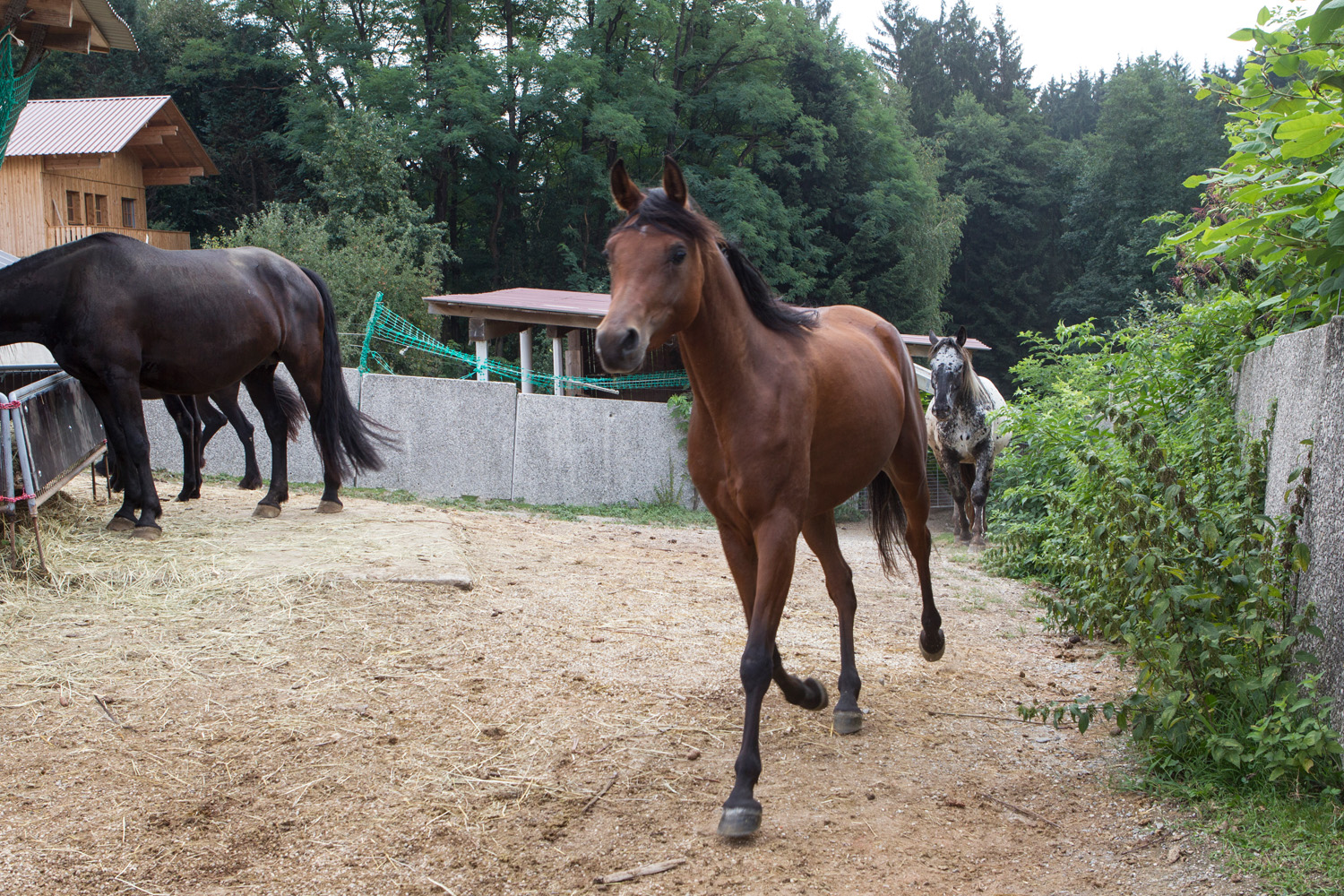 ... und zwar vom 26. August. Vor allem in der "Heuherde" war was los! Bei zwei Heuraufen wurden neue Gitter angebracht und außerdem konnte die Araberstute Mydream begrüßt werden.