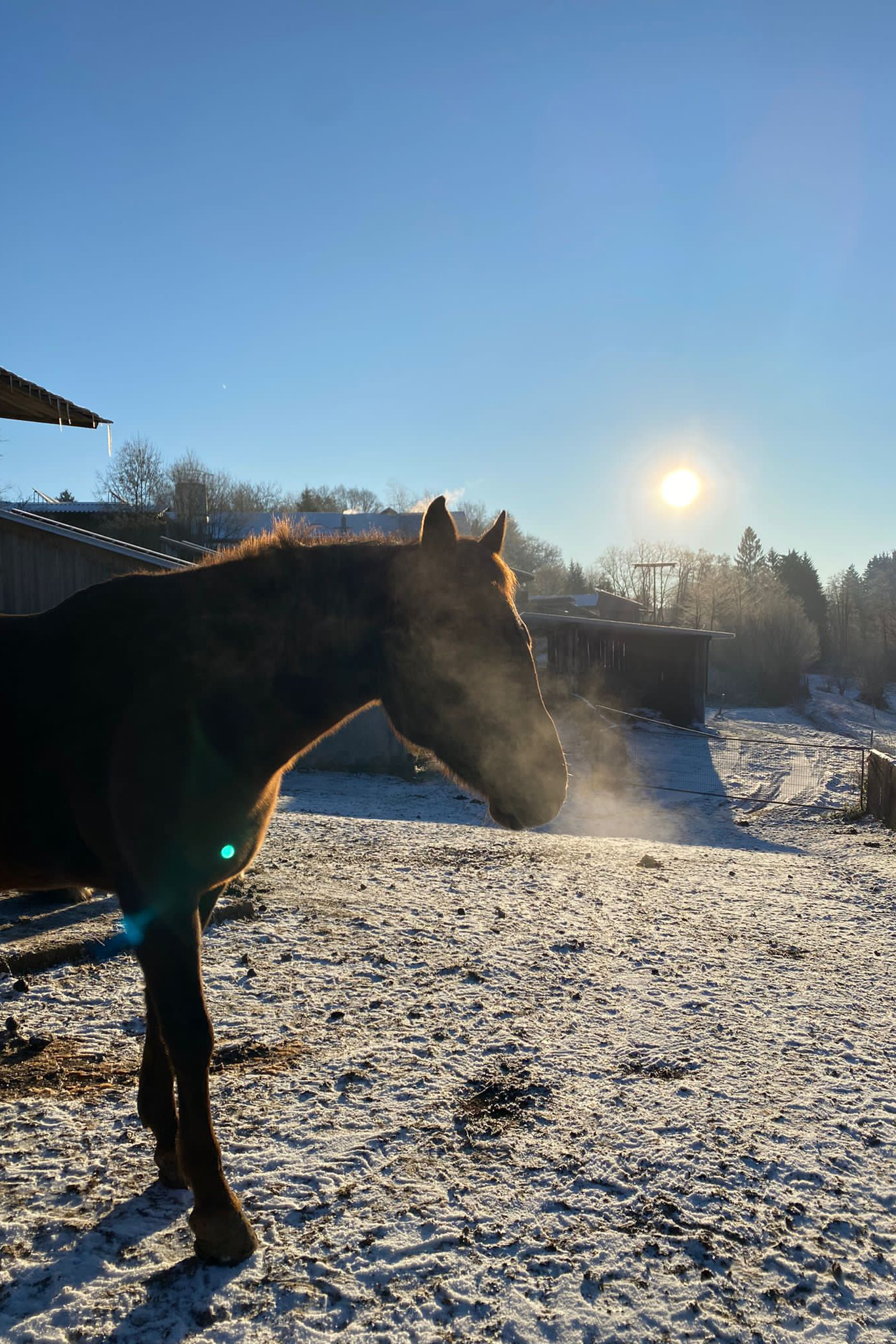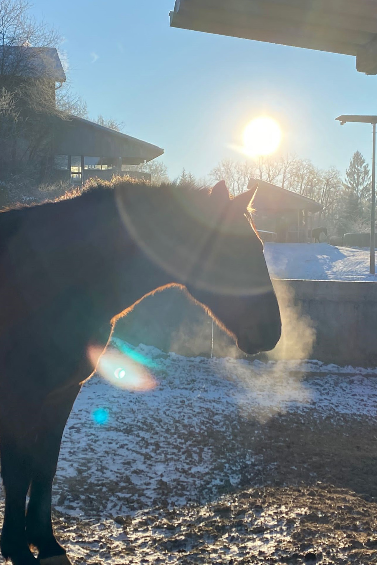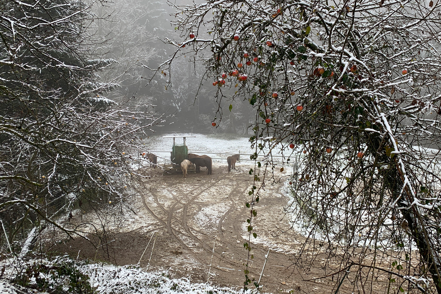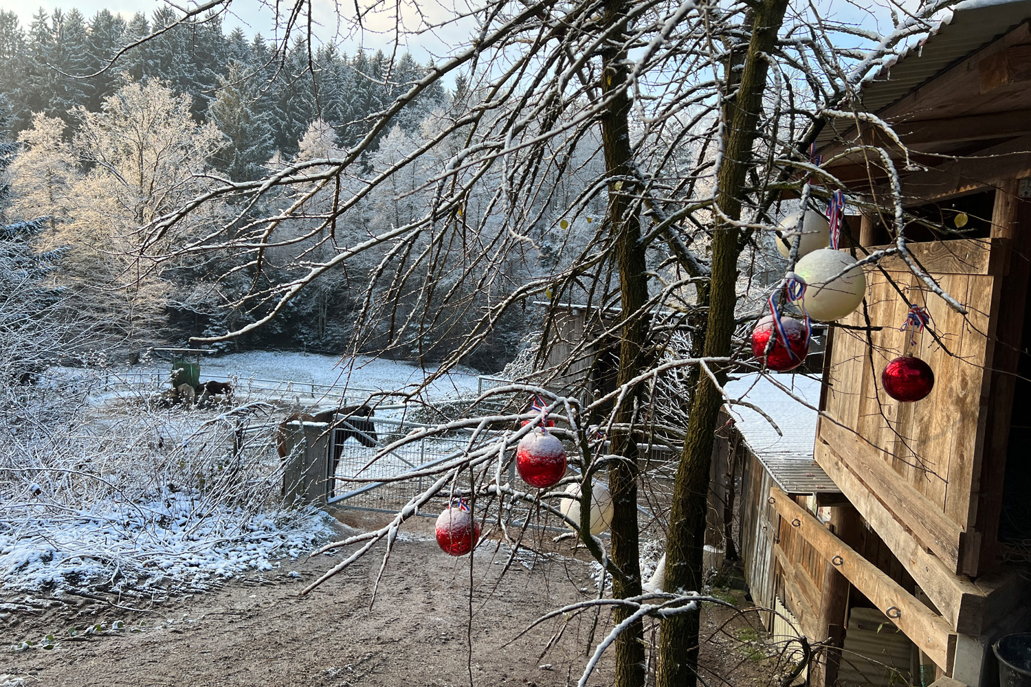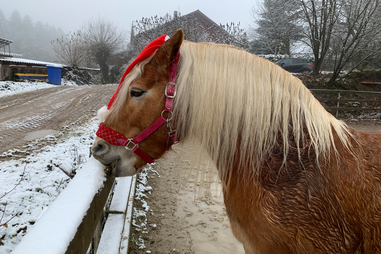 Richtige "Weihnachtsstimmung" zauberte der ausgehende Herbst Mitte Dezember mit zapfigen Minusgraden. angeblich so kalt, wie schon 12 Jahre nicht mehr! Mal sehen, wie es weiter geht! Andrea und ihre Evita bezauberten am Nikolaustag. (s. a. Kalenderblatt Dezember).