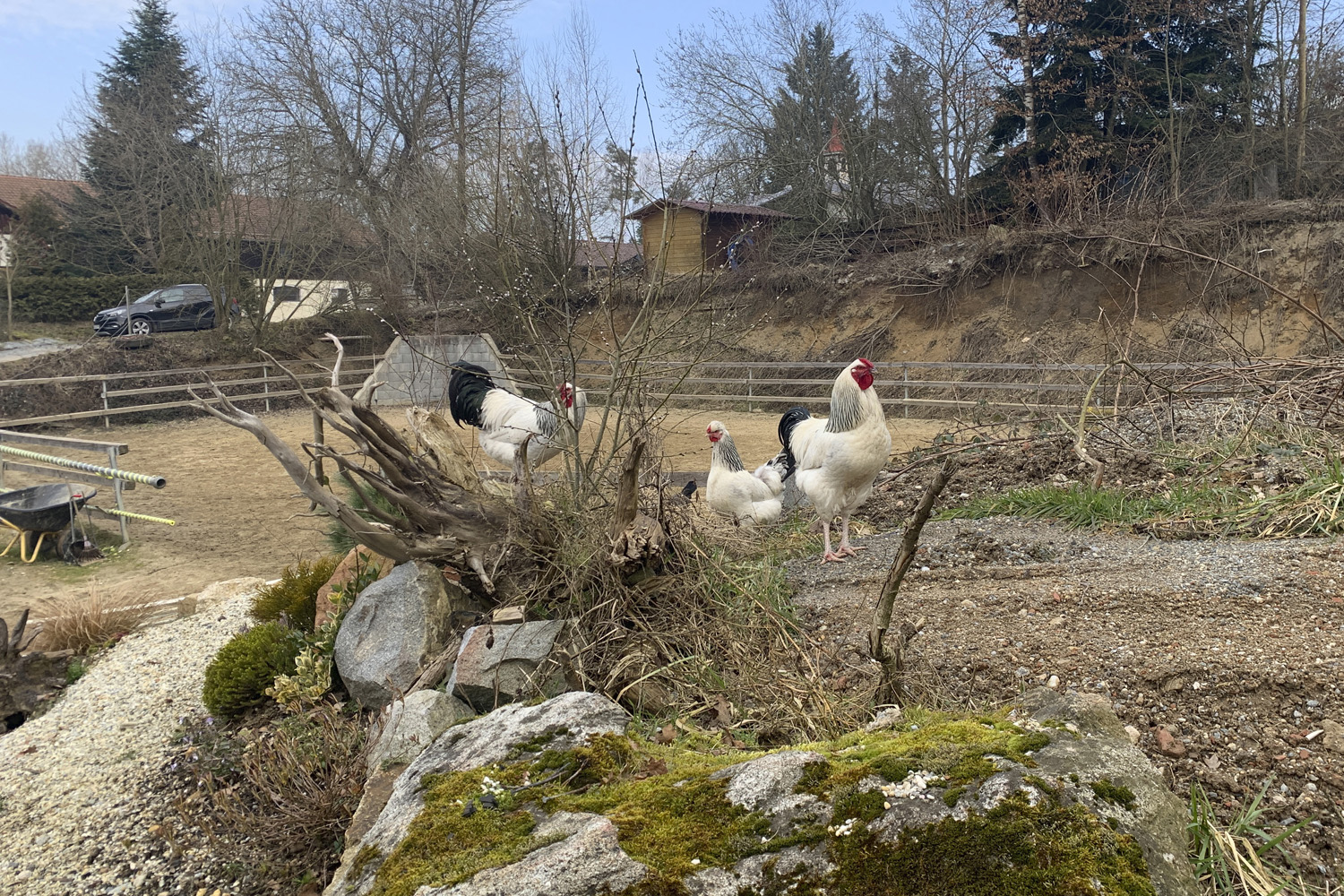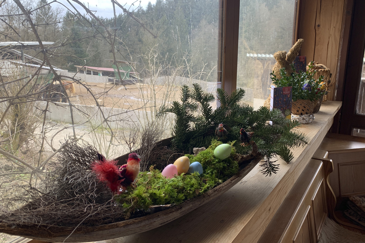 Der Reitplatz wurde gut genutzt oder es ging zum Ausreiten. Die Pferde genossen die Sonnenwärme und auch der Fellwechsel war bei einigen schon richtig im Gange. Und natürlich geht es langsam, aber sicher Ostern entgegen!!