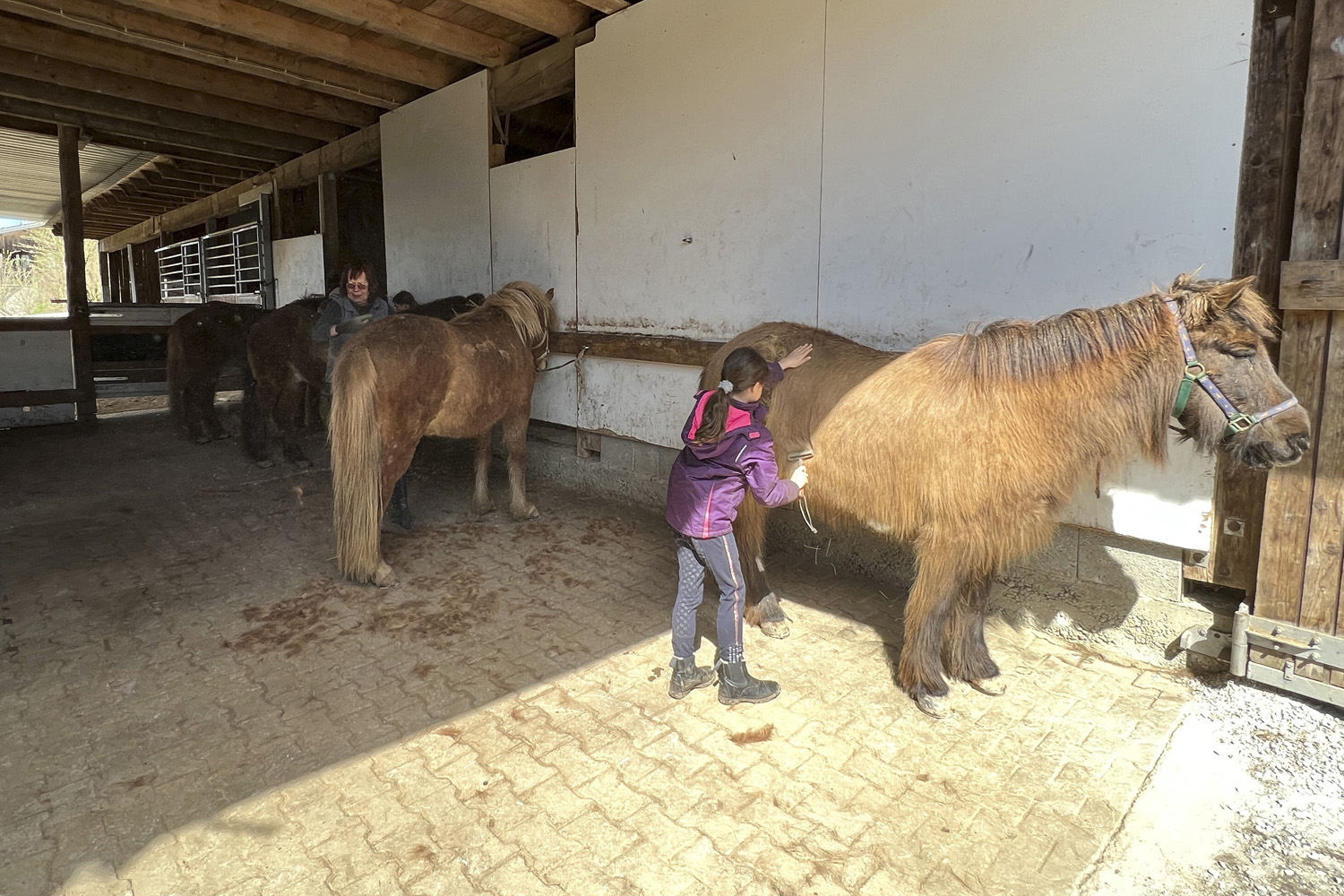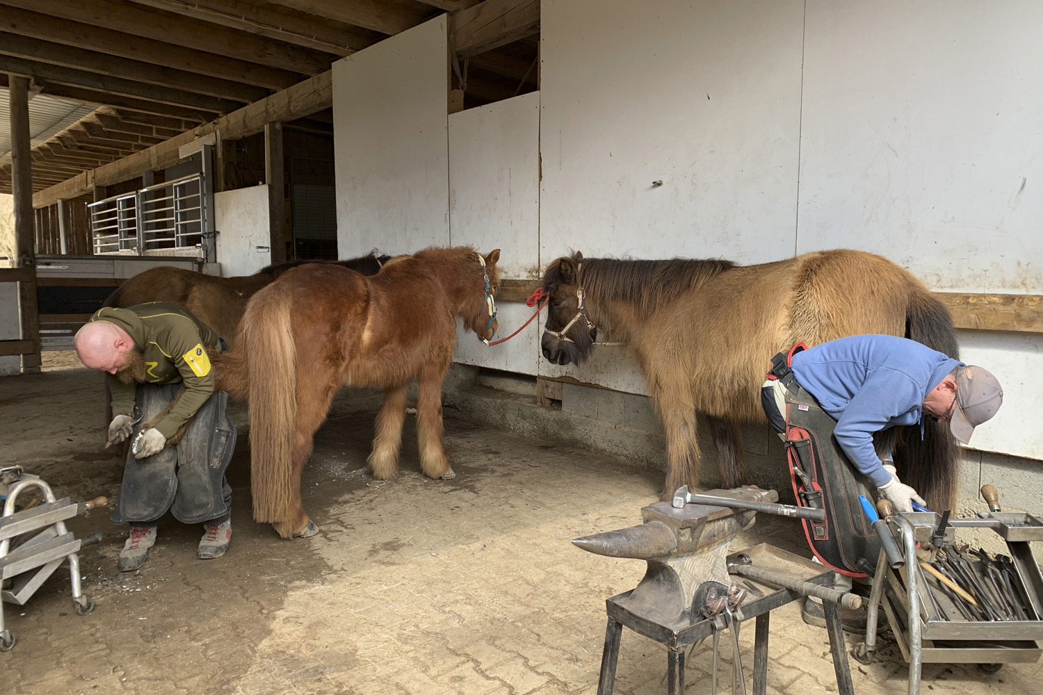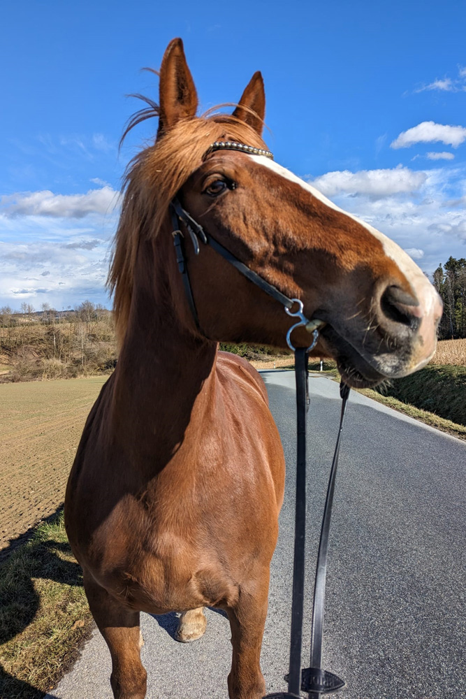 Die Pferde stehen mitten im Fellwechsel. Die Lieblingsspeise ist zur Zeit ganz klar: GRAS! Die Hufschmiede wechseln den Winterbeschlag auf "Sommer" und Fanta