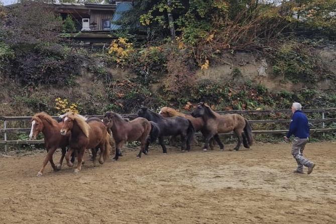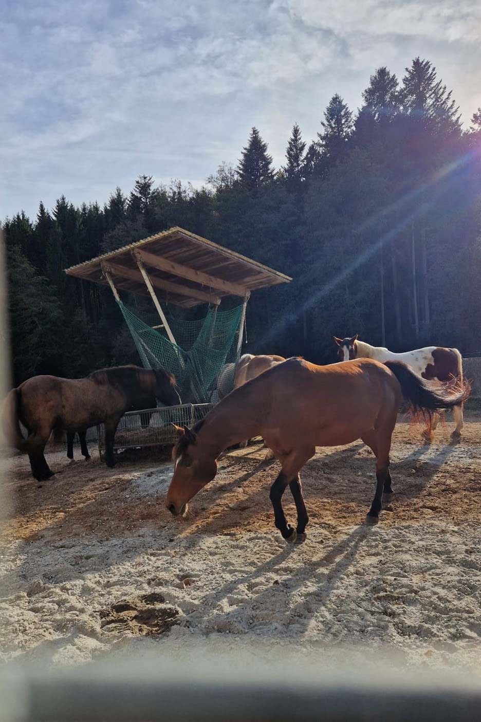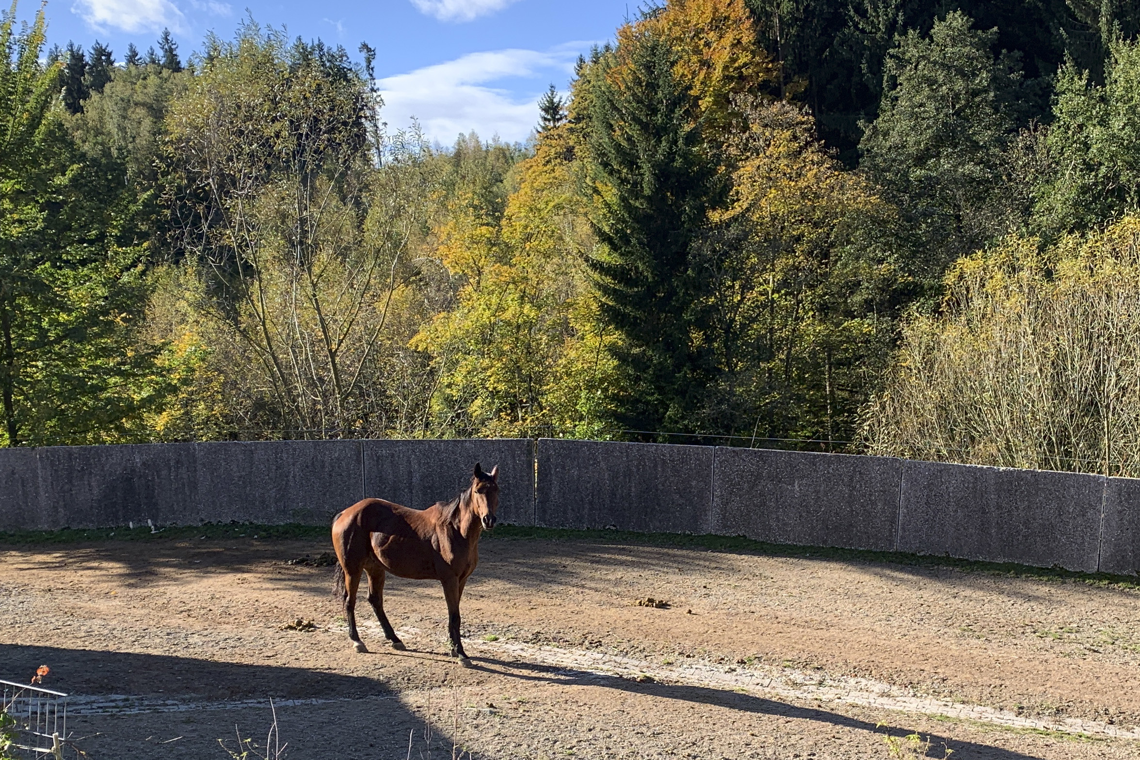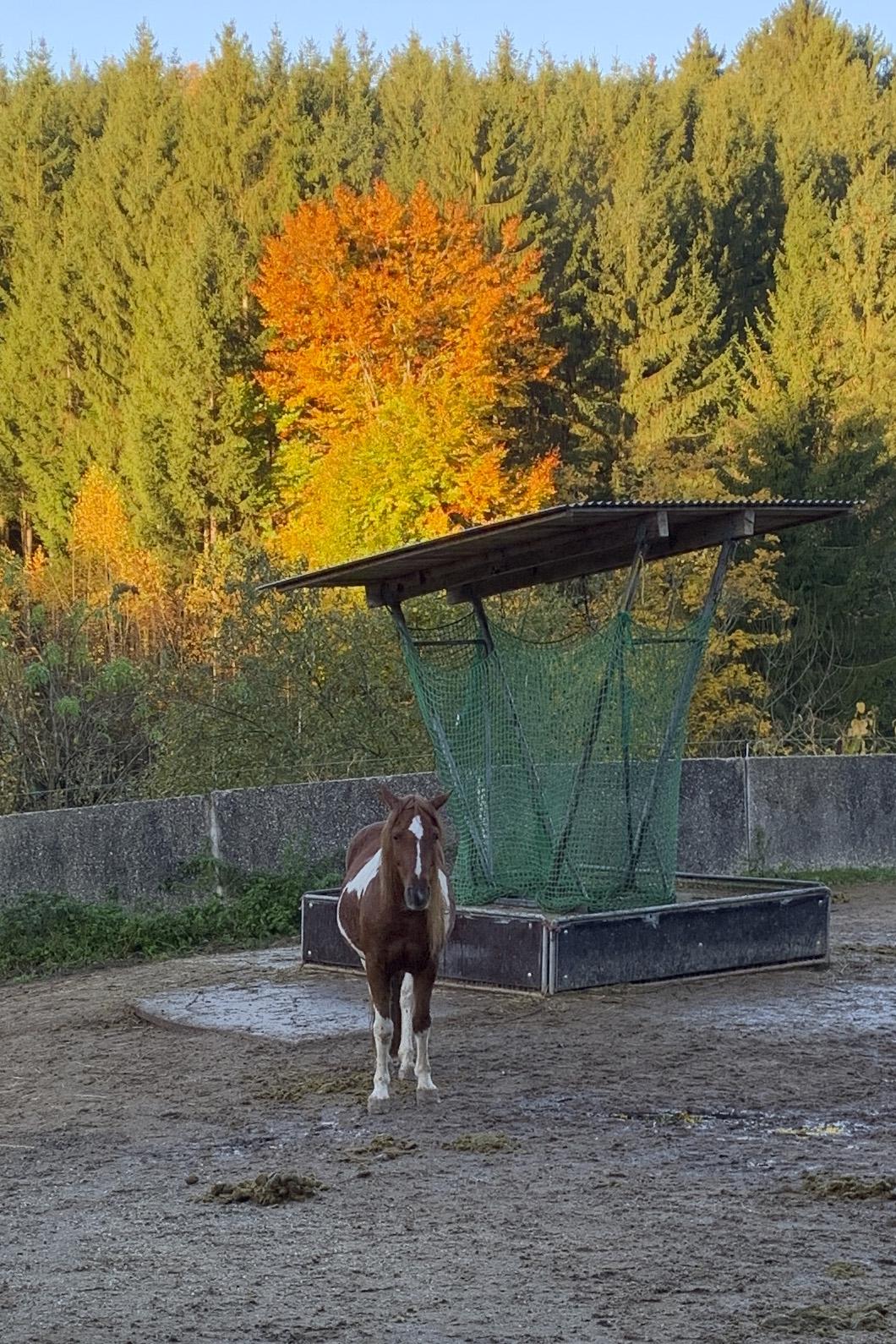 Zum Ausklang des Oktobers gab es von der Natur längst gebrauchte Regengüsse, nun auch niedrigere Temperaturen, aber auch noch viel Sonnenschein. Das Wetter lockte zu Ausritten. Die bunt gefärbten Blätter verzauberten wieder eins ums anderer Mal. Frischer Sand lud auch zum Wälzen im Paddock ein, siehe Teil 2!