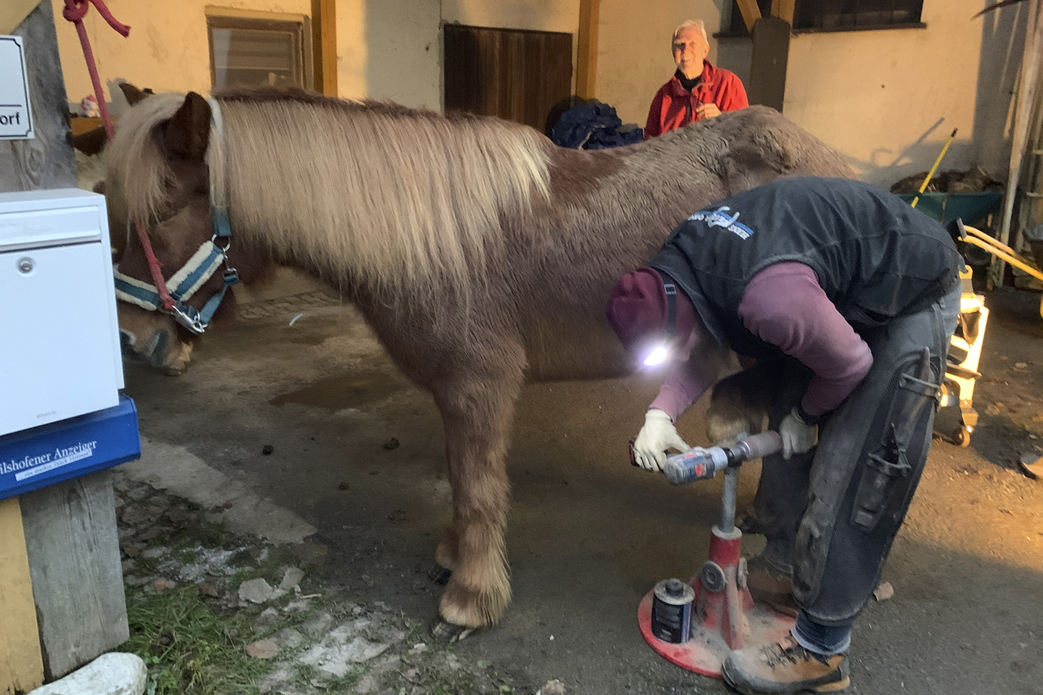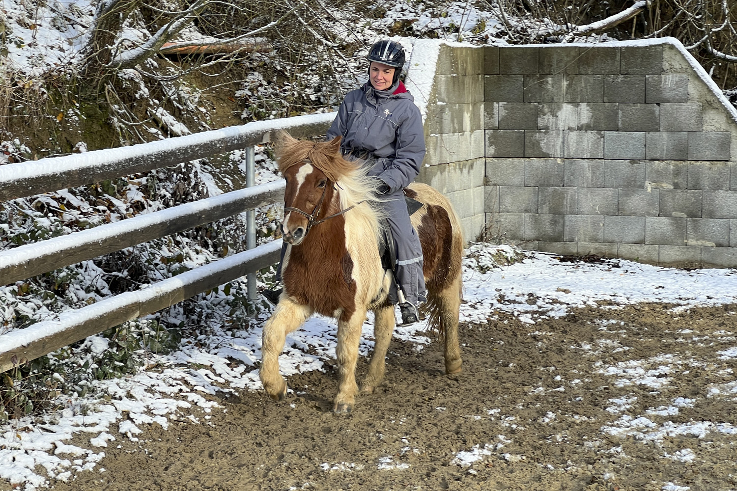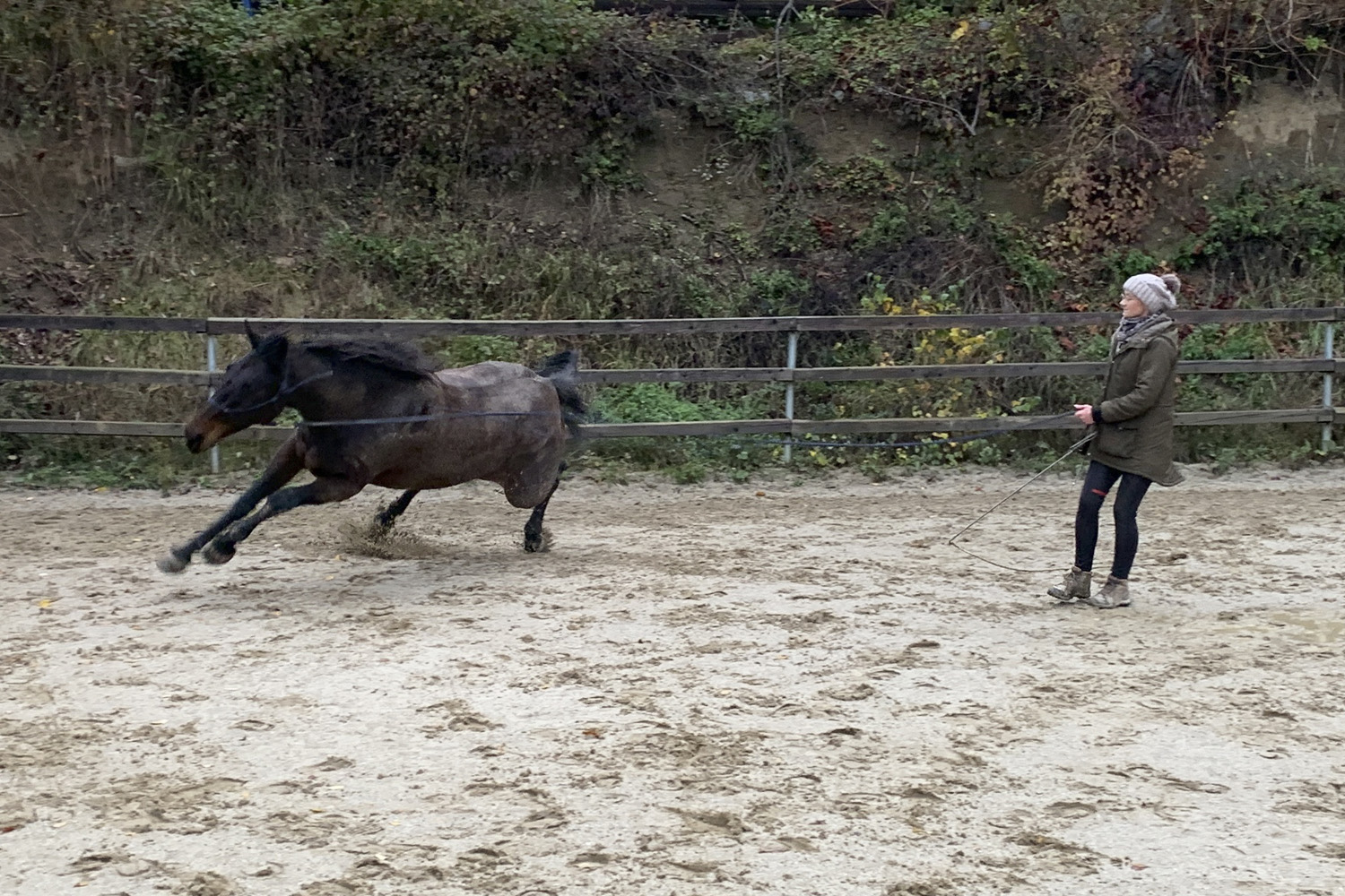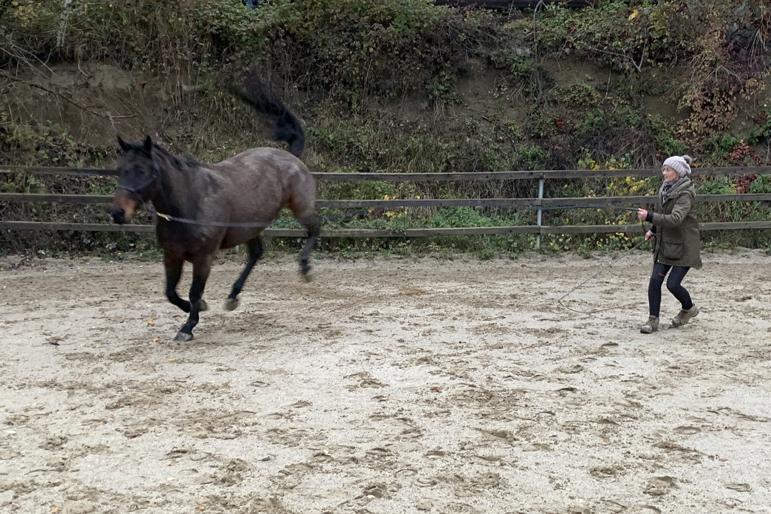 Der November war anfangs untypisch warm, dann wurde er ziemlich nass und gegen Ende winterlich. Es war also allerhand geboten. Am Stall war bei einigen Pferden der Zahnarzt bzw. der Hufschmied. Chef Hannes und sein Mitarbeiter Rafal nutzten die angenehmen Temperaturen um am zukünftigen Platz der Reithalle zu arbeiten. (Fotos links) Es gab diverse Reitvergnügen am Reitplatz, natürlich mehr, als hier zu sehen, und Ausritte. (Fotos unten)