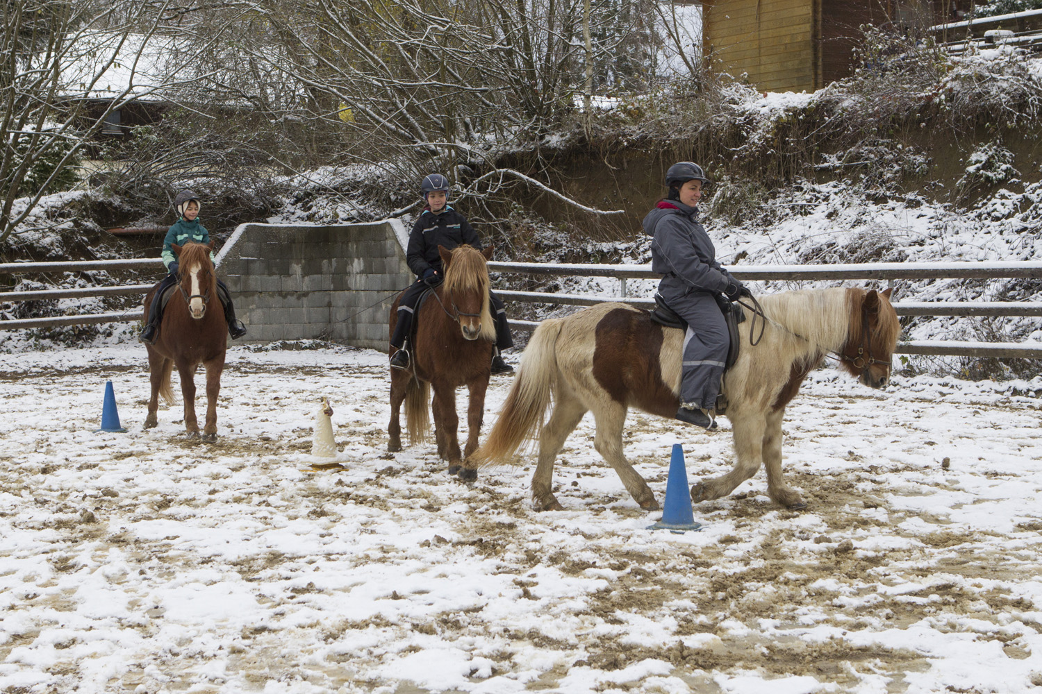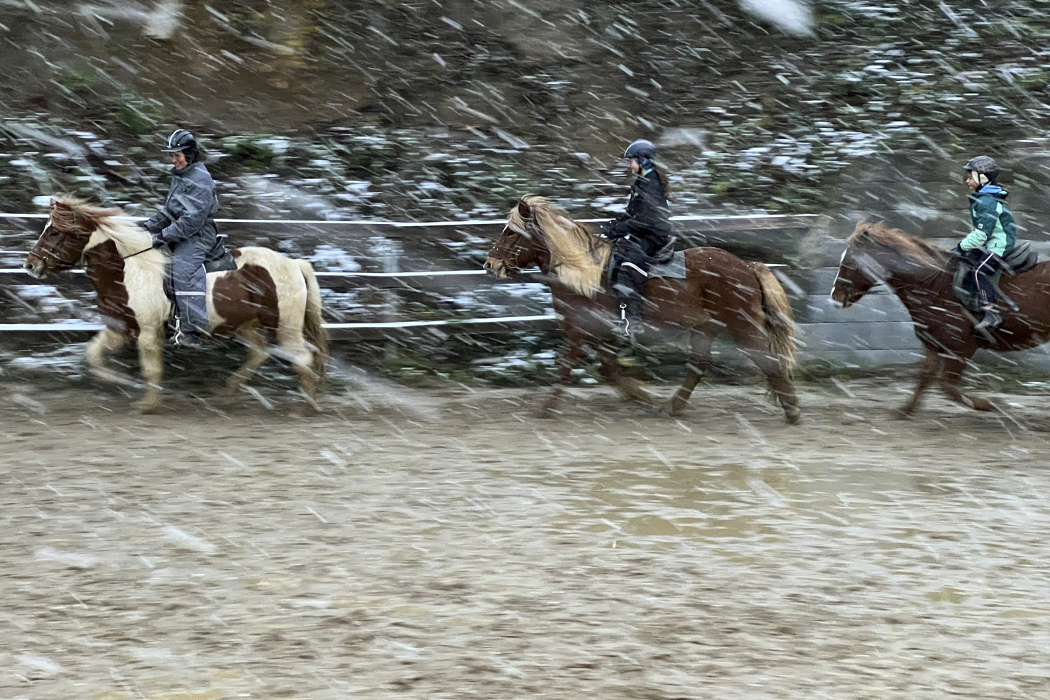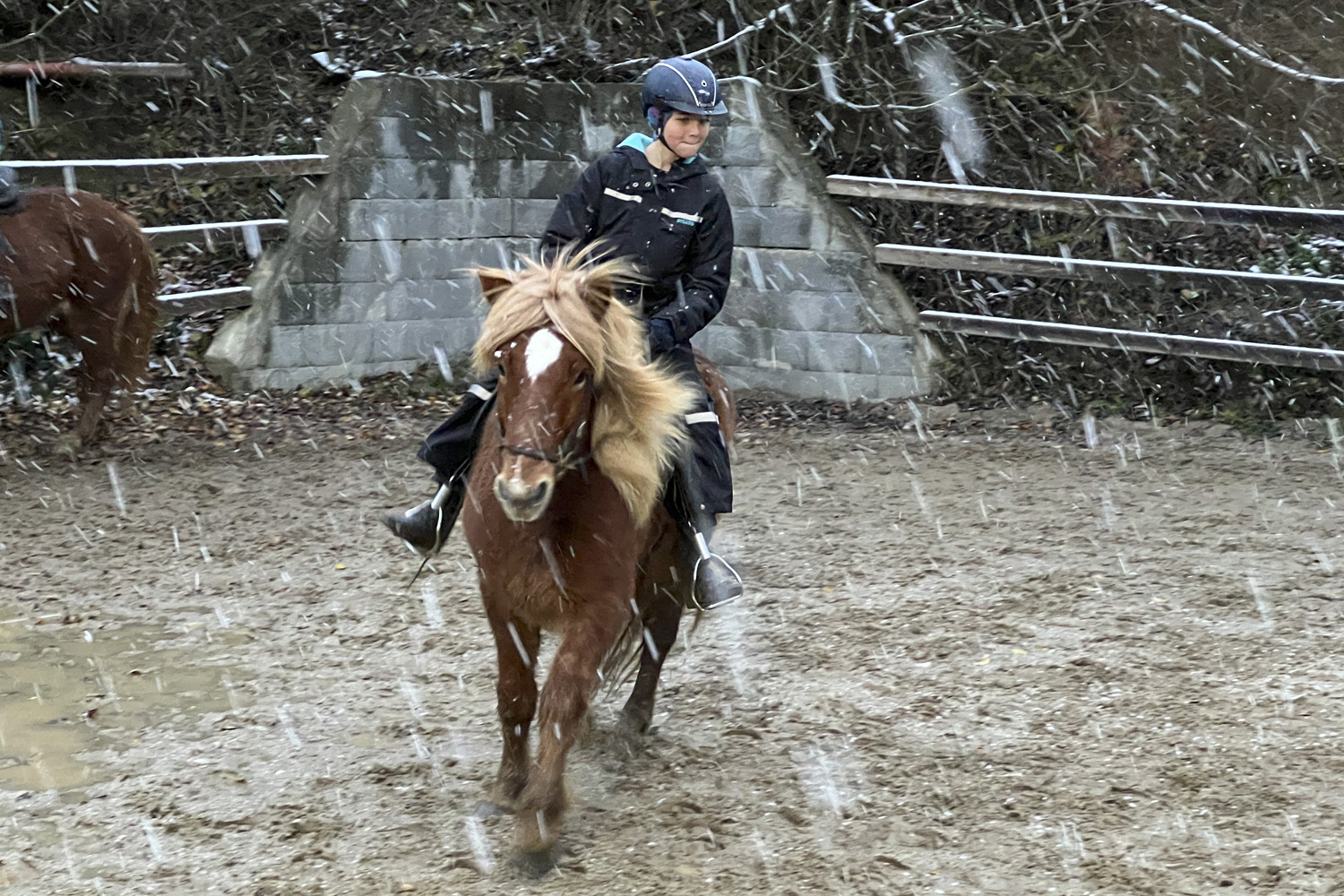 Der November war anfangs untypisch warm, dann wurde er ziemlich nass und gegen Ende winterlich. Es war also allerhand geboten. Am Stall war bei einigen Pferden der Zahnarzt bzw. der Hufschmied. Chef Hannes und sein Mitarbeiter Rafal nutzten die angenehmen Temperaturen um am zukünftigen Platz der Reithalle zu arbeiten. (Fotos links) Es gab diverse Reitvergnügen am Reitplatz, natürlich mehr, als hier zu sehen, und Ausritte. (Fotos unten)