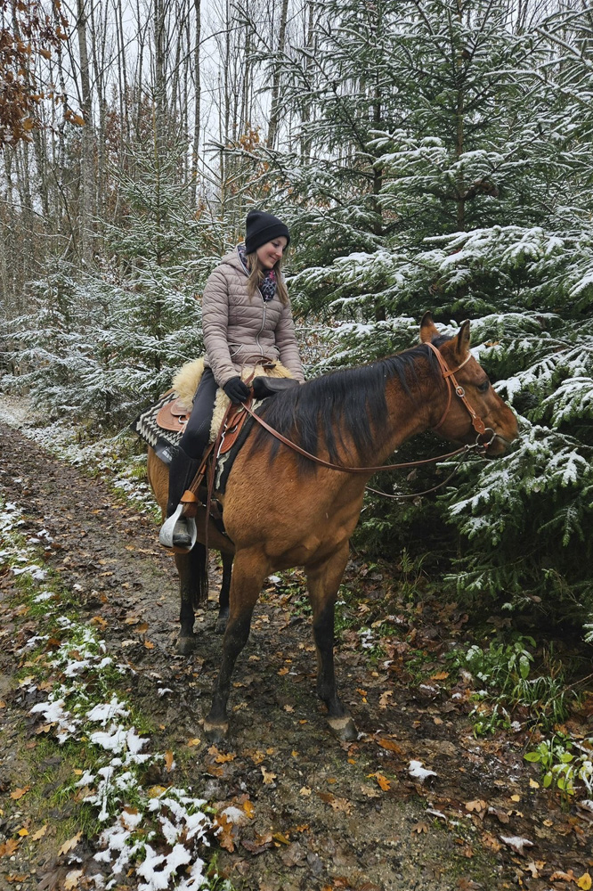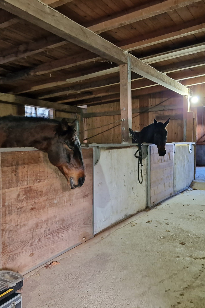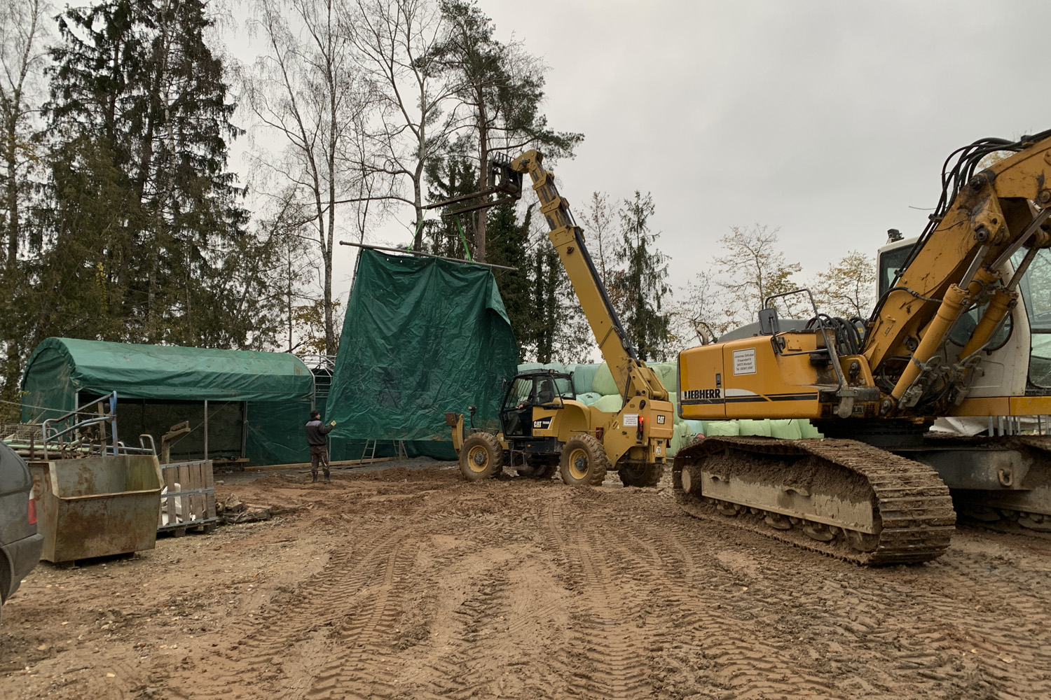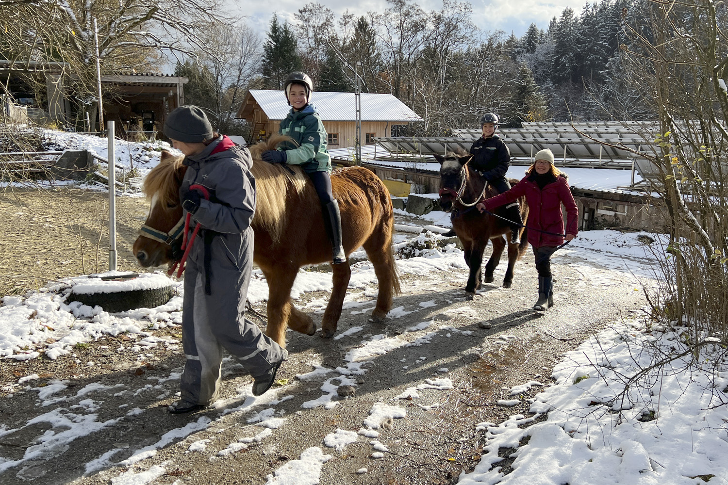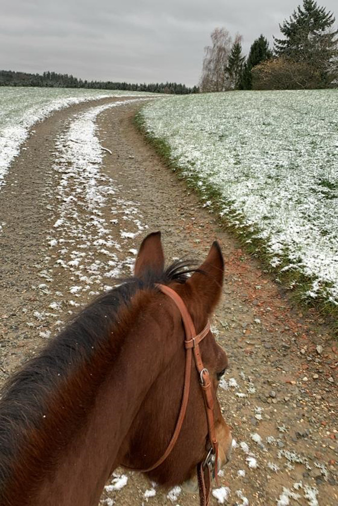 Der November war anfangs untypisch warm, dann wurde er ziemlich nass und gegen Ende winterlich. Es war also allerhand geboten. Am Stall war bei einigen Pferden der Zahnarzt bzw. der Hufschmied. Chef Hannes und sein Mitarbeiter Rafal nutzten die angenehmen Temperaturen um am zukünftigen Platz der Reithalle zu arbeiten. (Fotos links) Es gab diverse Reitvergnügen am Reitplatz, natürlich mehr, als hier zu sehen, und Ausritte. (Fotos unten)