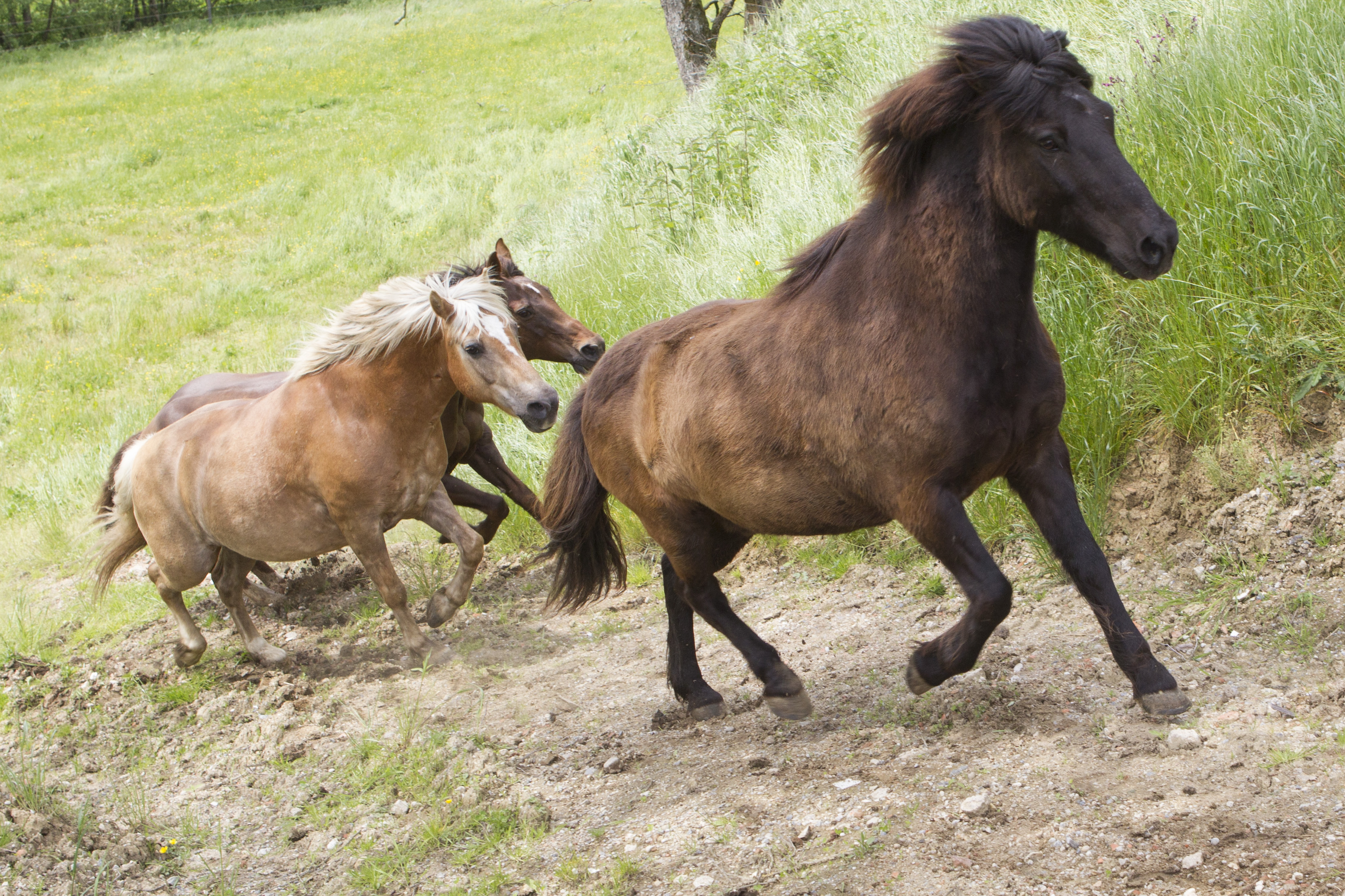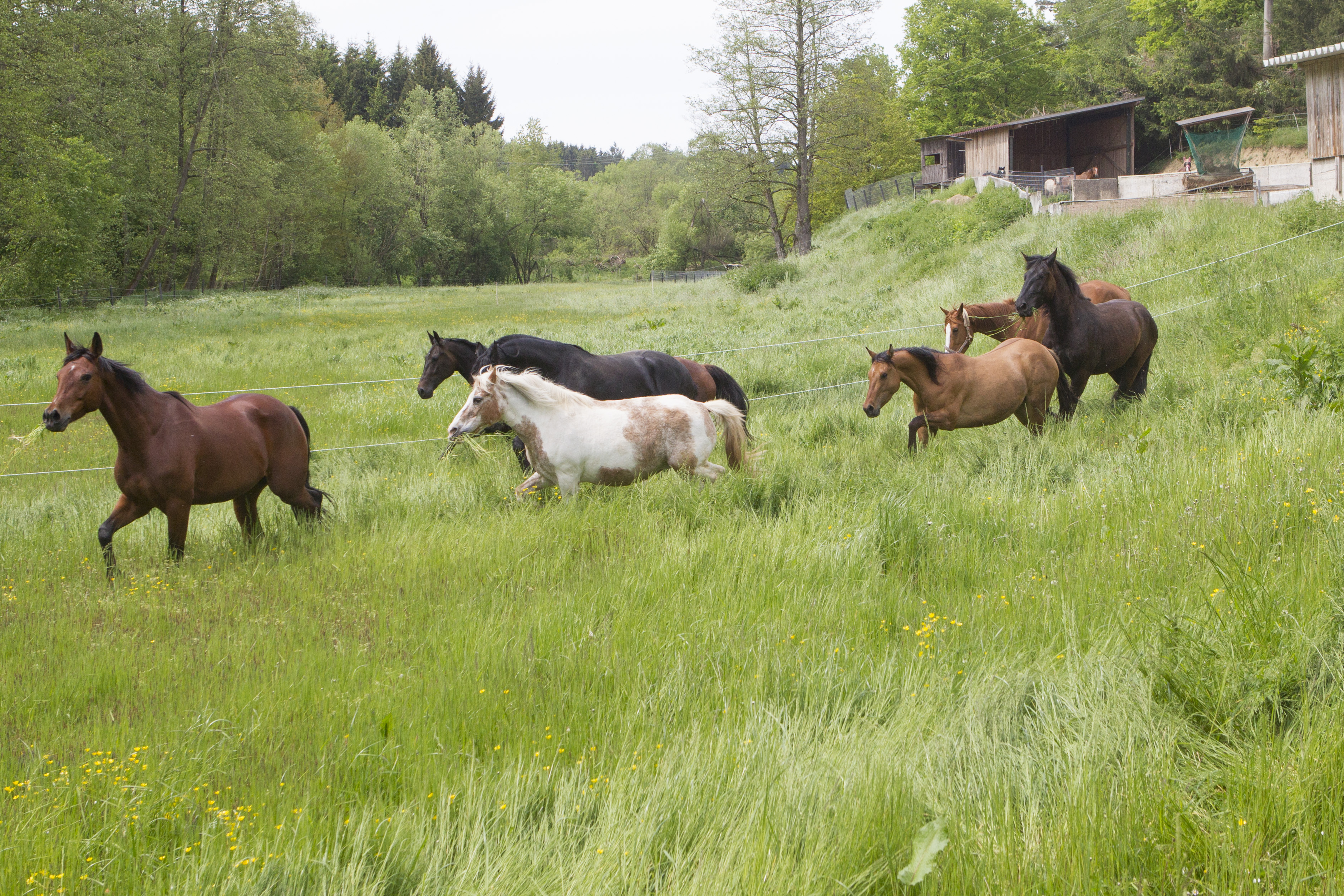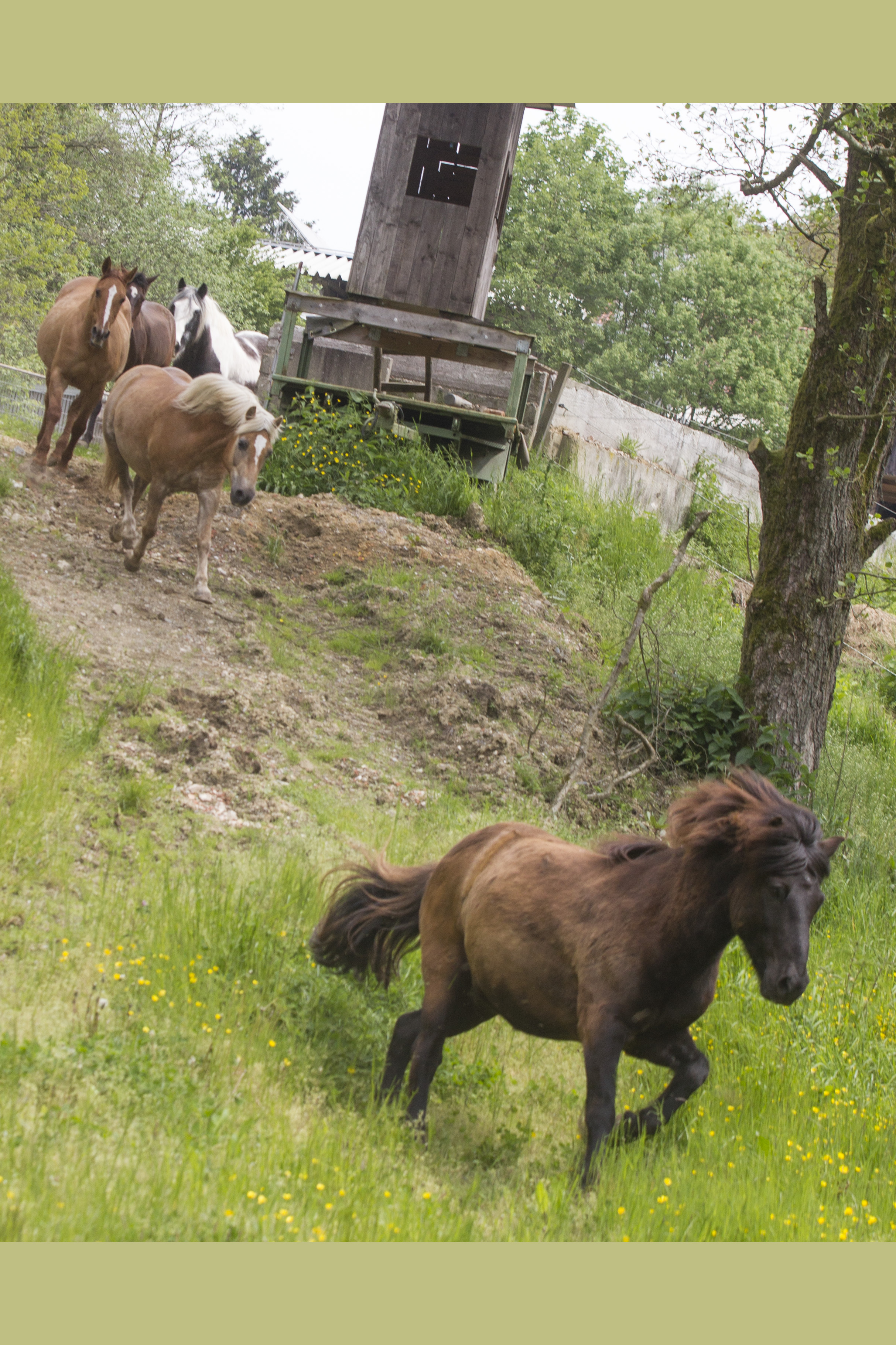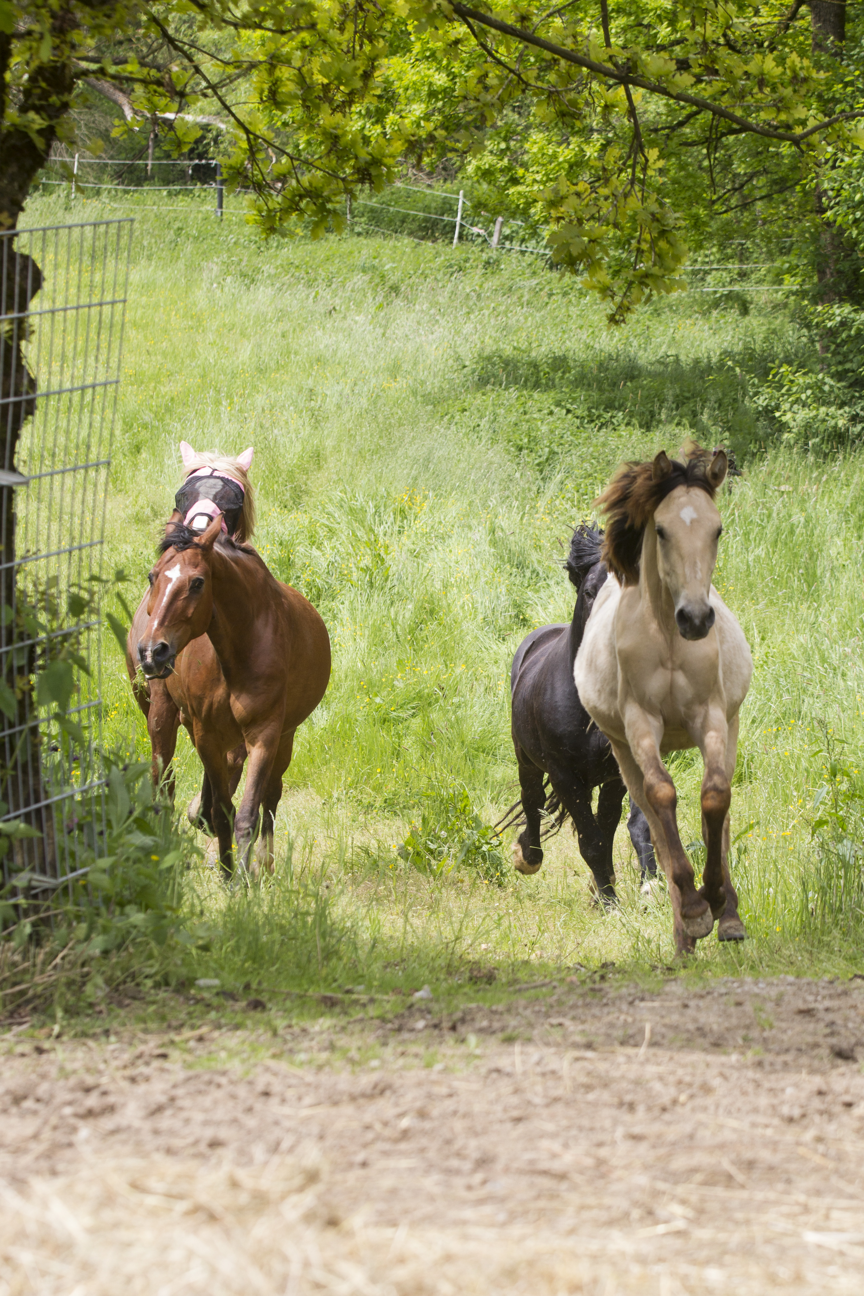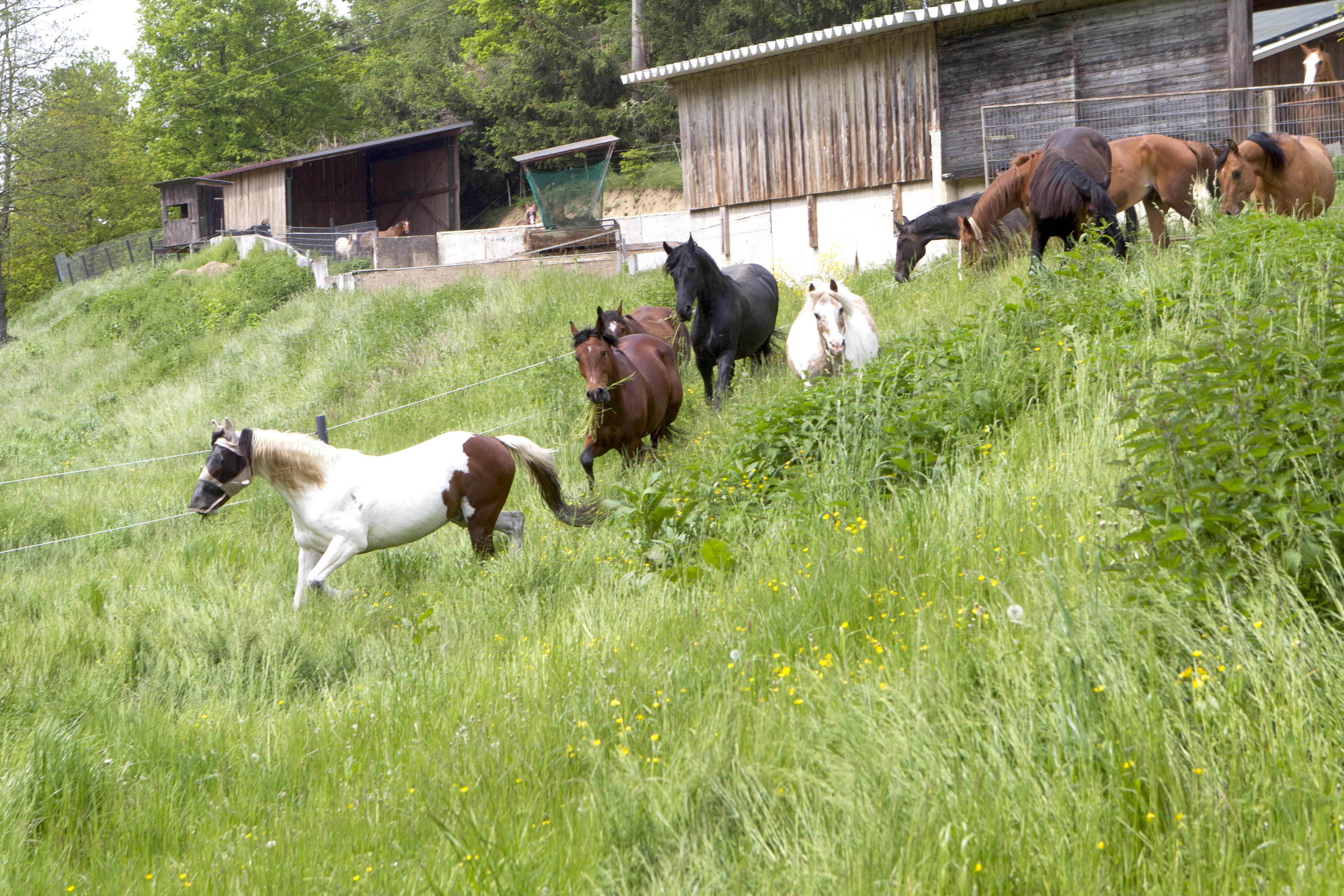 Heiß ersehnt war er - wie immer halt: Der erste Koppelgang! Am 20. Mai gab Chef Hannes das Startsignal und nach einander kamen alle Herden für zehn Minuten auf die jeweilige Koppel. Los gings mit der kleinsten Herde, dann kamen die "Allergiker" an die Reihe, anschließend die "Heuherde" und ganz zum Schluss die "Isländer". Bei den "Allergikern" lernte Talia ihre neue Herde nun "hautnah" kennen.