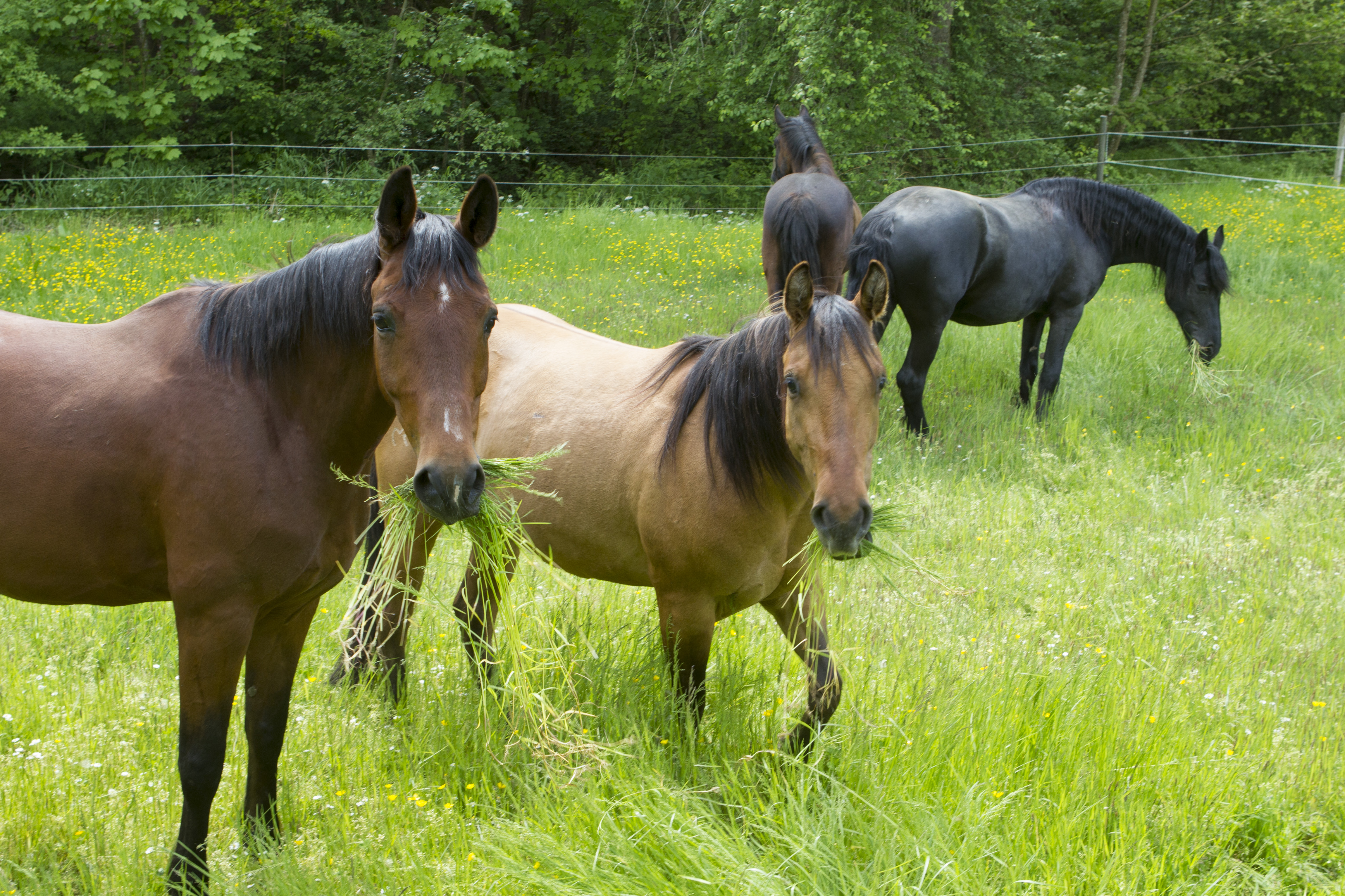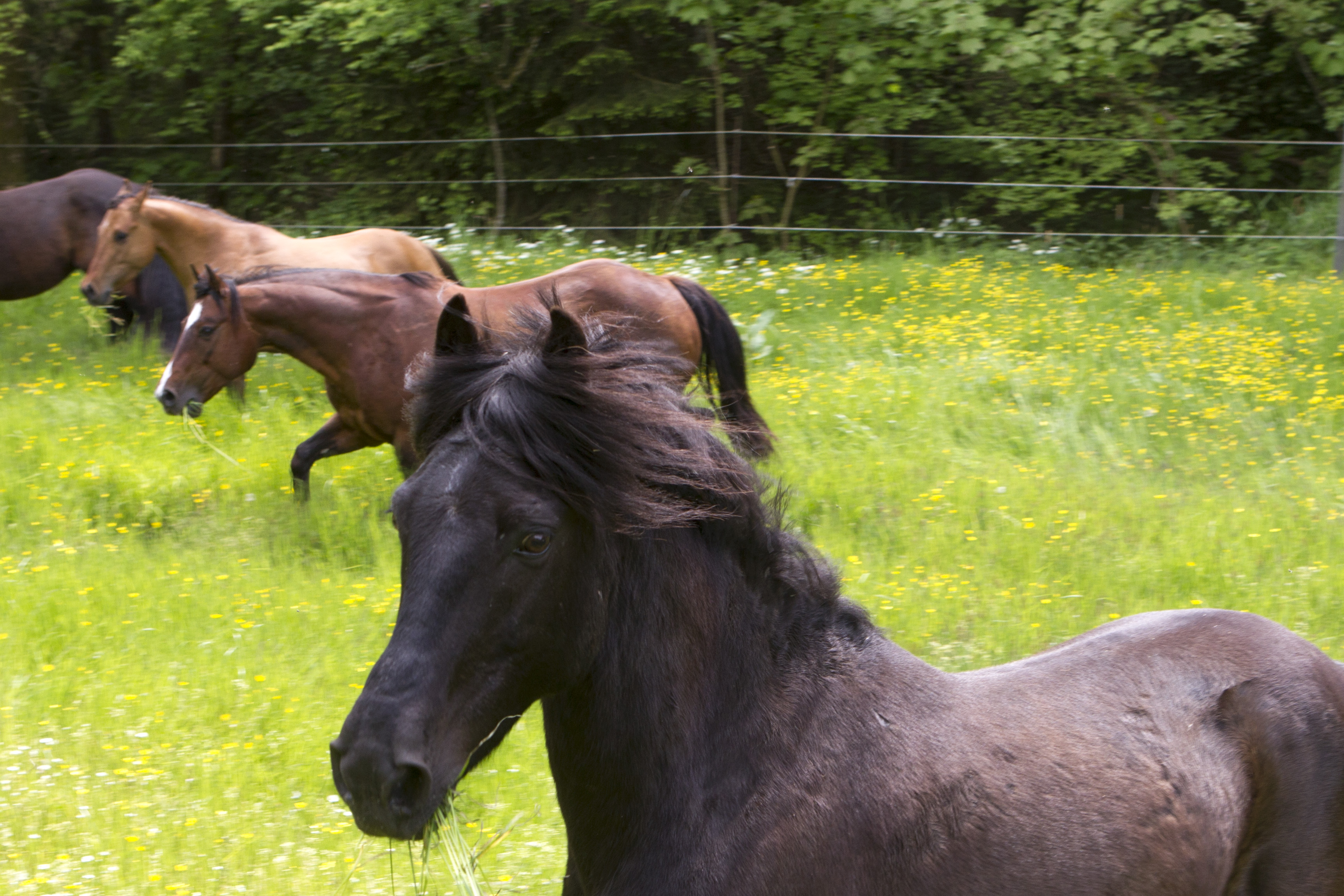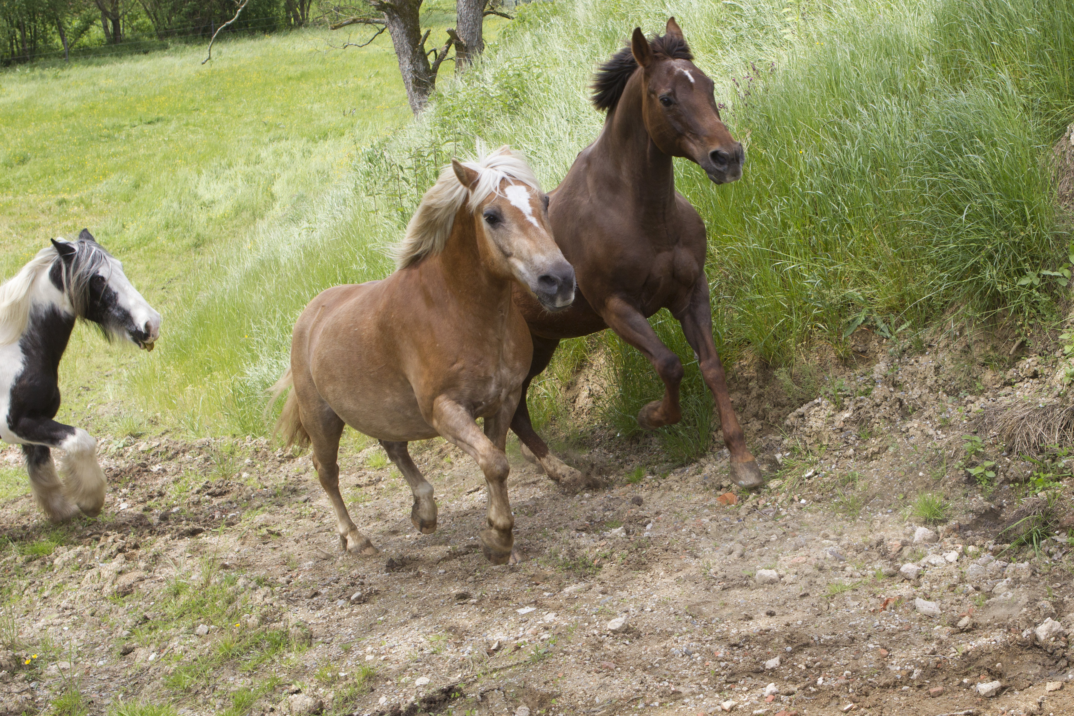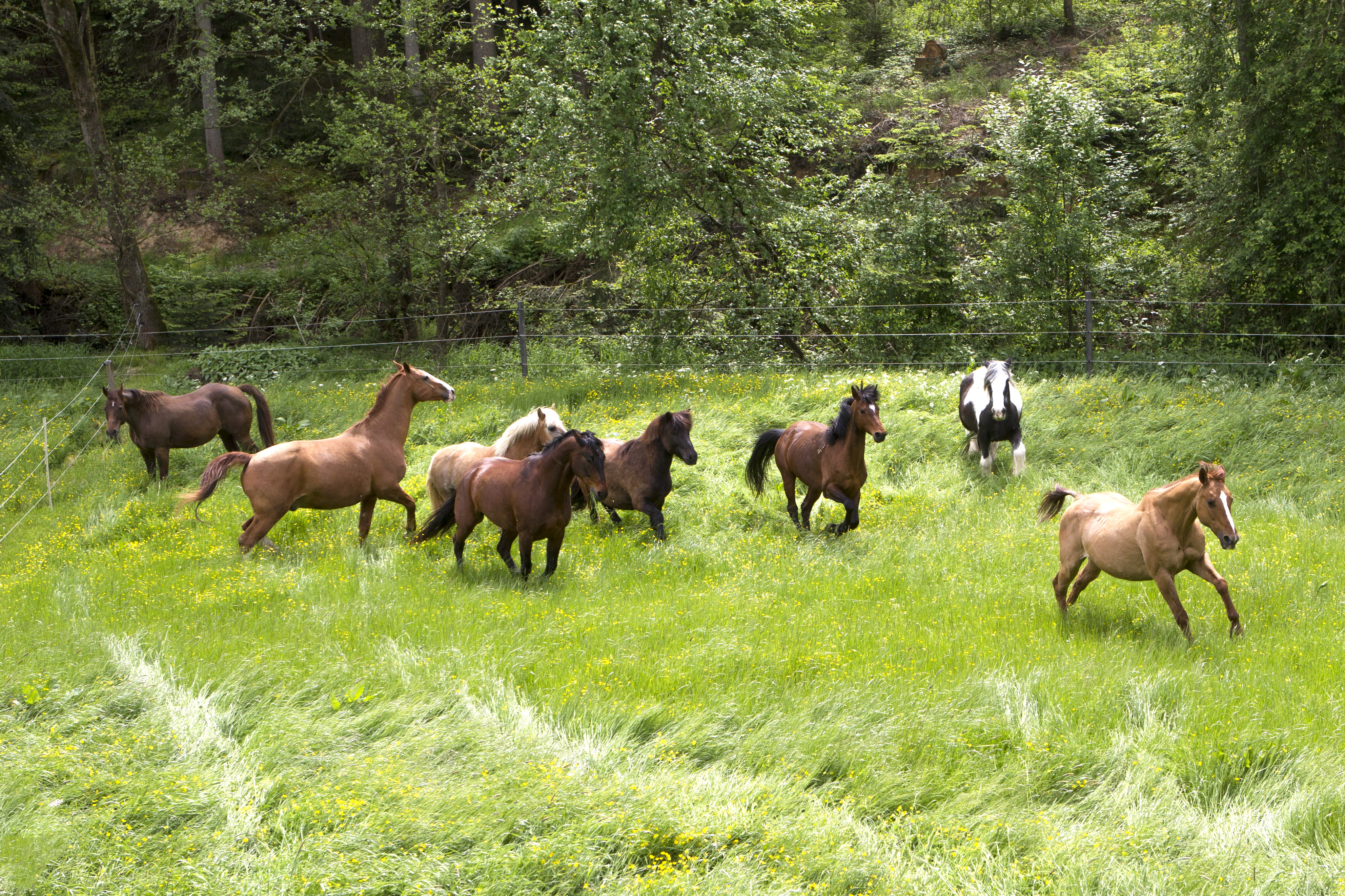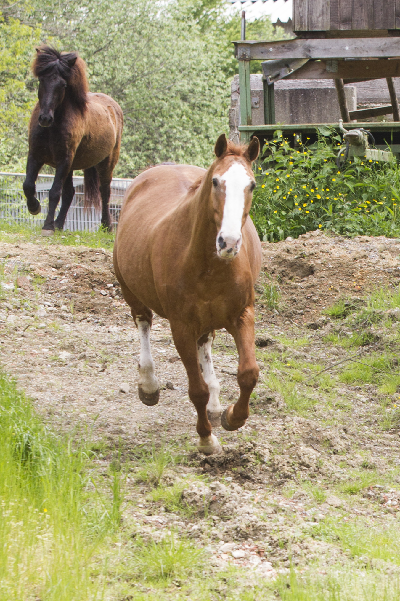 Heiß ersehnt war er - wie immer halt: Der erste Koppelgang! Am 20. Mai gab Chef Hannes das Startsignal und nach einander kamen alle Herden für zehn Minuten auf die jeweilige Koppel. Los gings mit der kleinsten Herde, dann kamen die "Allergiker" an die Reihe, anschließend die "Heuherde" und ganz zum Schluss die "Isländer". Bei den "Allergikern" lernte Talia ihre neue Herde nun "hautnah" kennen.