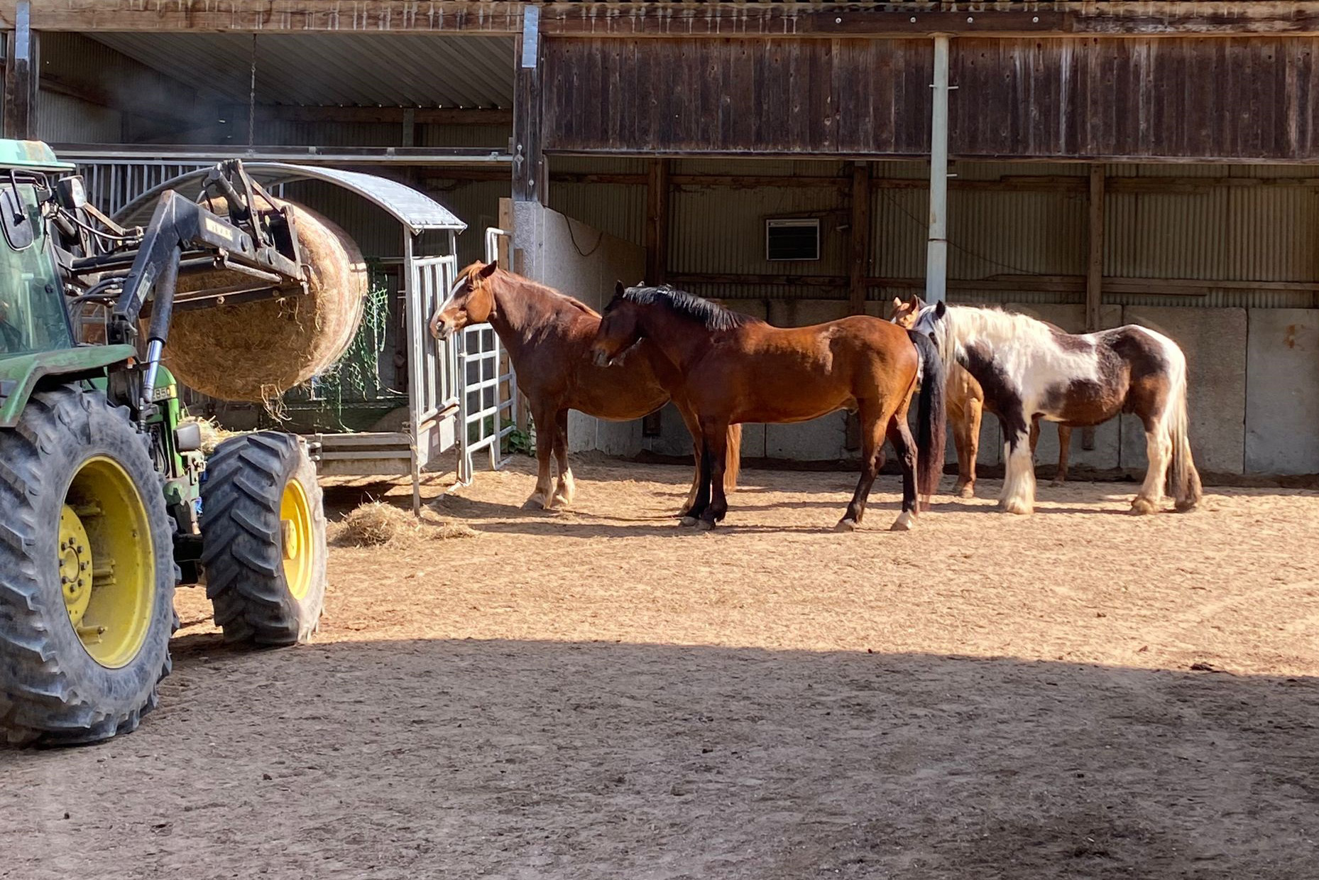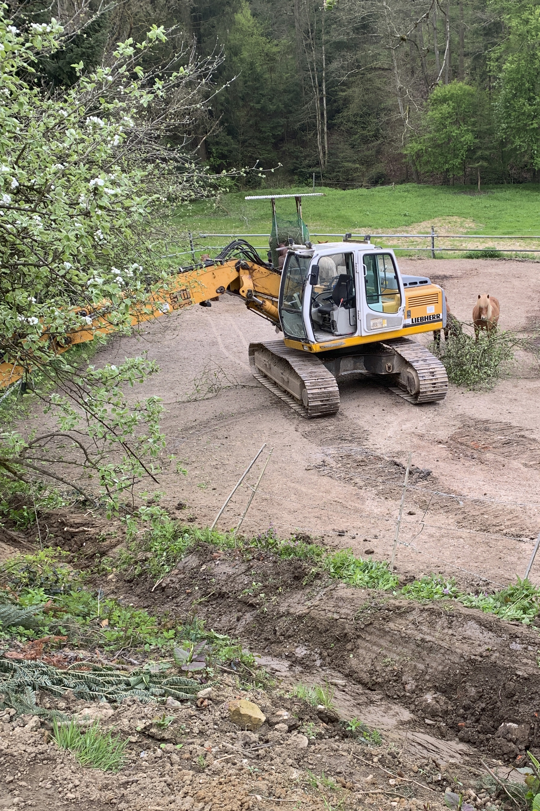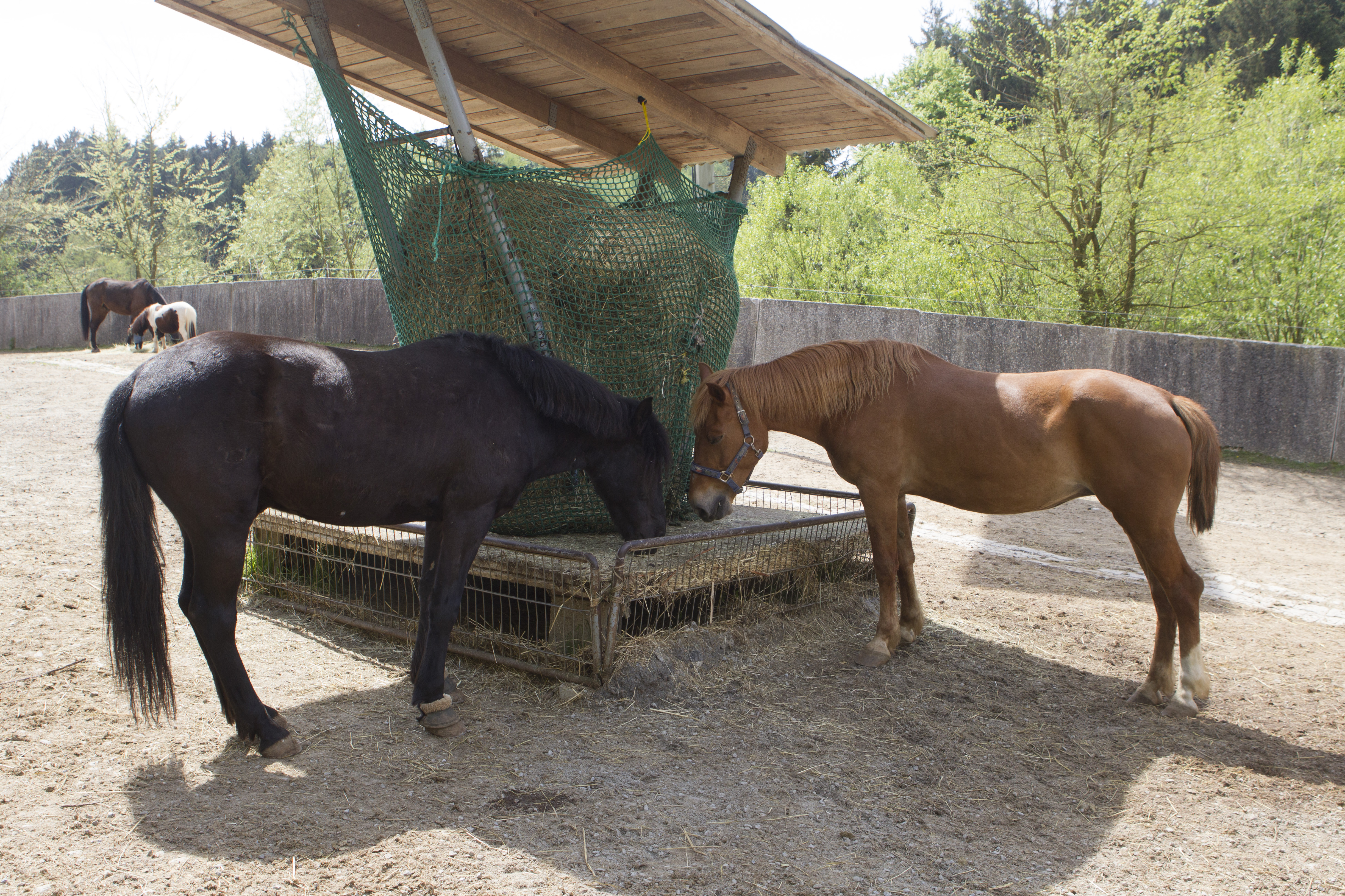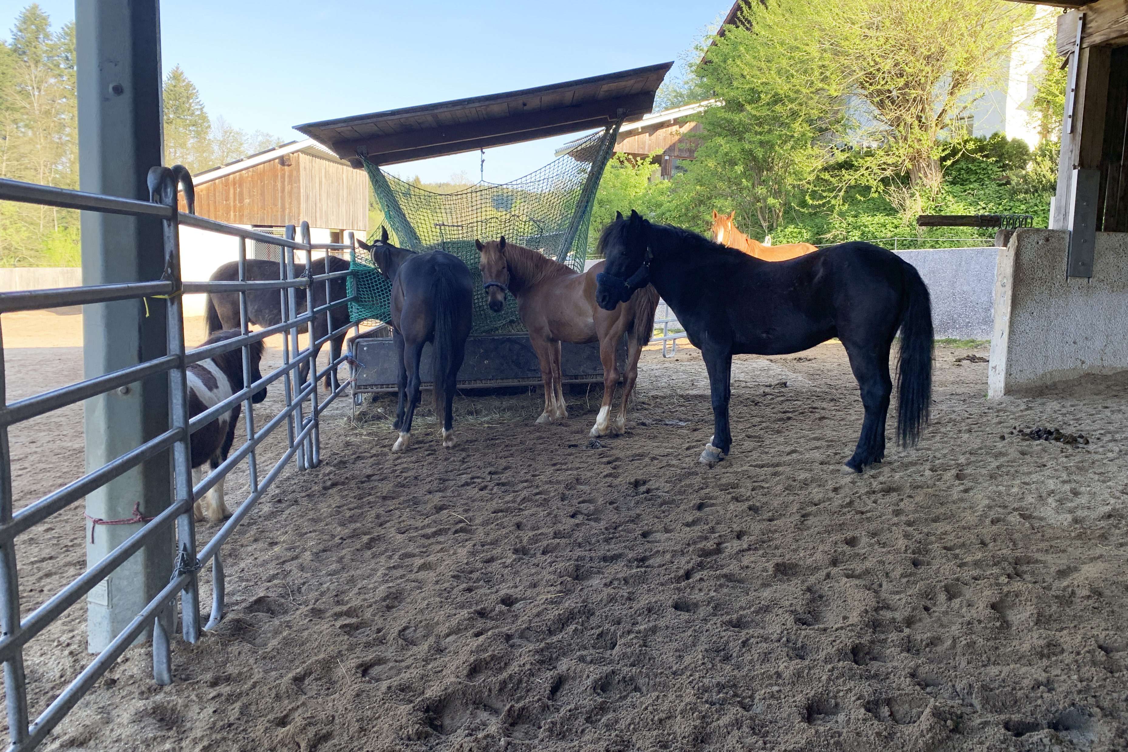 ... und noch einmal gab es Neuzugänge sowohl für die Heuherde, als auch für die Allergikerherde. Willkommen Plato, Lion, Cookie(Kuki), Paul und Talia. Letztere kam erst frisch von der Klinik und kann sich erst einmal im eigenen Paddock eingewöhnen, die anderen sind nach kurzer Zeit im Paddock in die Herde eingephast worden. Bei der Isländerherde wurde der Zaun erneuert, kein Grund zur Aufregung über das "große gelbe Pferd"! Talia geniesst gleich an ihren ersten Tagen hier das Solarium, mittlerweile hatte nämlich Dauerregen eingesetzt.