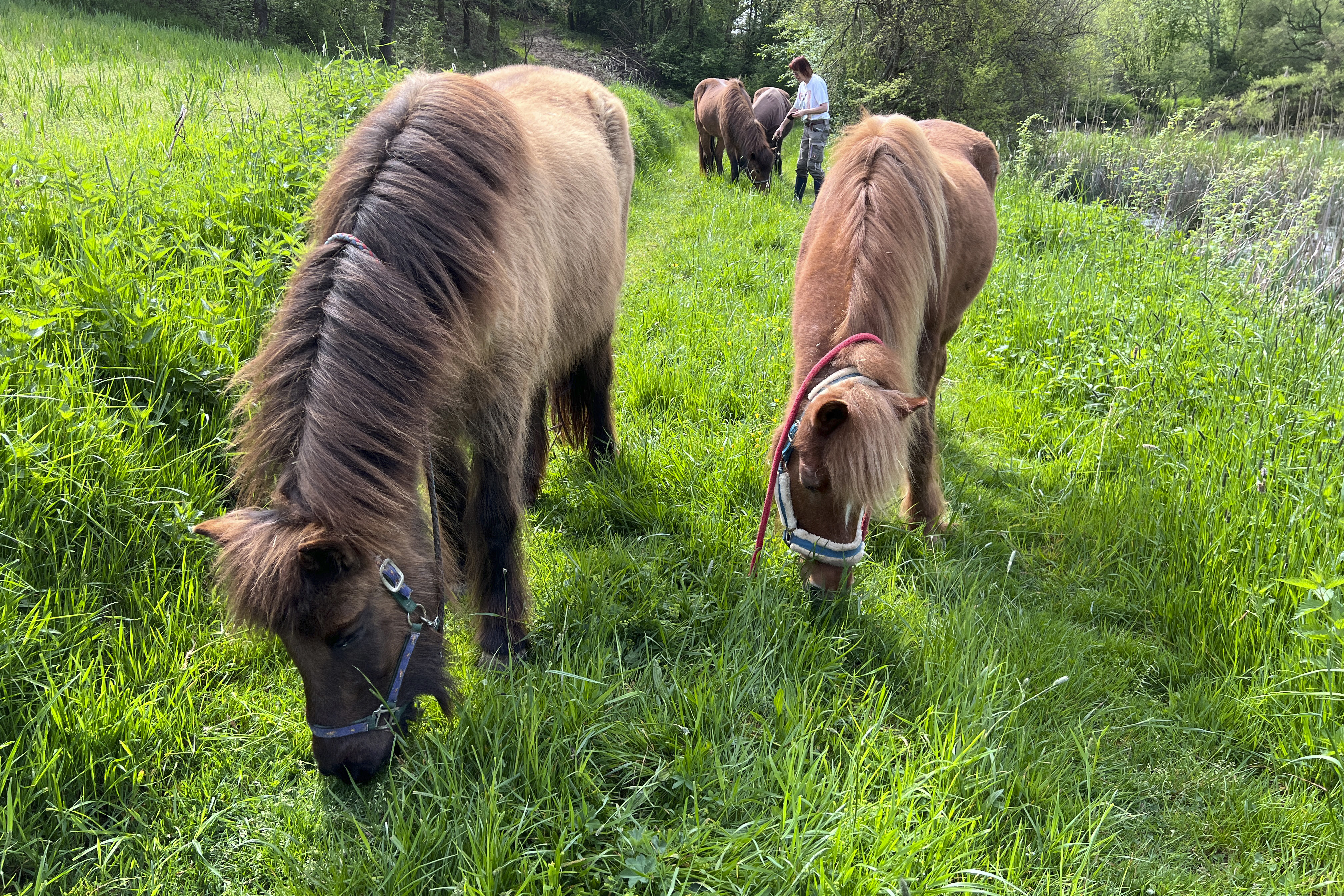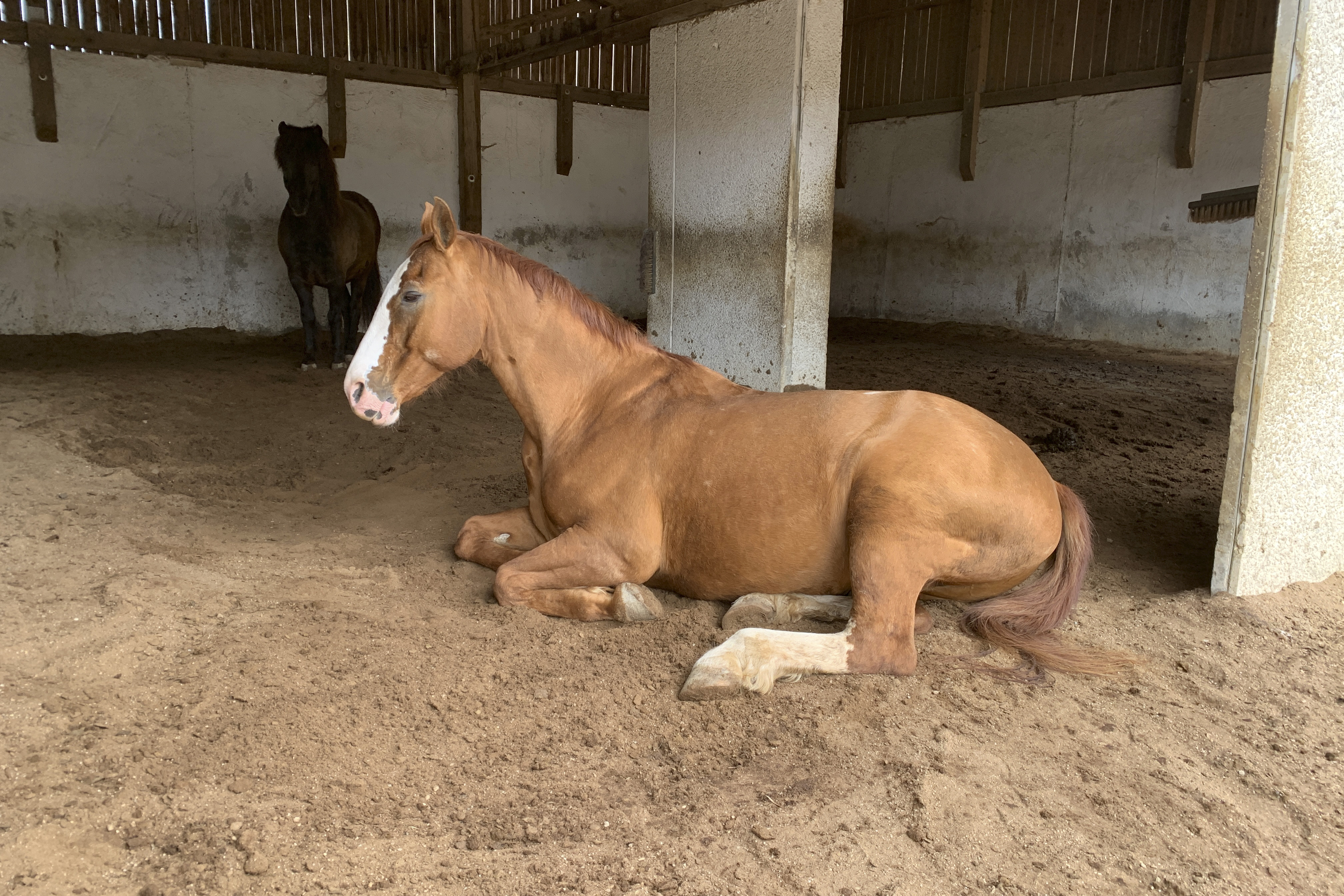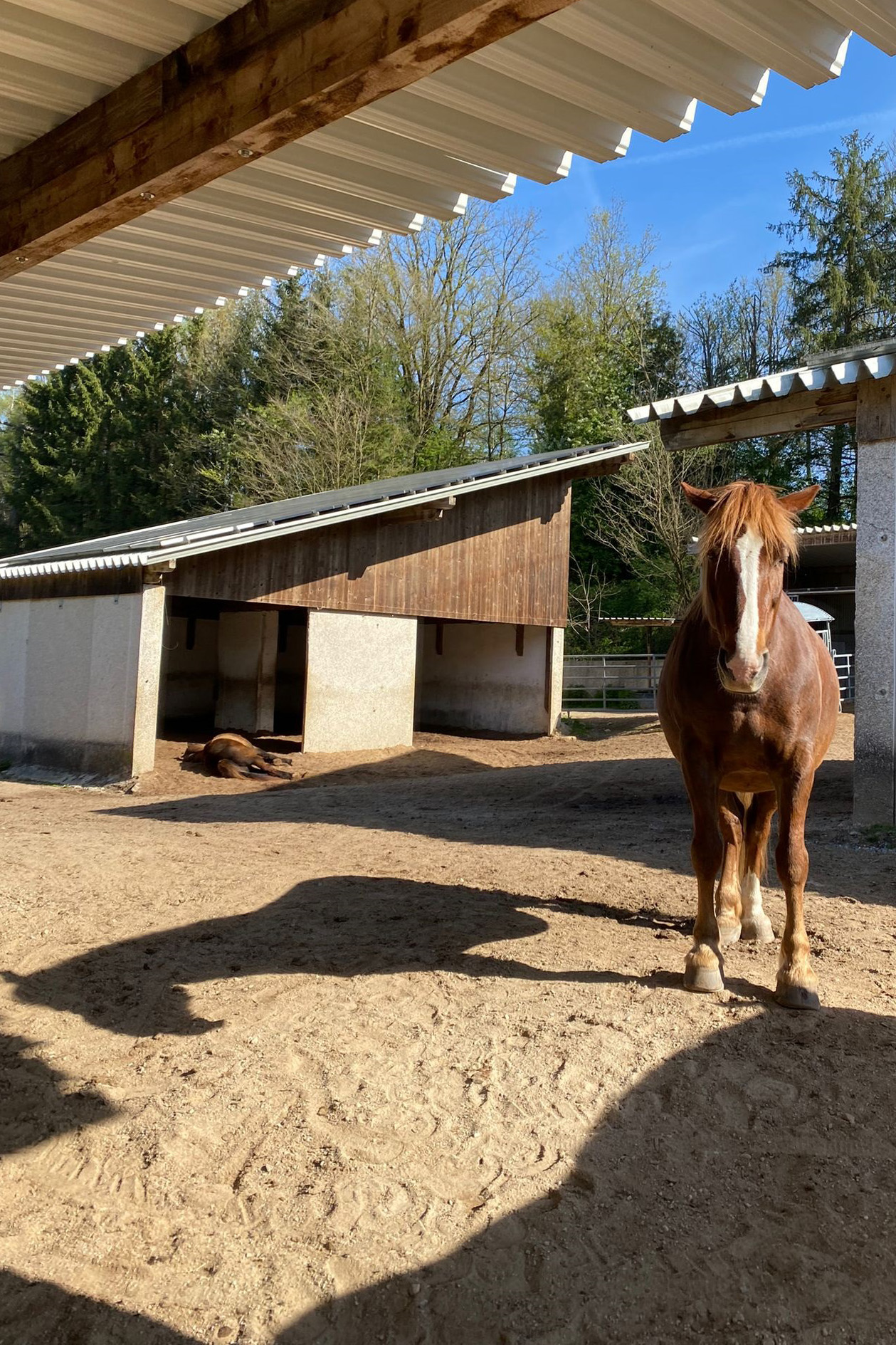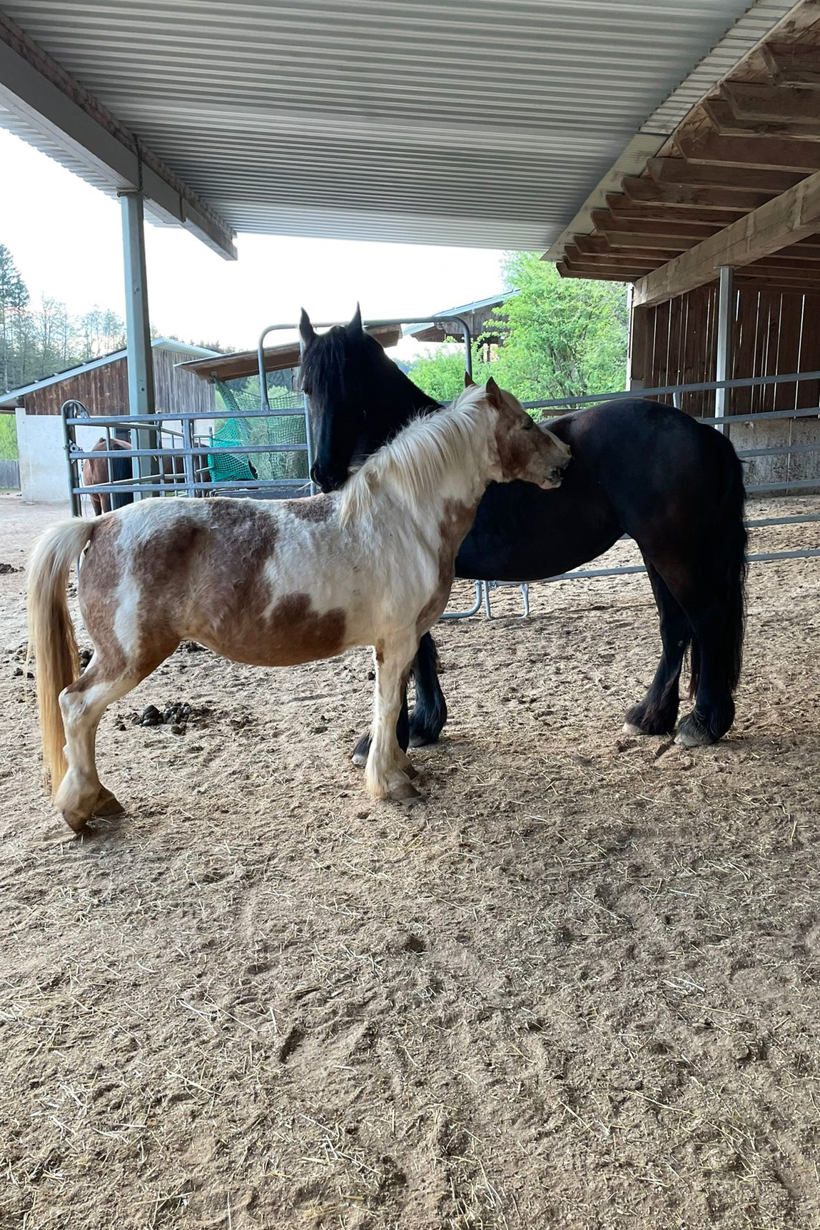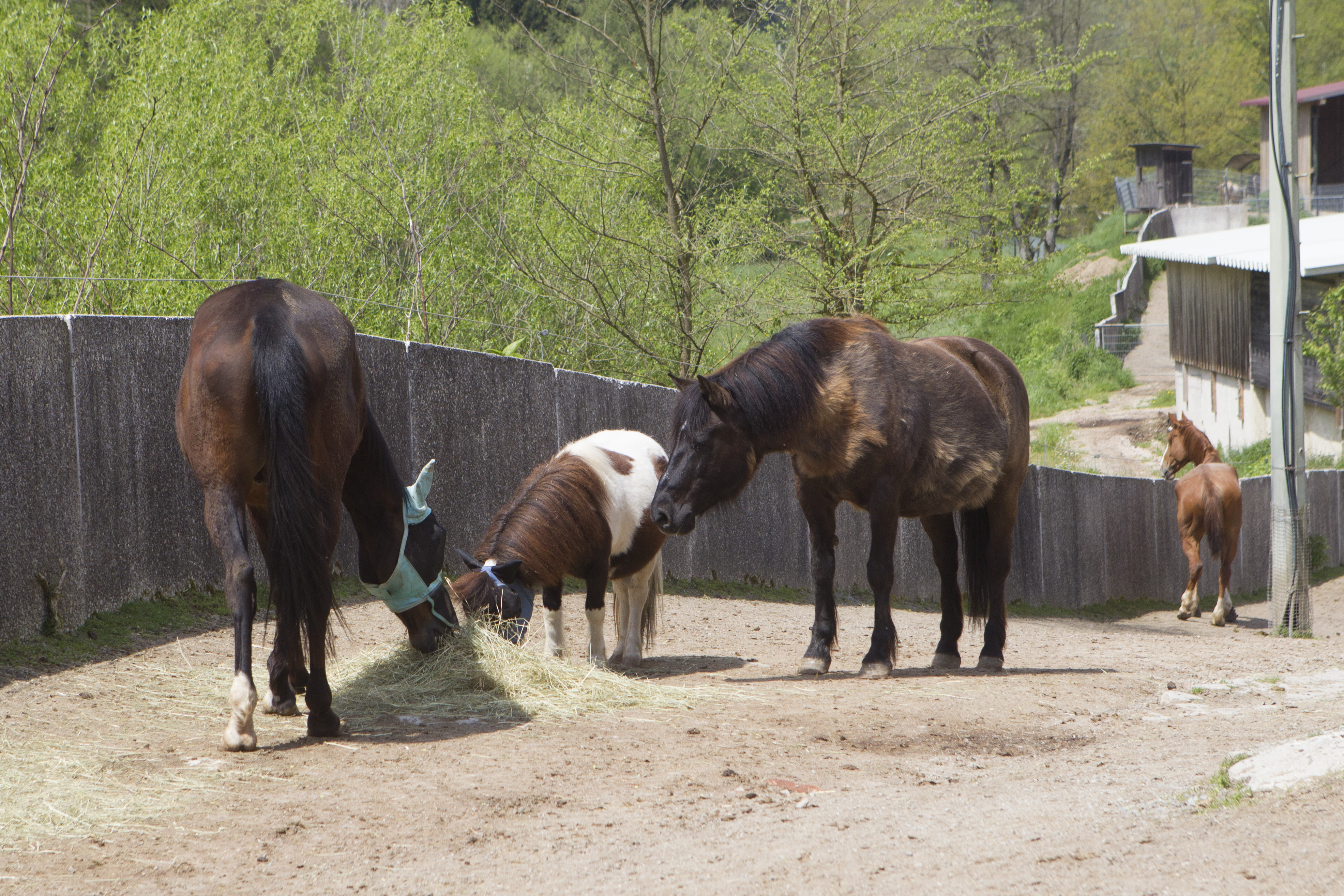 ... und noch einmal gab es Neuzugänge sowohl für die Heuherde, als auch für die Allergikerherde. Willkommen Plato, Lion, Cookie(Kuki), Paul und Talia. Letztere kam erst frisch von der Klinik und kann sich erst einmal im eigenen Paddock eingewöhnen, die anderen sind nach kurzer Zeit im Paddock in die Herde eingephast worden. Bei der Isländerherde wurde der Zaun erneuert, kein Grund zur Aufregung über das "große gelbe Pferd"! Talia geniesst gleich an ihren ersten Tagen hier das Solarium, mittlerweile hatte nämlich Dauerregen eingesetzt.