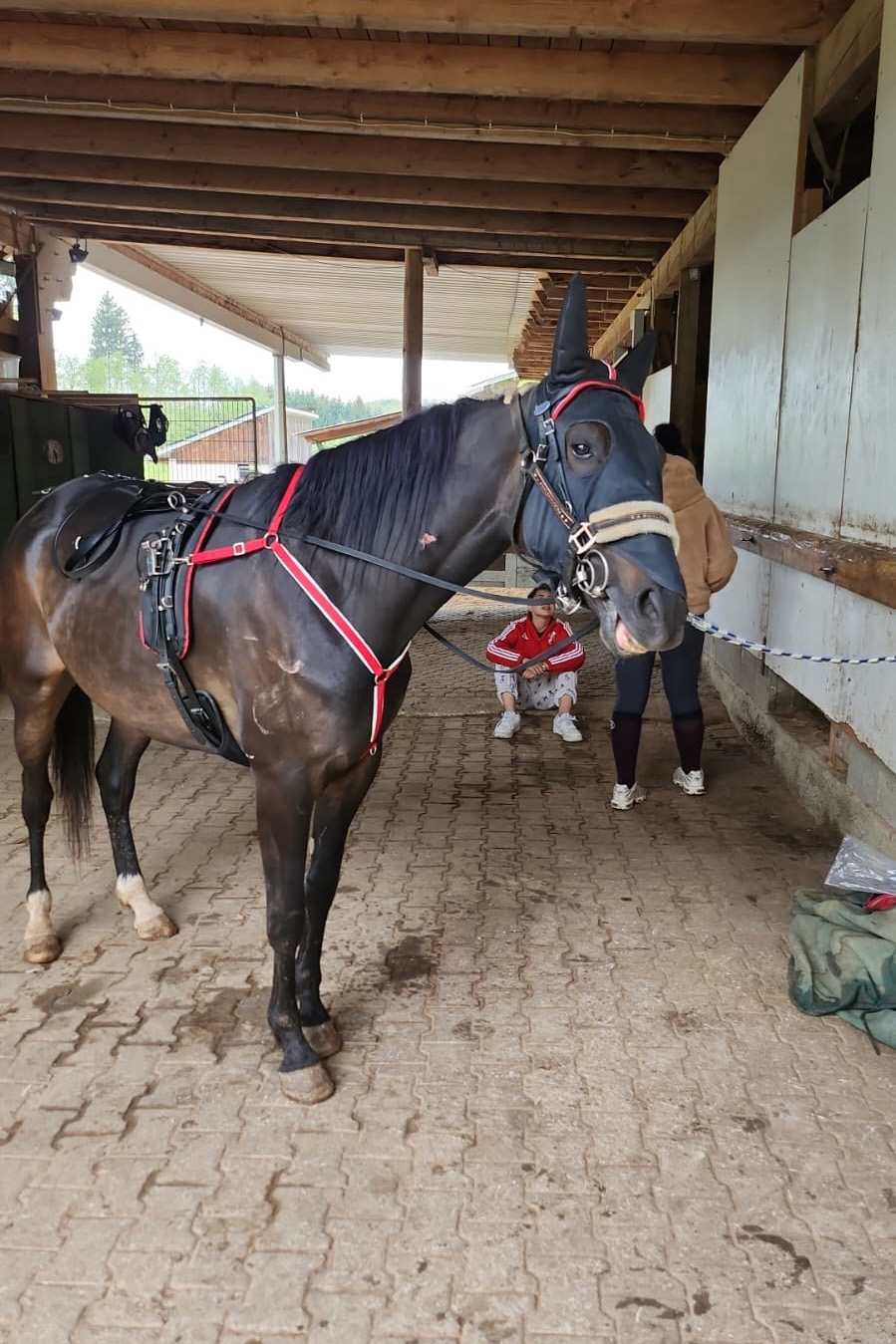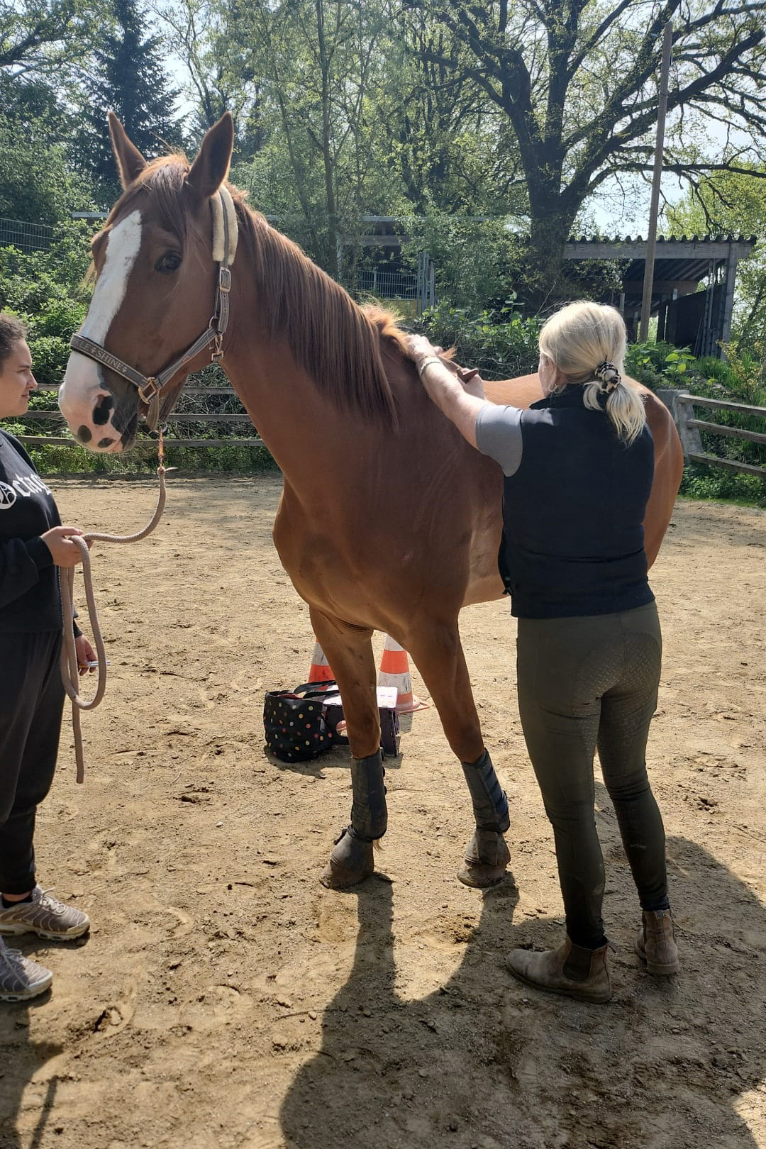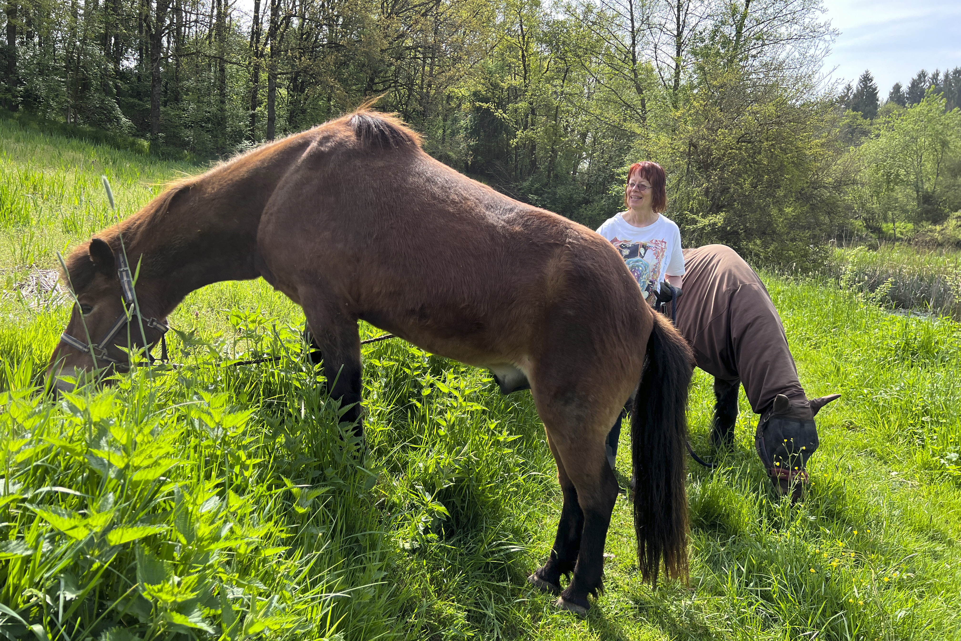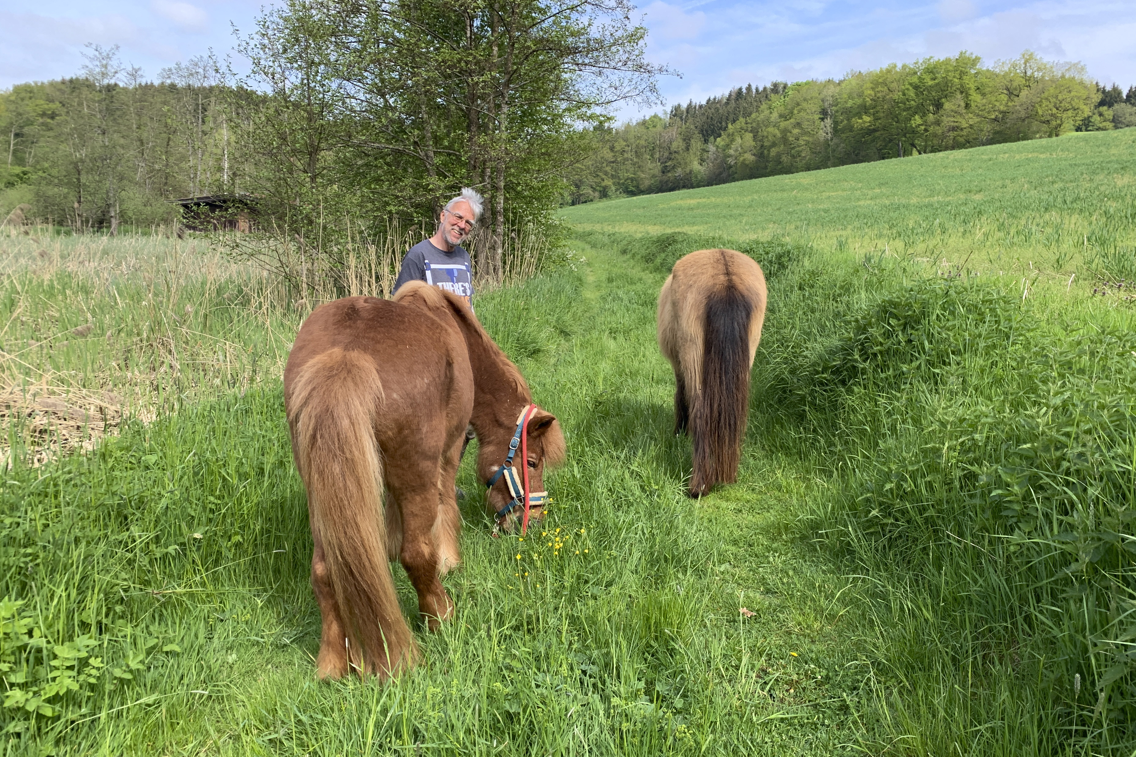 ... und noch einmal gab es Neuzugänge sowohl für die Heuherde, als auch für die Allergikerherde. Willkommen Plato, Lion, Cookie(Kuki), Paul und Talia. Letztere kam erst frisch von der Klinik und kann sich erst einmal im eigenen Paddock eingewöhnen, die anderen sind nach kurzer Zeit im Paddock in die Herde eingephast worden. Bei der Isländerherde wurde der Zaun erneuert, kein Grund zur Aufregung über das "große gelbe Pferd"! Talia geniesst gleich an ihren ersten Tagen hier das Solarium, mittlerweile hatte nämlich Dauerregen eingesetzt.