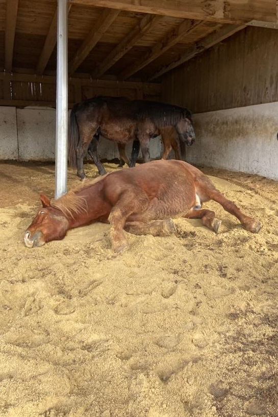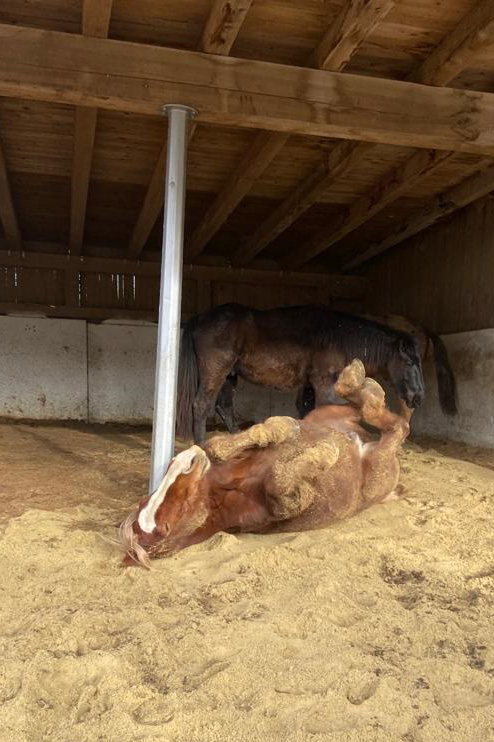 (Siehe auch Kalenderblatt Januar.) Natürlich wurden auch Spaziergänge und Ausritte unternommen. In der Heuherde war die Freude über frischen Sand groß.