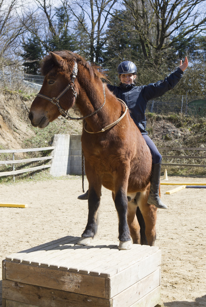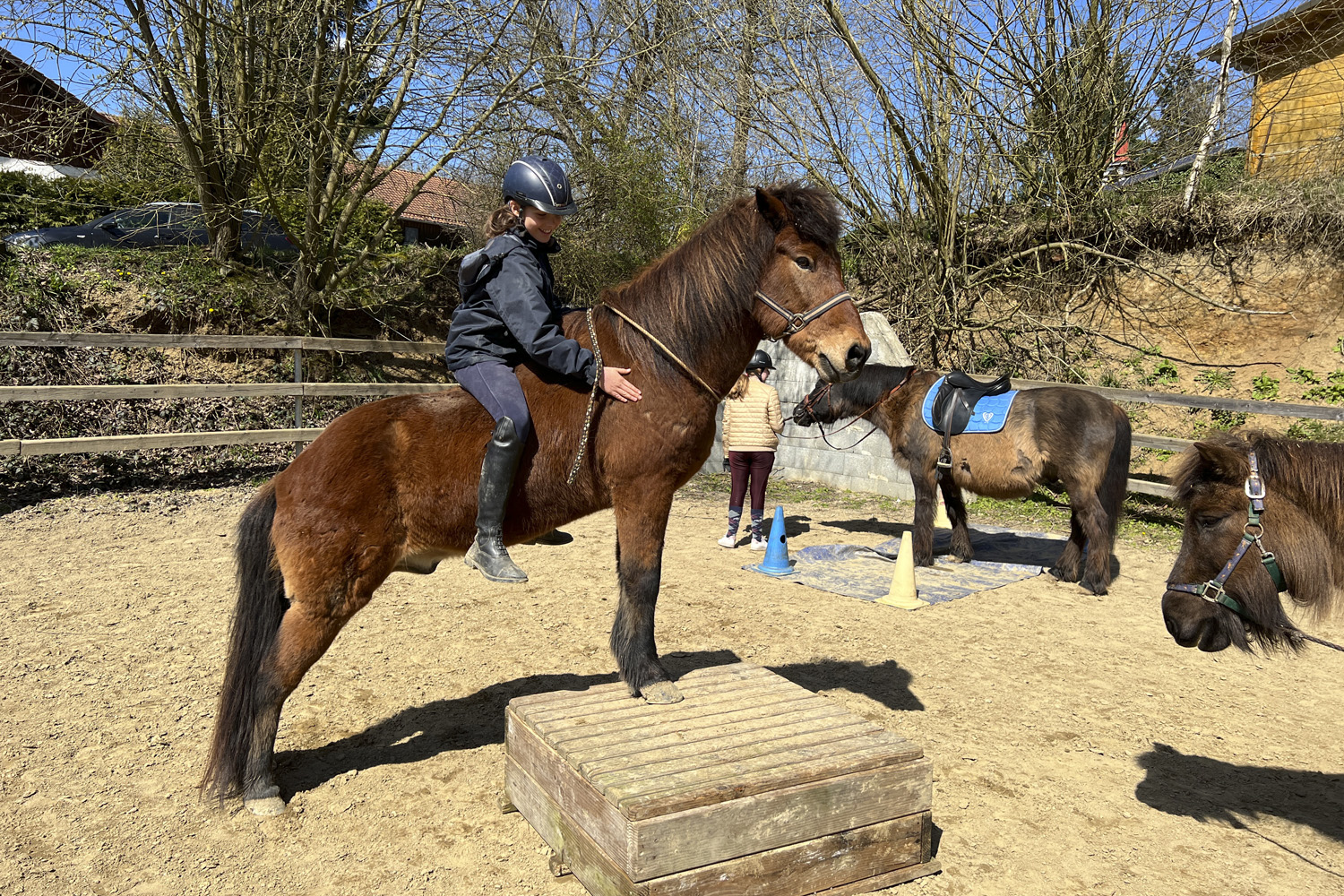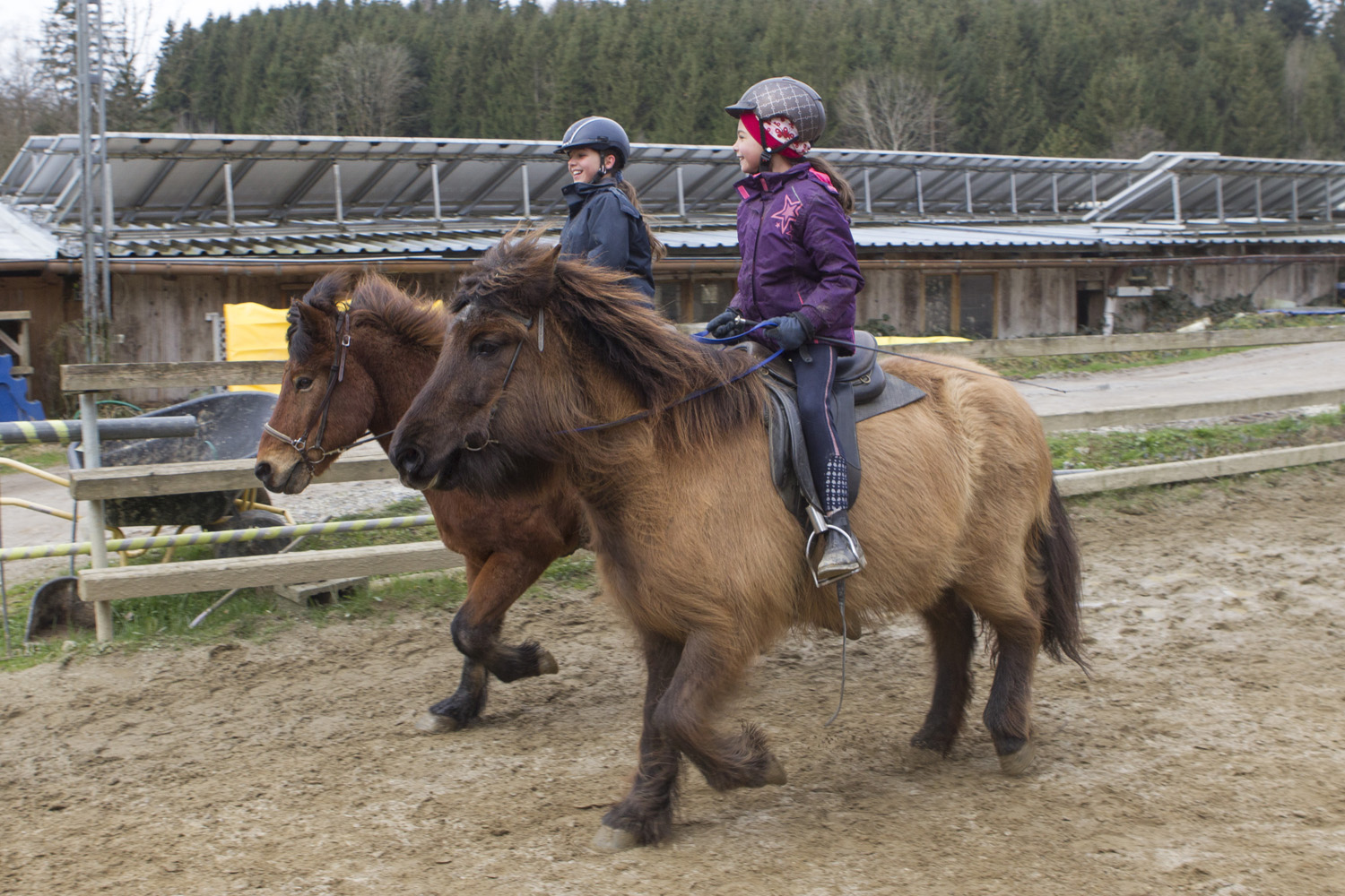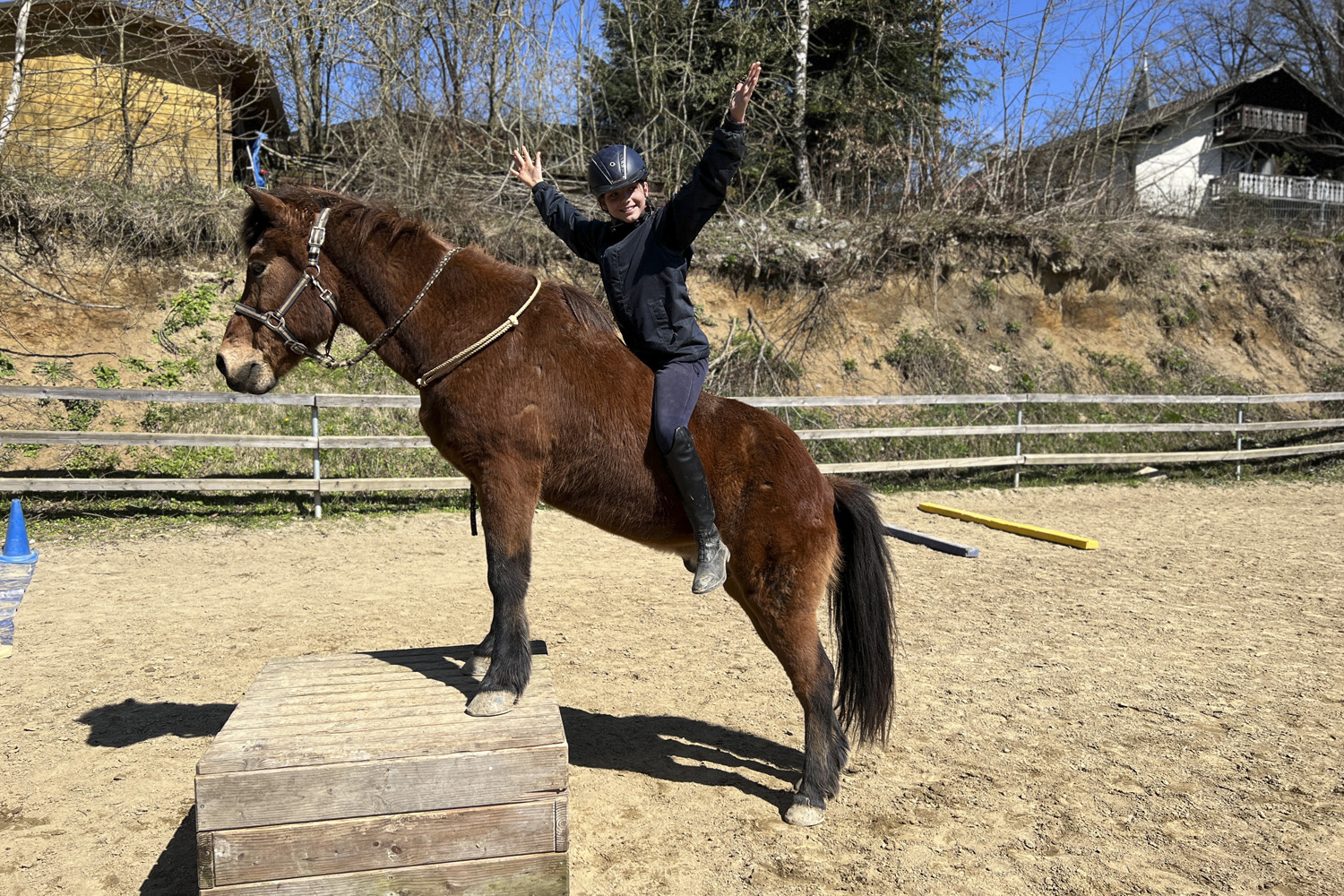 ... Ferienzeit! Also viel Zeit für verschiedene Vergnügungen mit den Pferden am Reitplatz ...