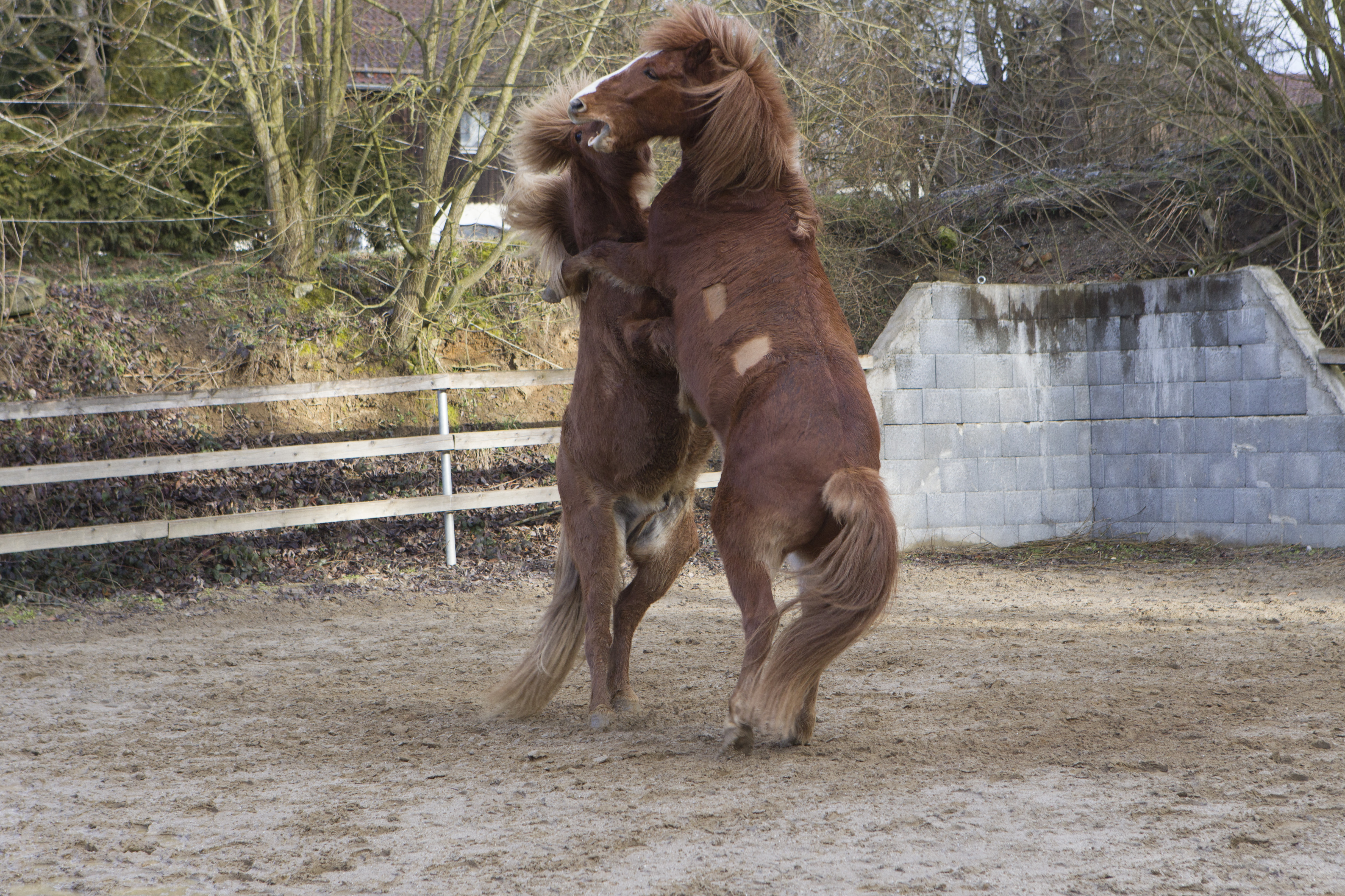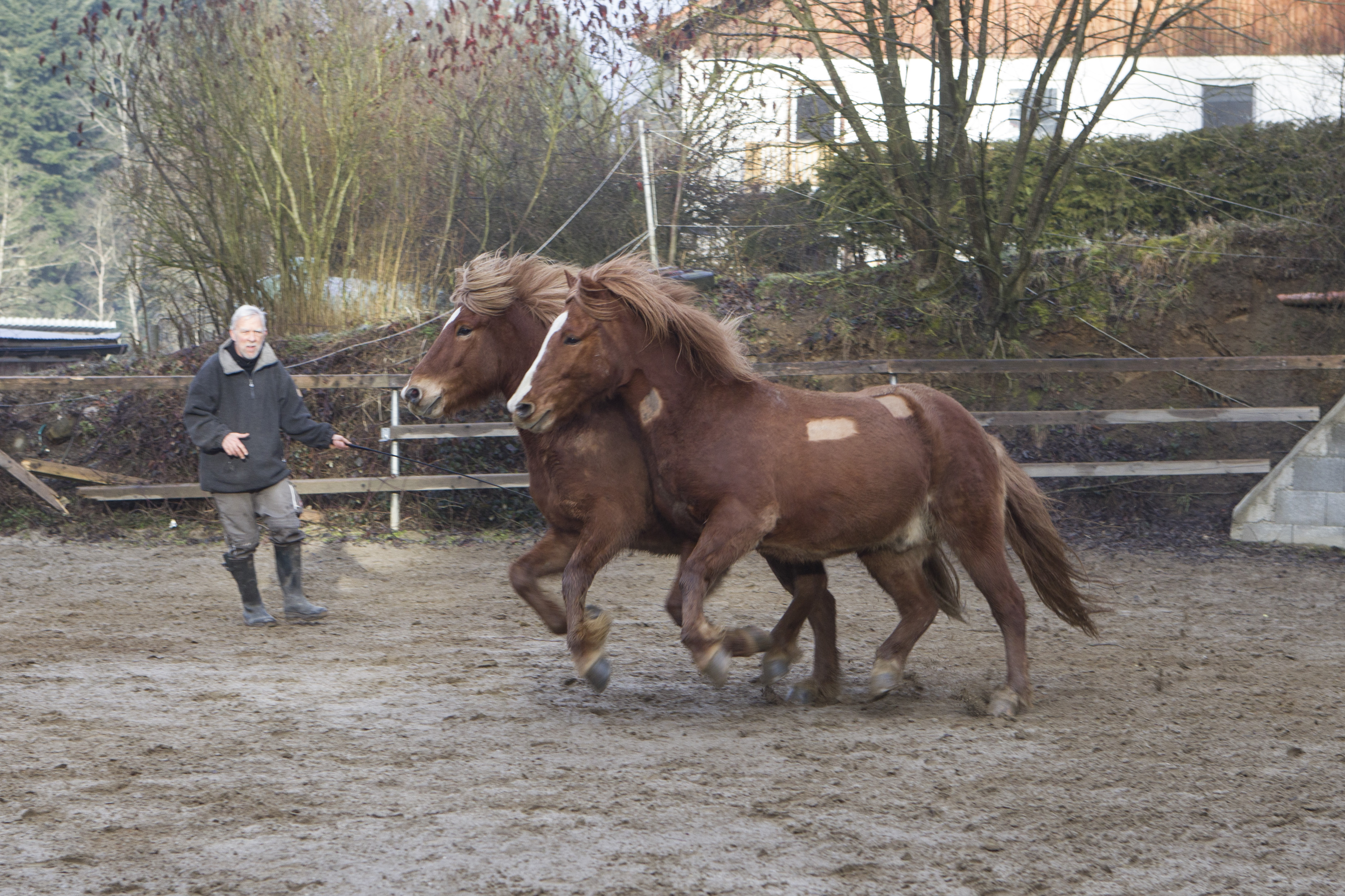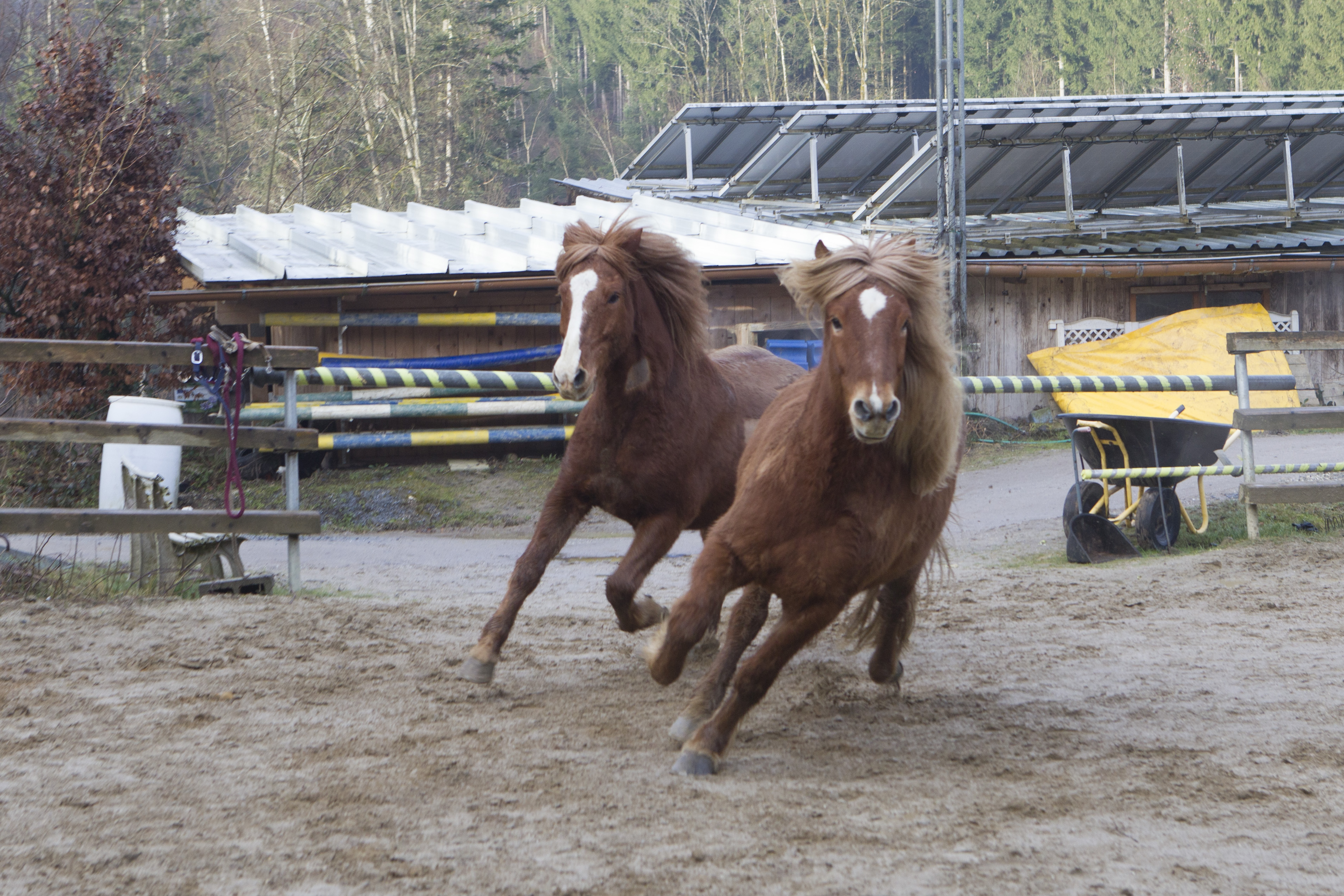 Die "wilden Jungs", Elgur und Sómi, durften sich immer wieder am Reitplatz austoben, wenn wir Hamradis eine Weile alleine mit den anderen im Paddock lassen wollten.