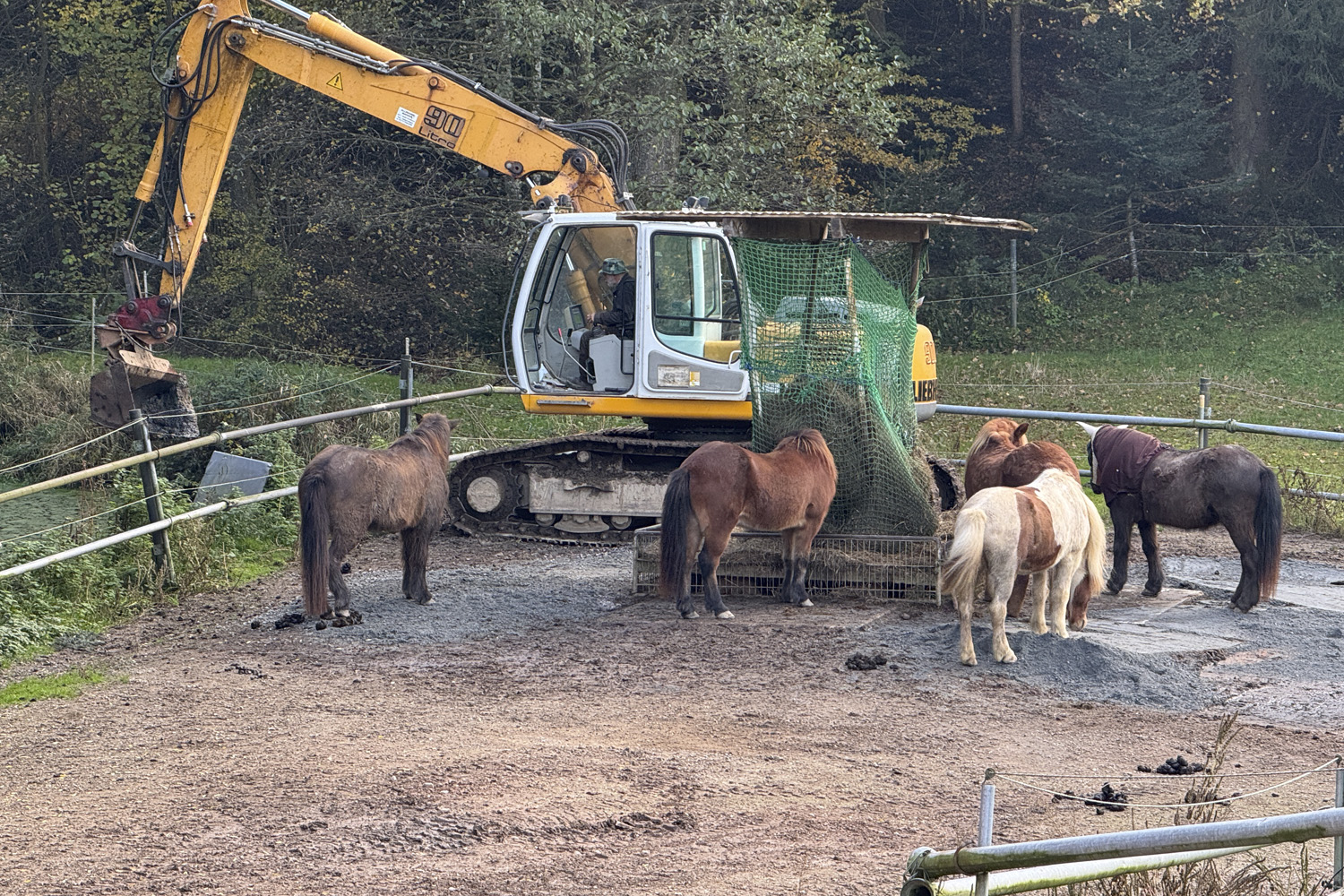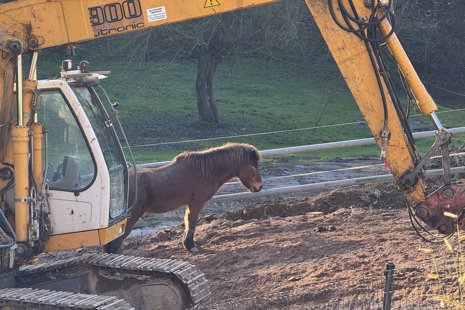 Es ist immer wieder erstaunlich, wie gelassen die Pferde auf allerlei riesige Baumaschinen reagieren!