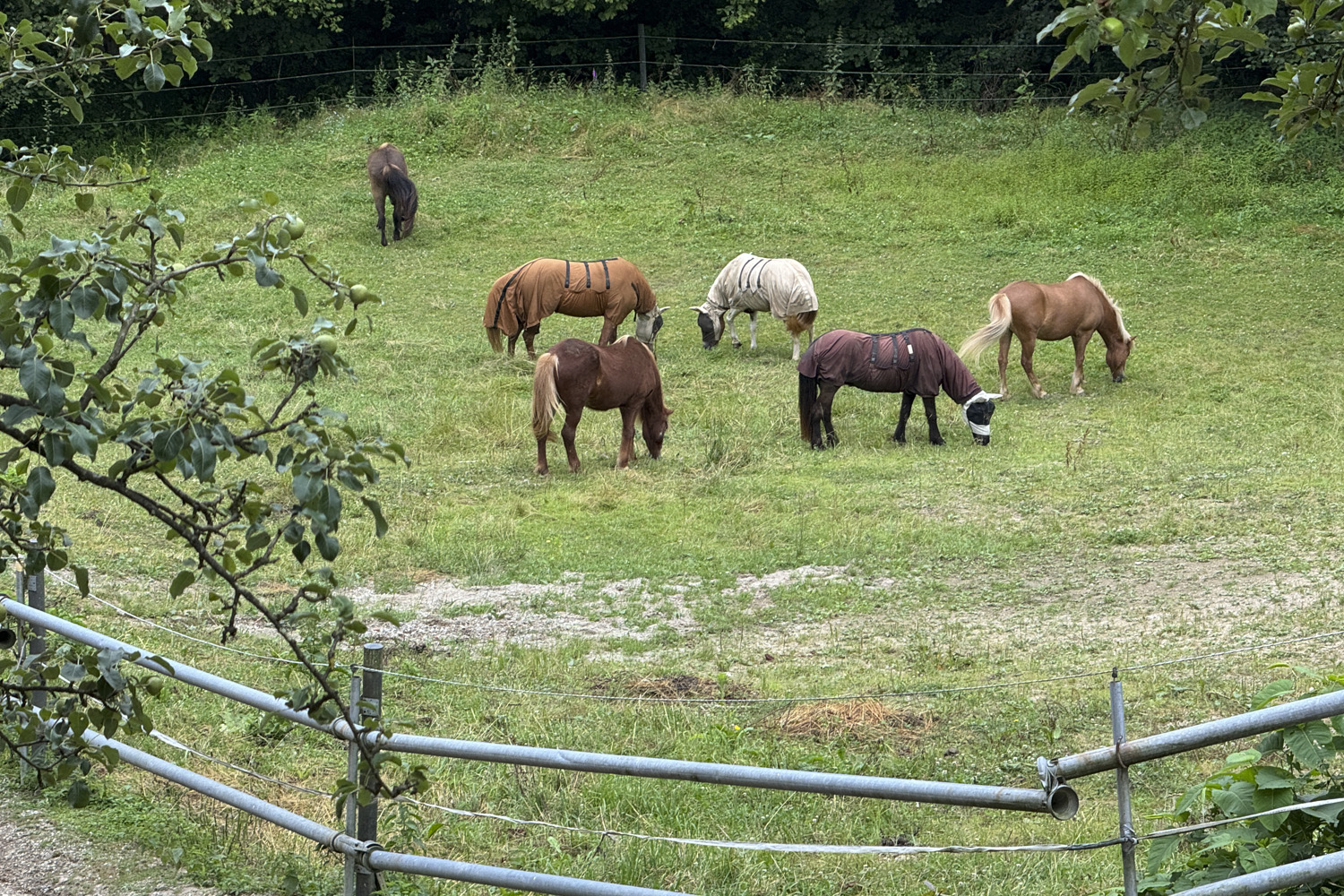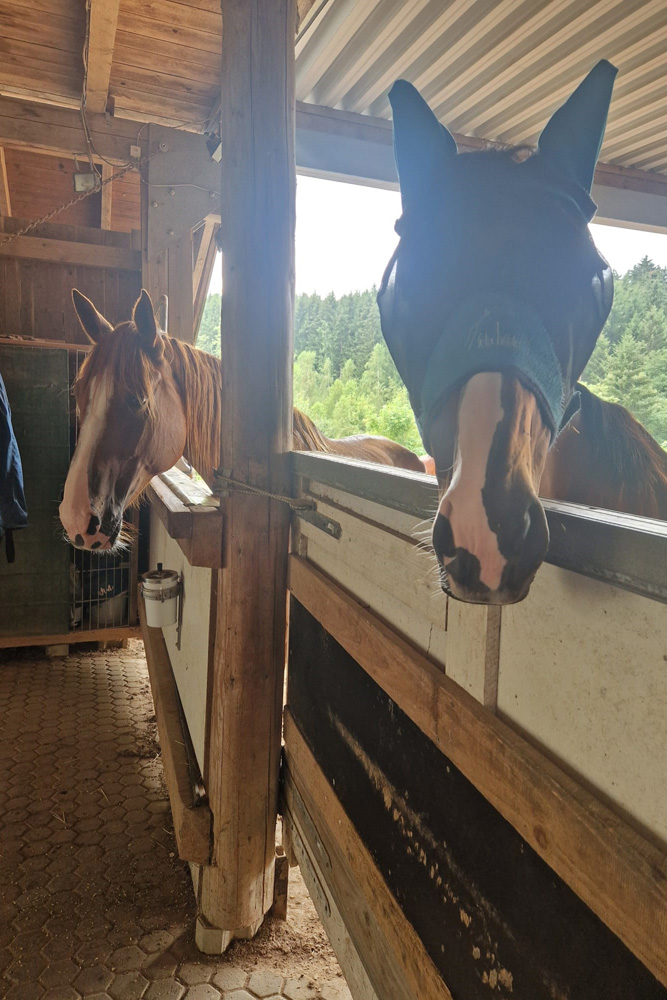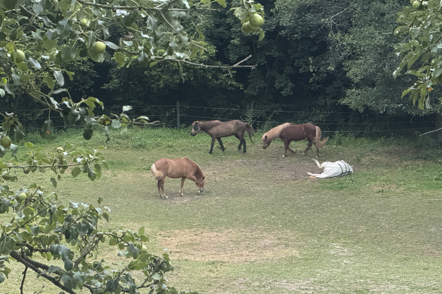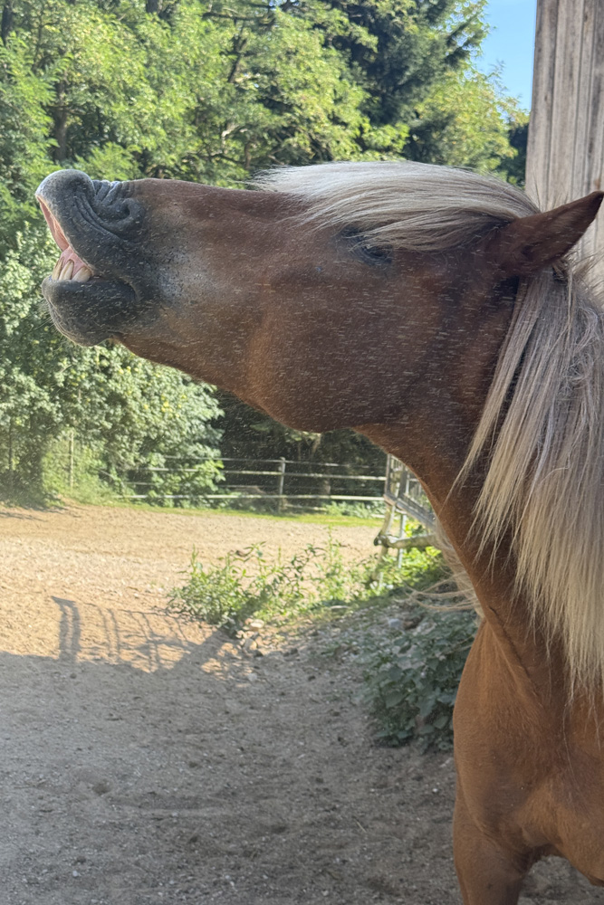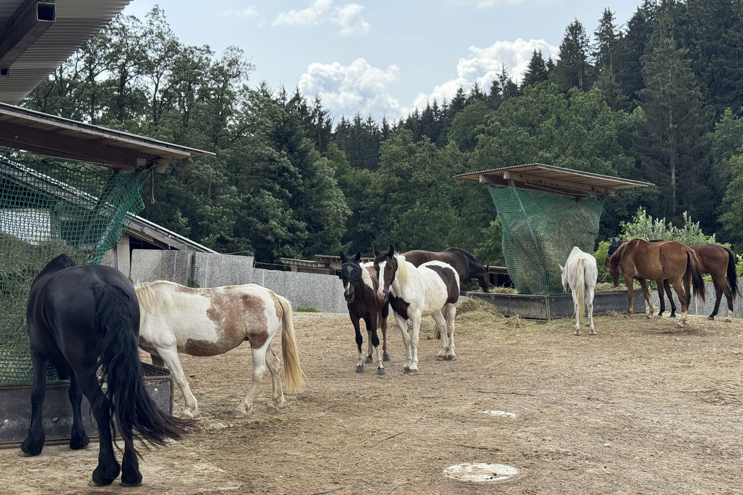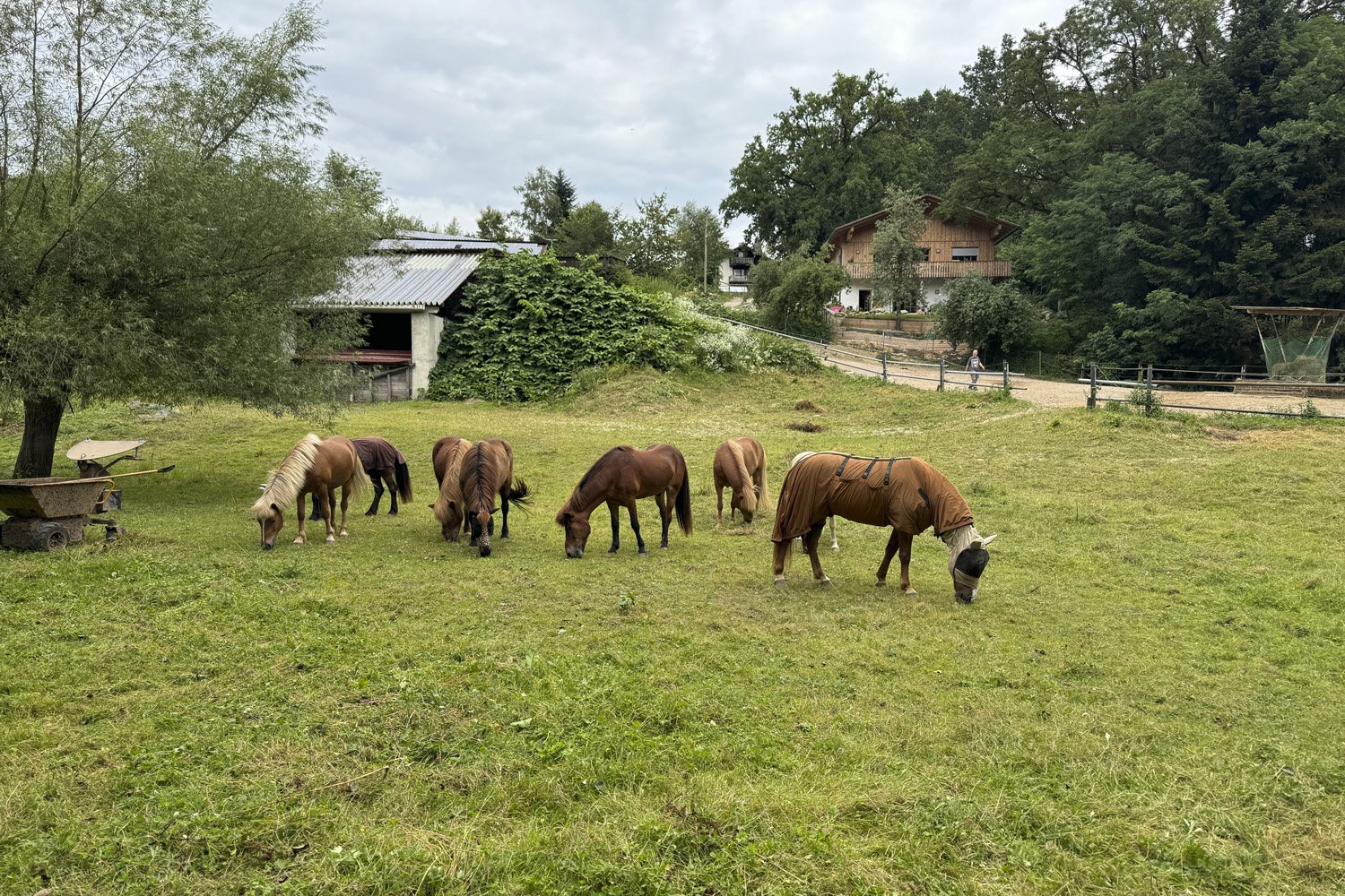 Juli und die Hälfte vom August bescherte warme bis sehr heiße Tage. Ab und zu gab es mal heftige Regenfälle. Leider war das Wetter ideal für so allerlei Stechgetier. Ausritte waren vorwiegend nur mit "Rüstung" und viel Bremsenspray möglich. Ab und zu, wenn die Temperaturen es zuließen tummelten sich auch einige Pferde und ihre Menschen am Reitplatz. Ansonsten wurden eher die Schattenplätze aufgesucht.