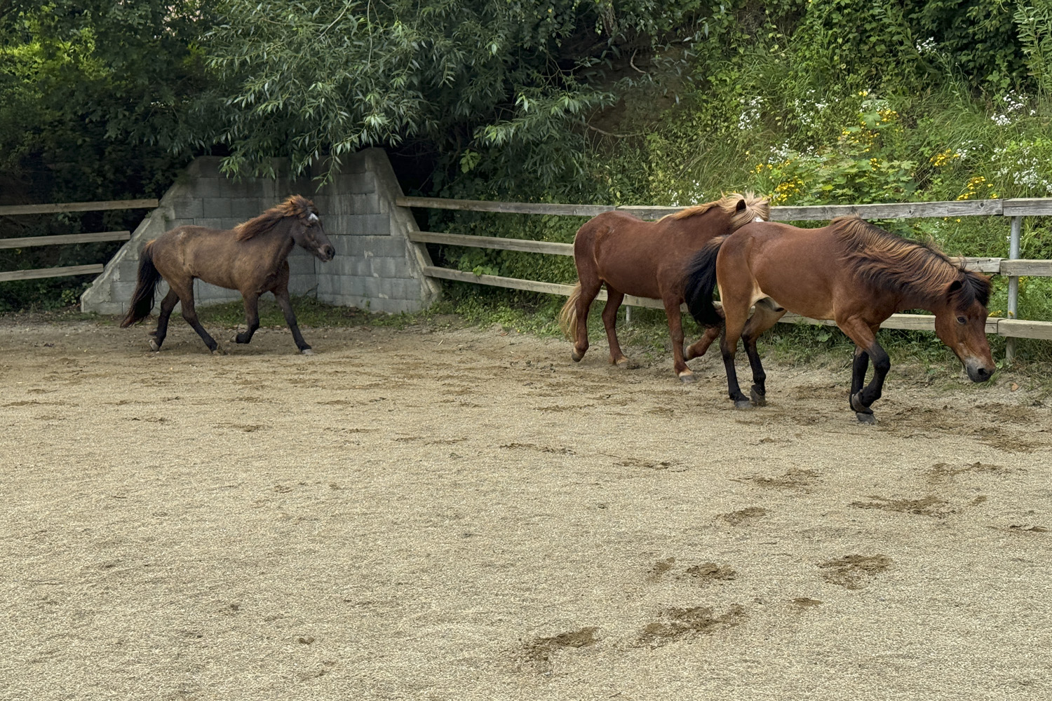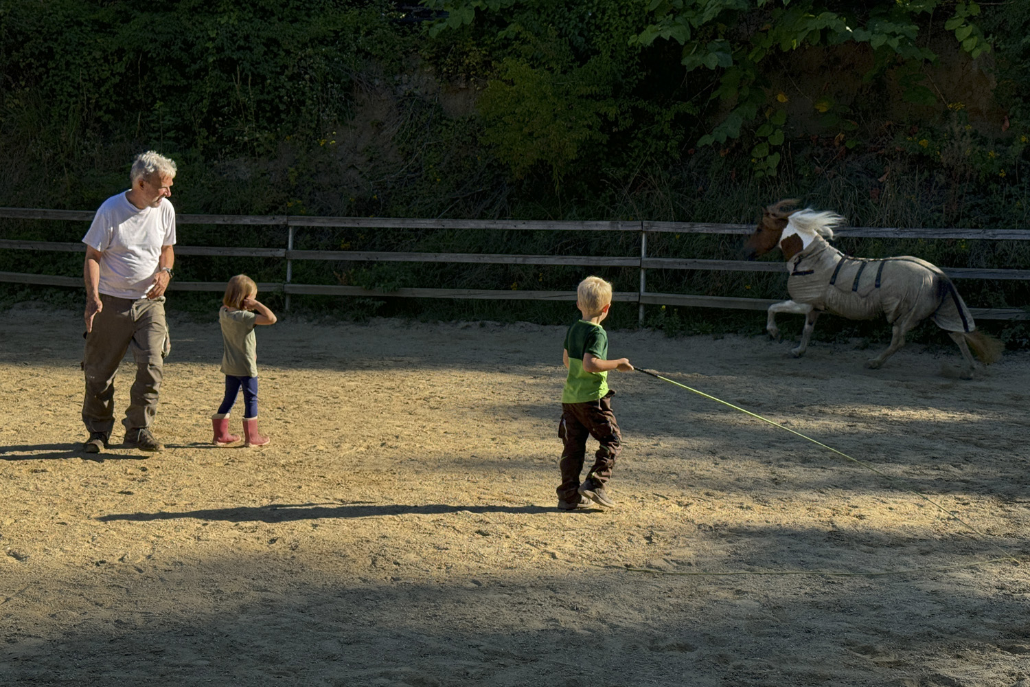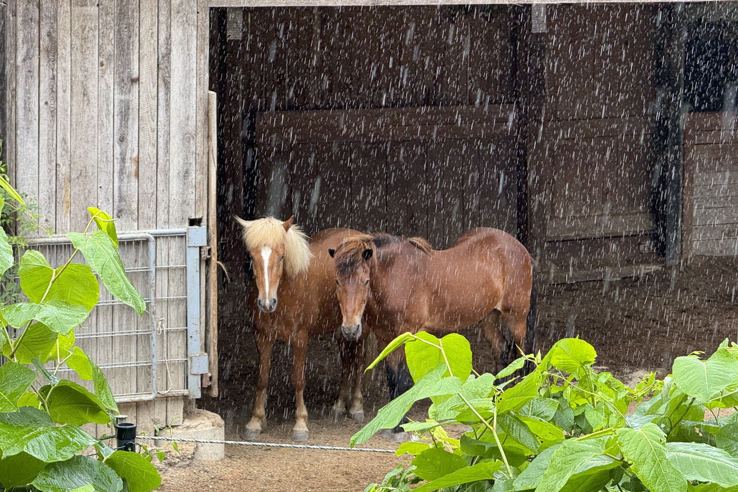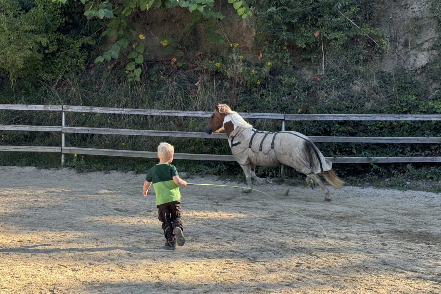 Juli und die Hälfte vom August bescherte warme bis sehr heiße Tage. Ab und zu gab es mal heftige Regenfälle. Leider war das Wetter ideal für so allerlei Stechgetier. Ausritte waren vorwiegend nur mit "Rüstung" und viel Bremsenspray möglich. Ab und zu, wenn die Temperaturen es zuließen tummelten sich auch einige Pferde und ihre Menschen am Reitplatz. Ansonsten wurden eher die Schattenplätze aufgesucht.