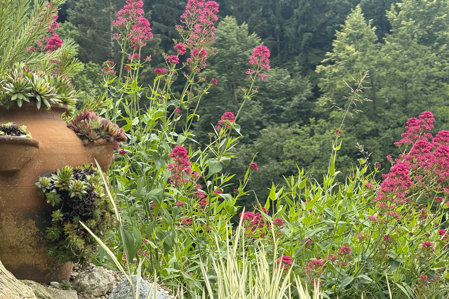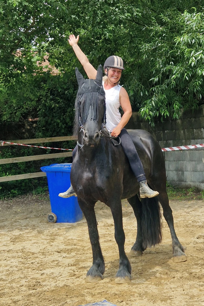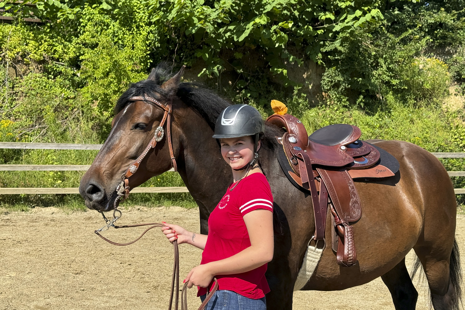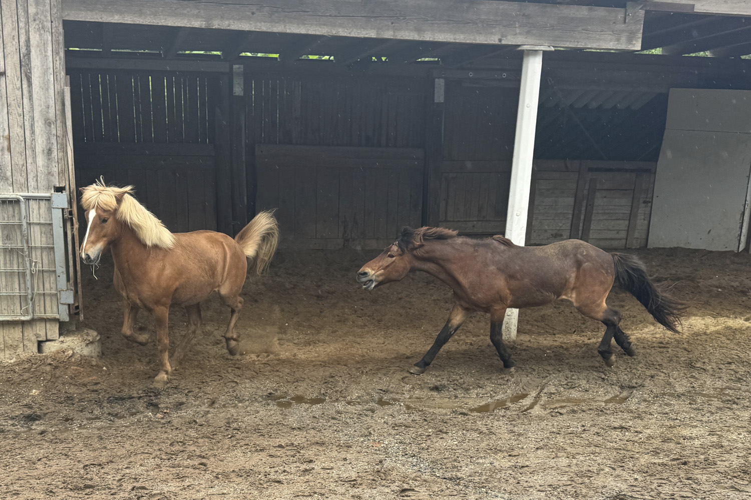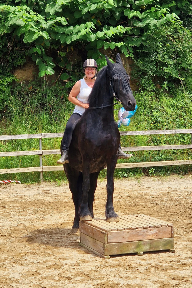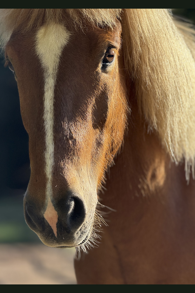 Geschicklichkeit war wieder einmal angesagt und deutlicher Fortschritt war bei denjenigen Pferden festzustellen, die nun schon öfters dabei waren. Das machte natürlich auch den begleitenden Zweibeinern große Freude! Sleipnir fra Ehlers kam in der Isländerherde dazu, nun ist sie mit acht Pferden wieder komplett. Die anfänglichen Rangordnungsdiskussionen waren bald bei gelegt und mittlerweile spielt der Boss Skáti auch mit Sleipnir. Bei einigen Pferden war wieder einmal Kontrolle der Zähne und Raspeln angesagt. Natalie freut sich sehr über ihren neuen Sattel. Der Steingarten beim Reitplatz blüht aktuell prächtig.