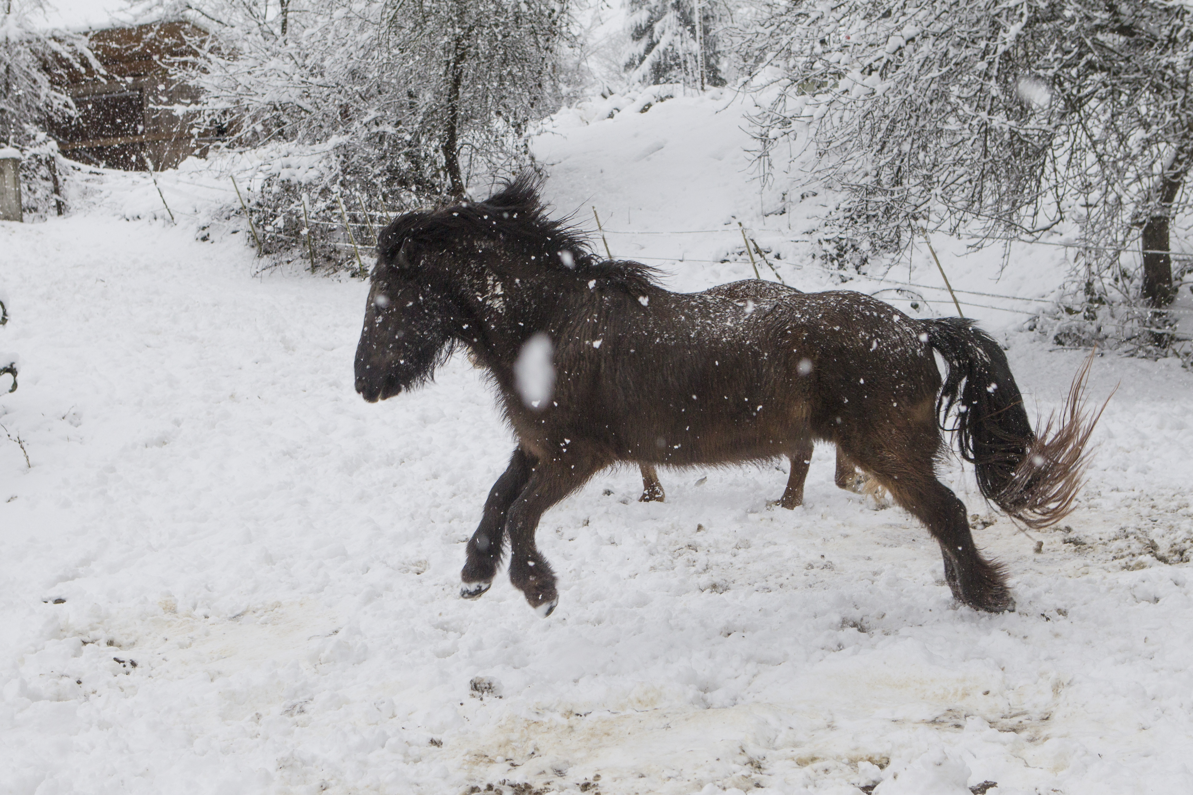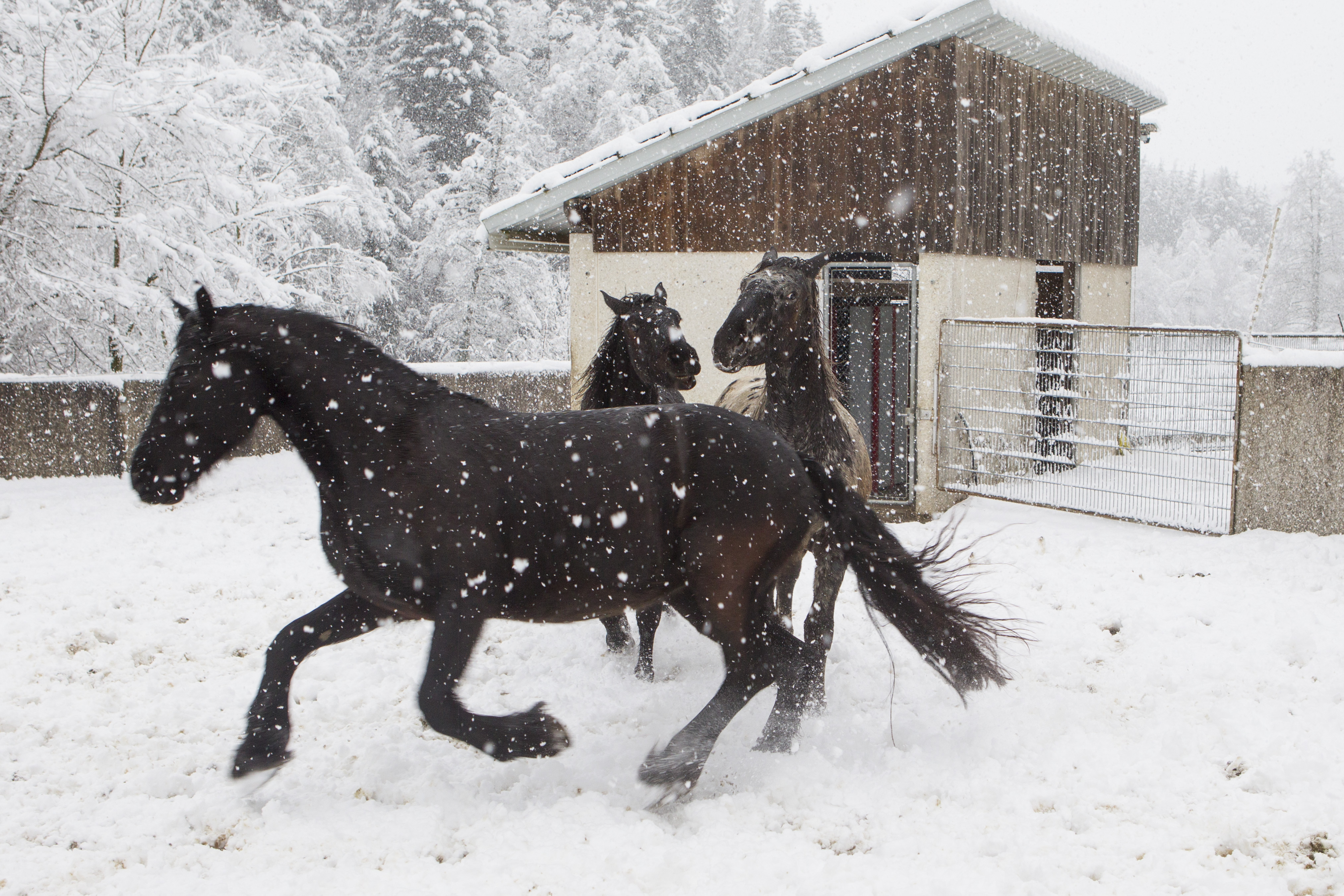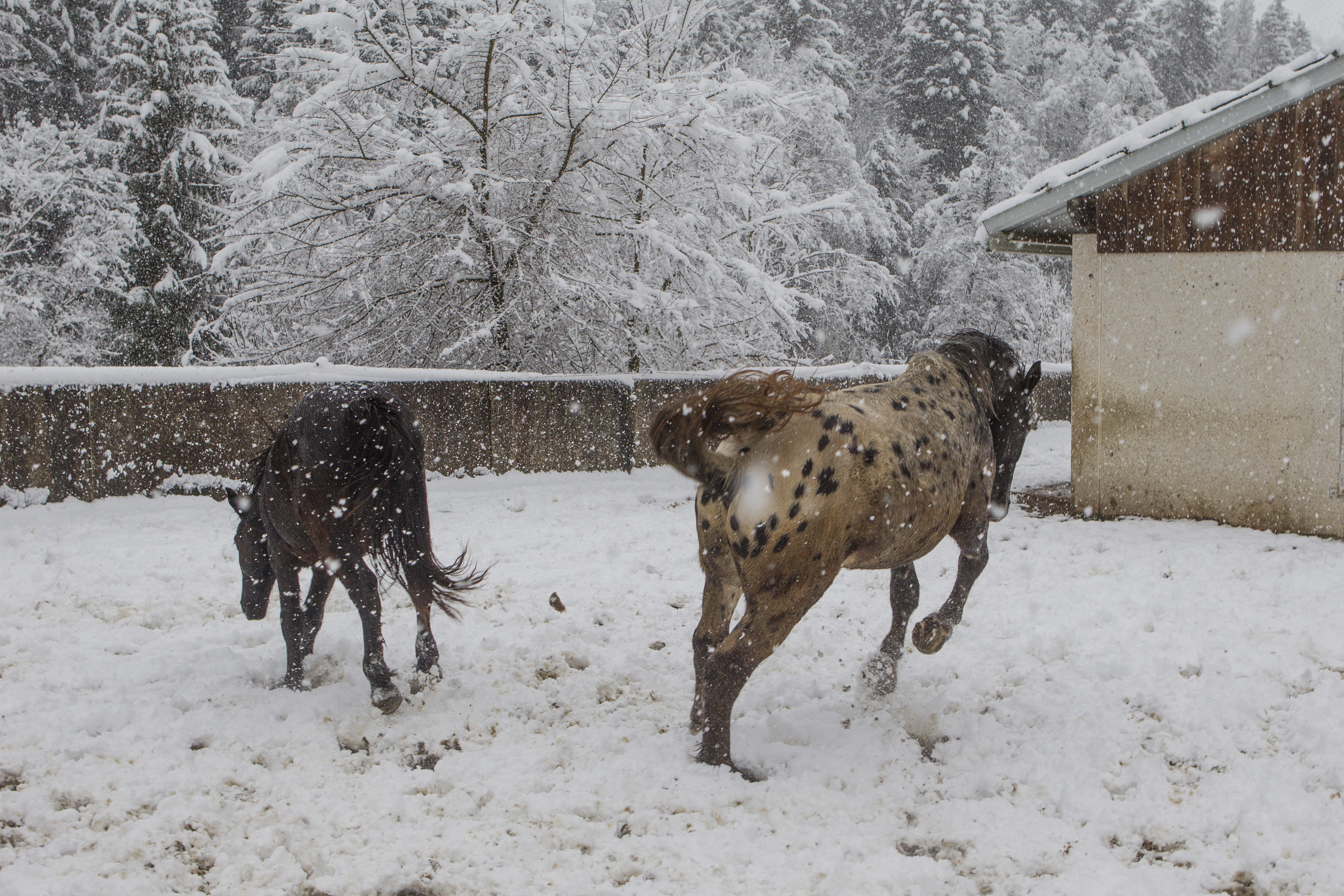 Die Pferde fanden es zum Teil sehr anregend zum Spielen und Rennen. Ein Glück, dass wir hier am Stall so viel Platz für solche Bedürfnisse haben!!