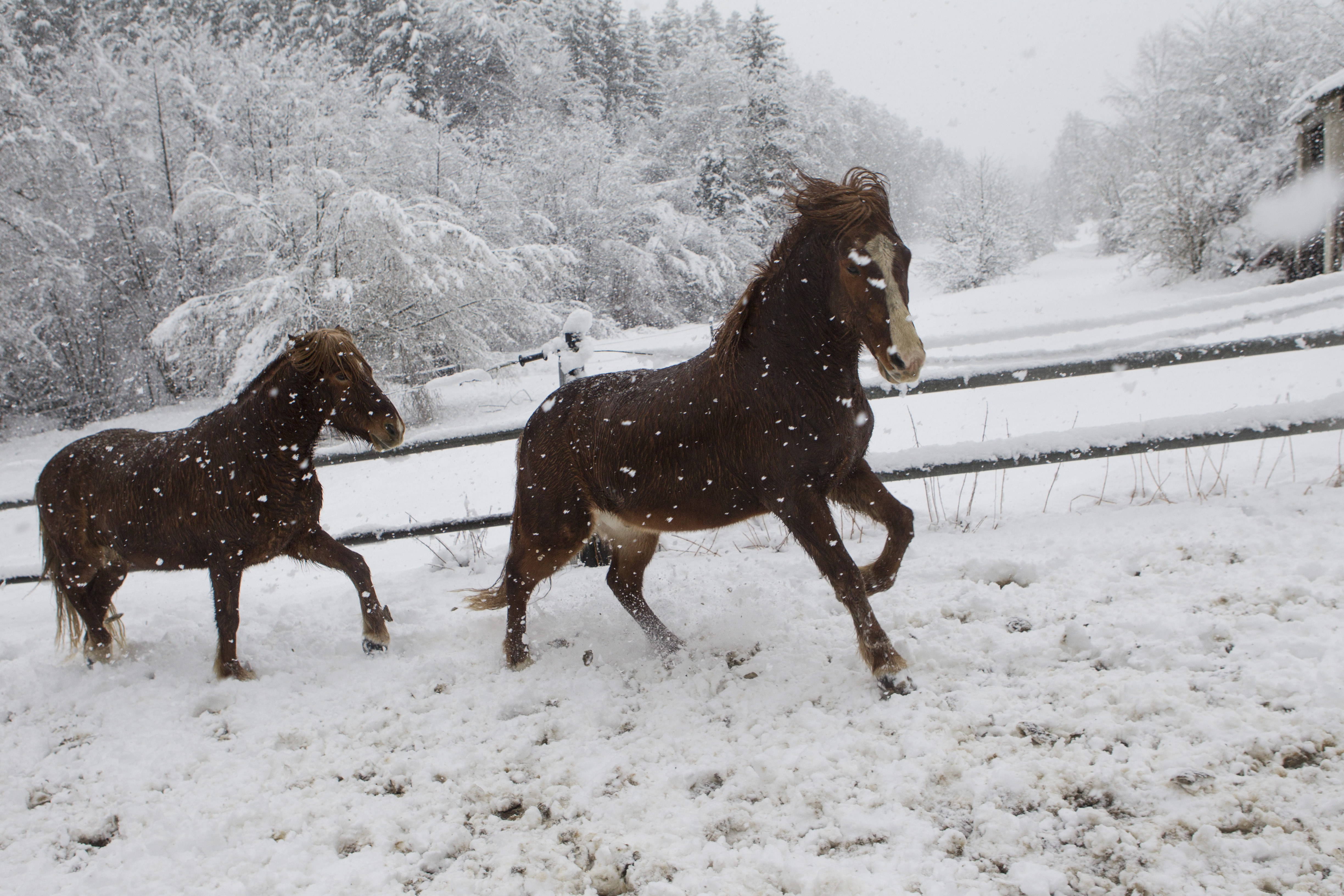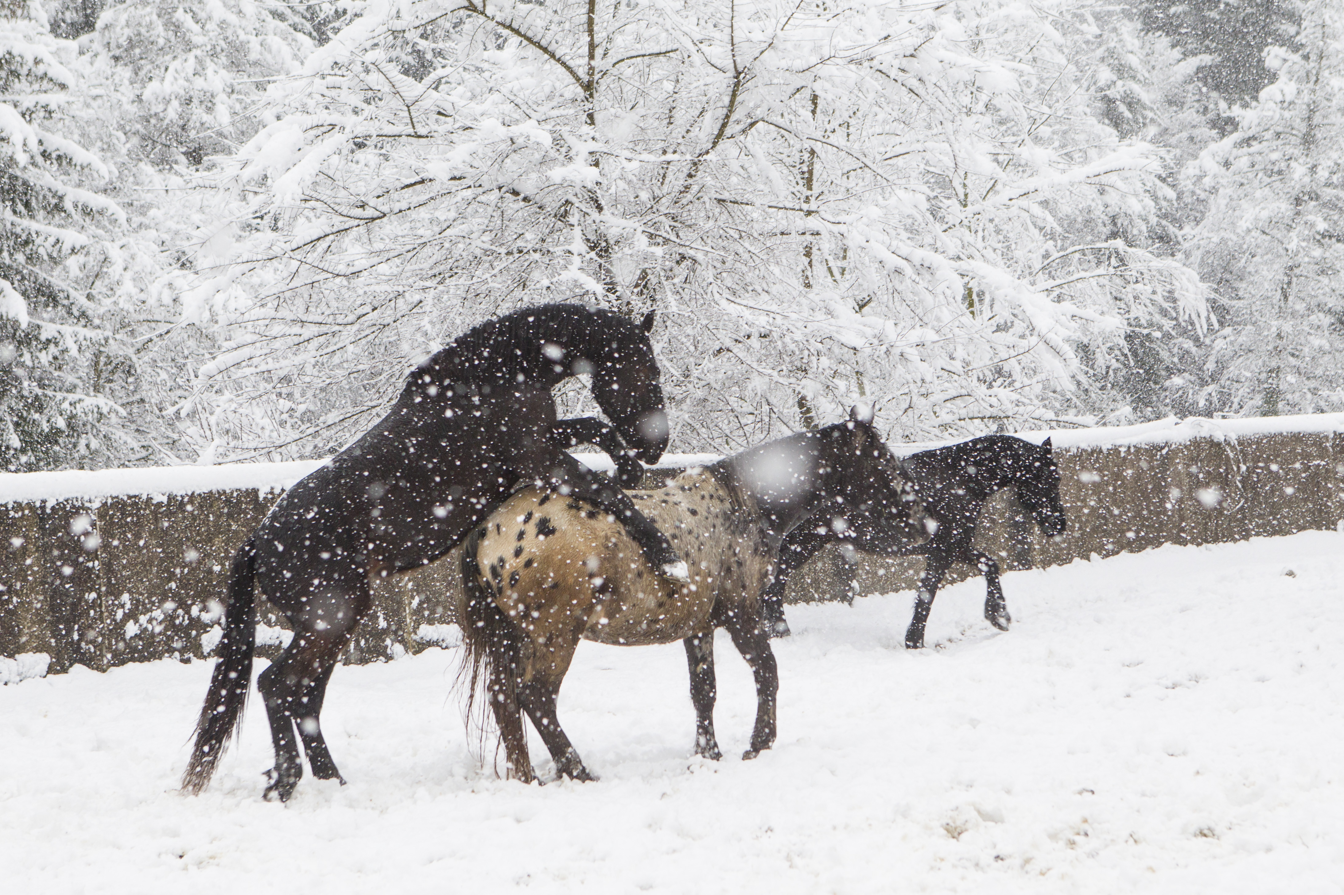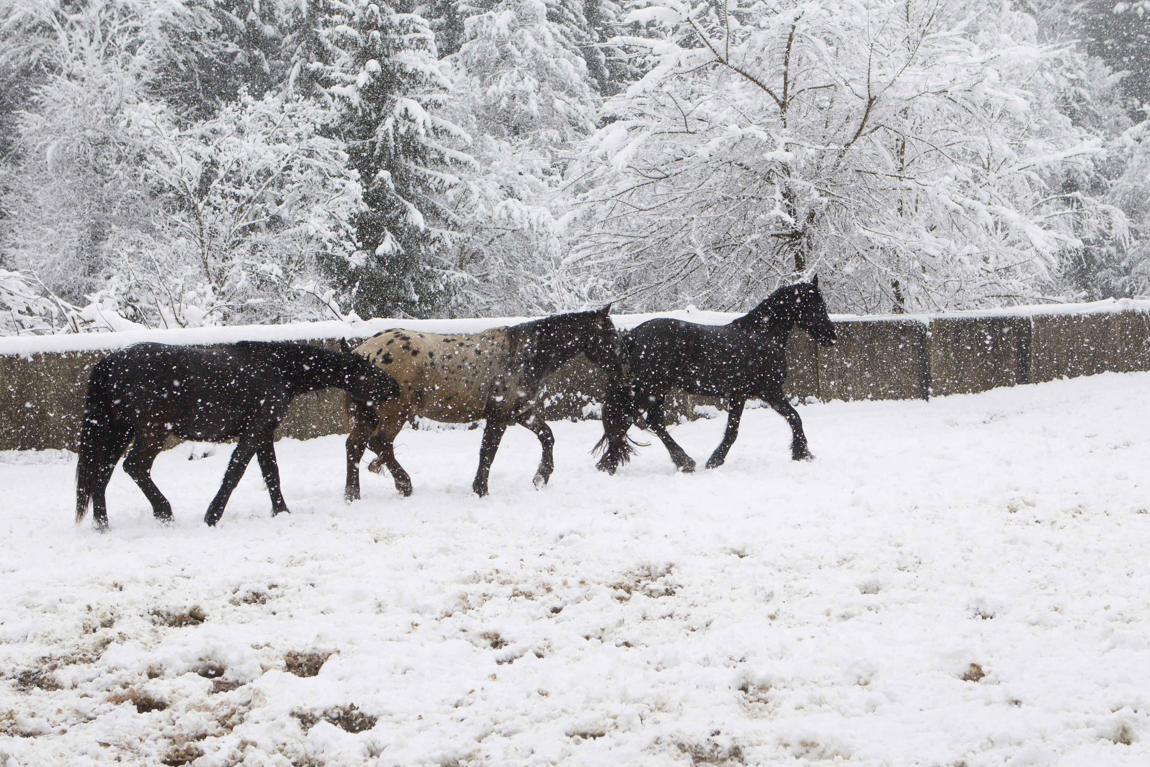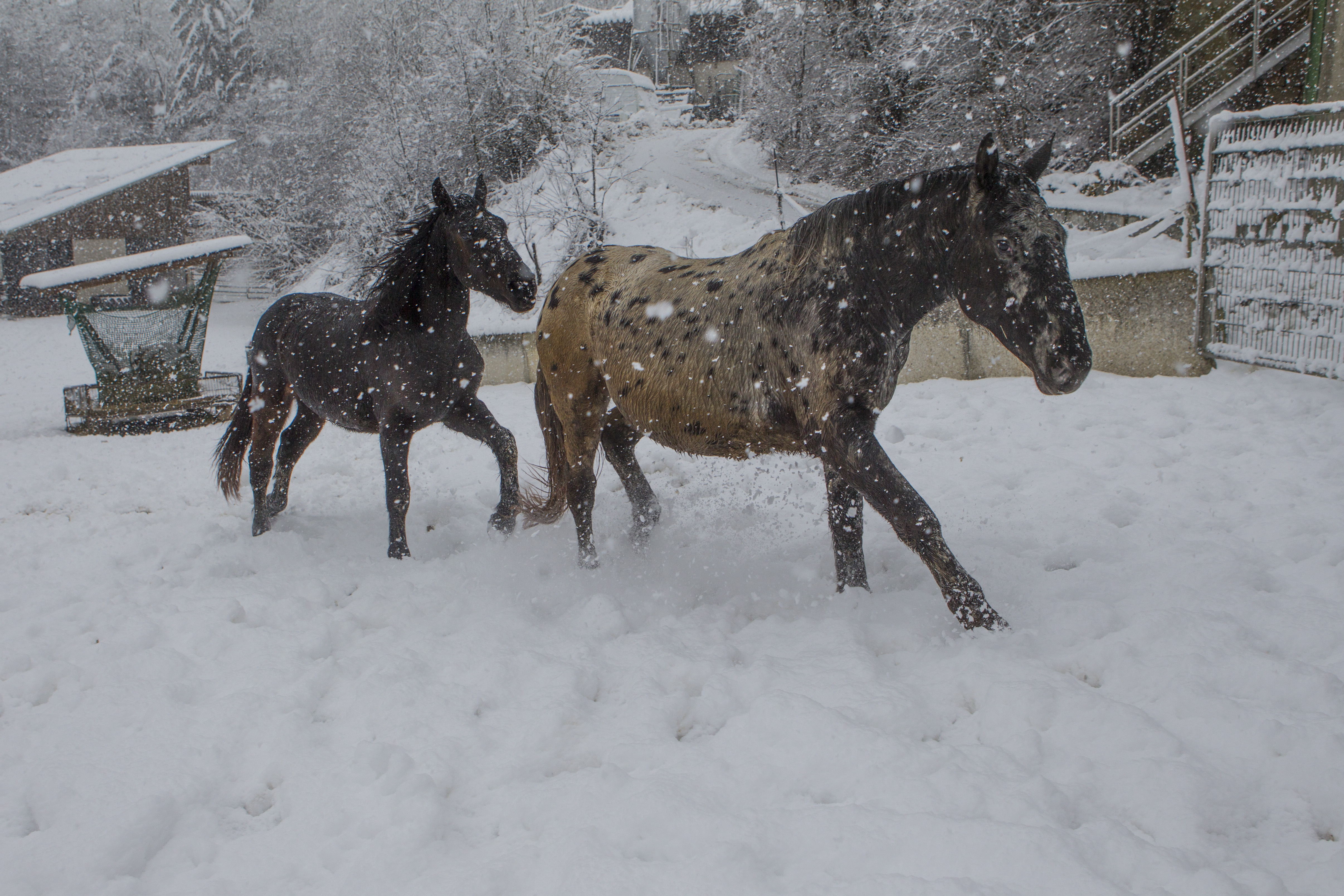 Die Pferde fanden es zum Teil sehr anregend zum Spielen und Rennen. Ein Glück, dass wir hier am Stall so viel Platz für solche Bedürfnisse haben!!